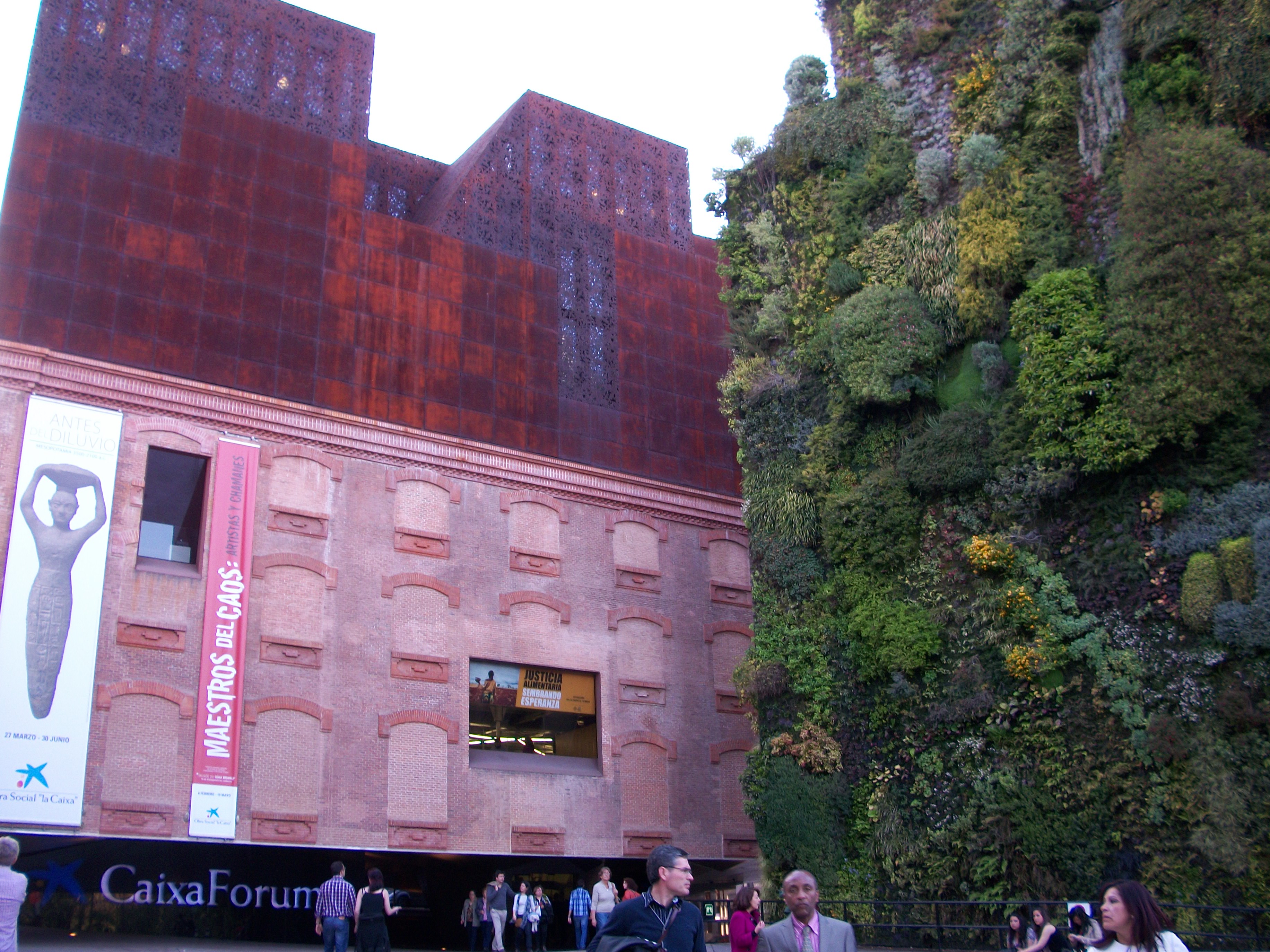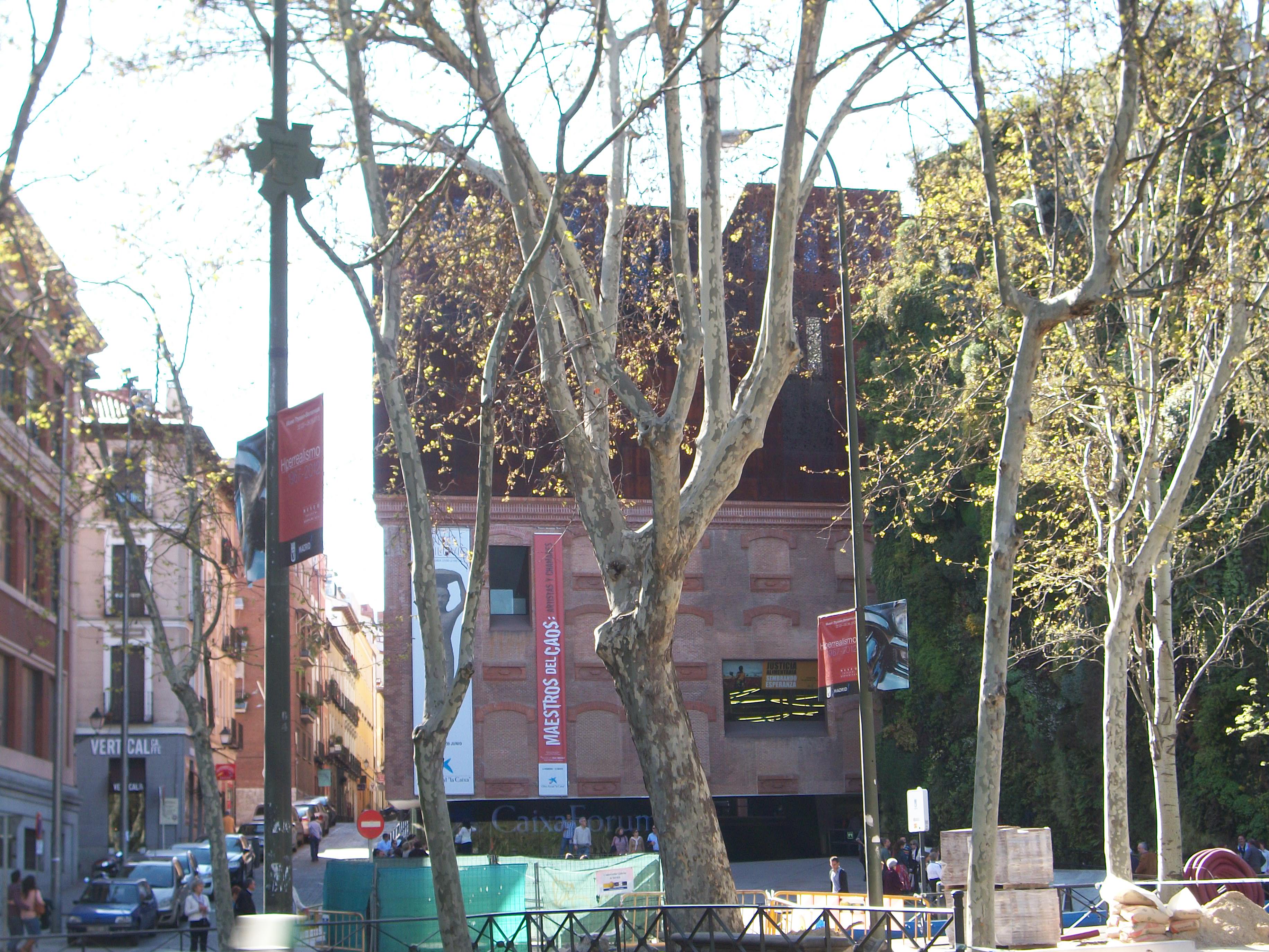 On a continué de descendre l’avenue paseo del prado, en passant la caixa Forum: centre culturel dynamique et ouvert sur la ville. Le bâtiment est une ancienne Centrale Électrique de Mediodía. La façade en briques de l’ancienne usine a été restaurée et l’on a ajouté du volume à un édifice présentant deux caractéristiques qui le rendent facilement reconnaissable : son jardin vertical et sa « lévitation », une sensation due à l’élimination du soubassement en granit qui entourait l’ancienne usine et qui fait que le nouveau bâtiment paraisse flotter sur une grande place publique ouverte de tous côtés.