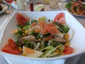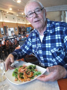 papa : salade crevette et saumon fumé, magret canard entier et fromage