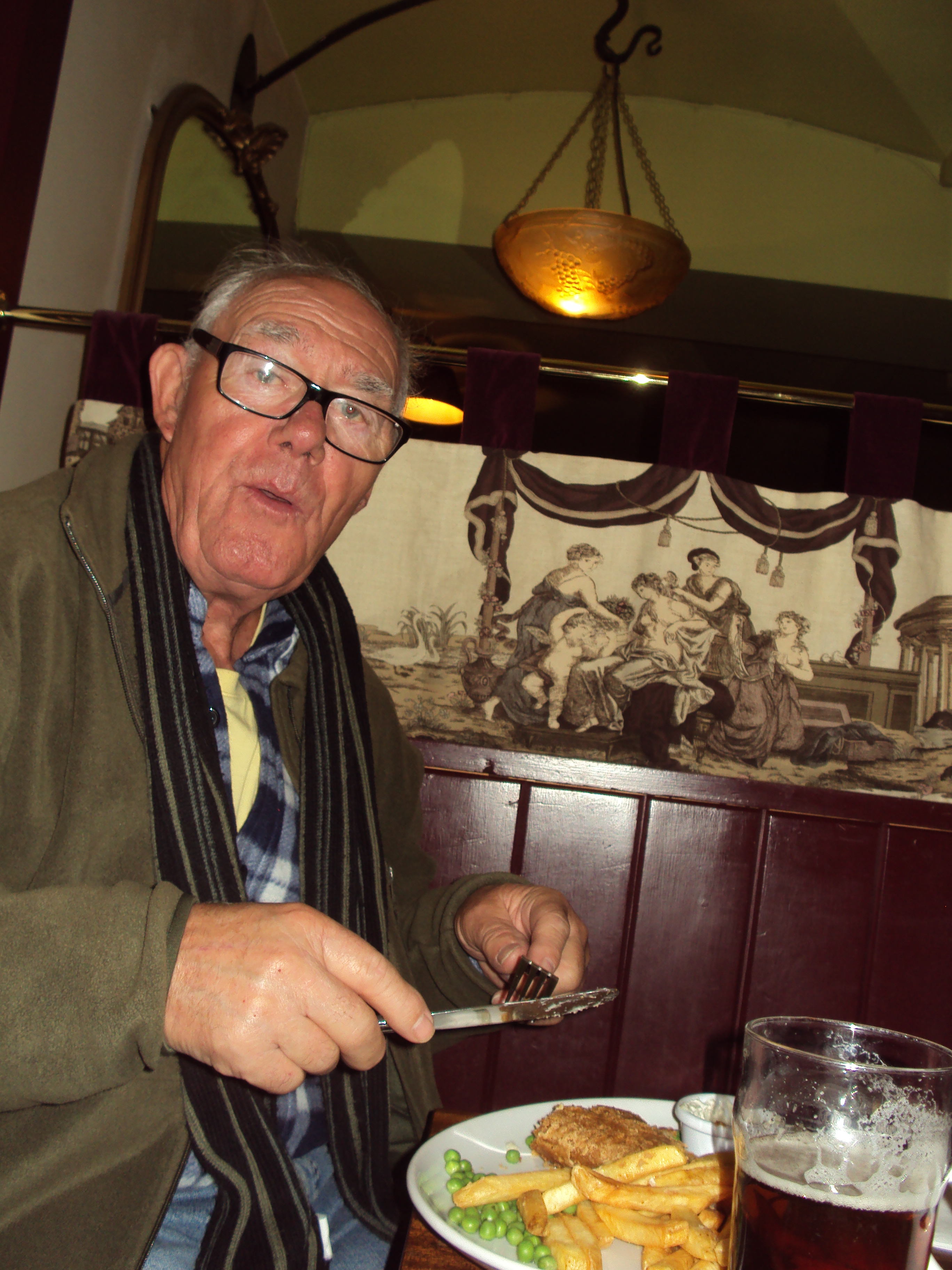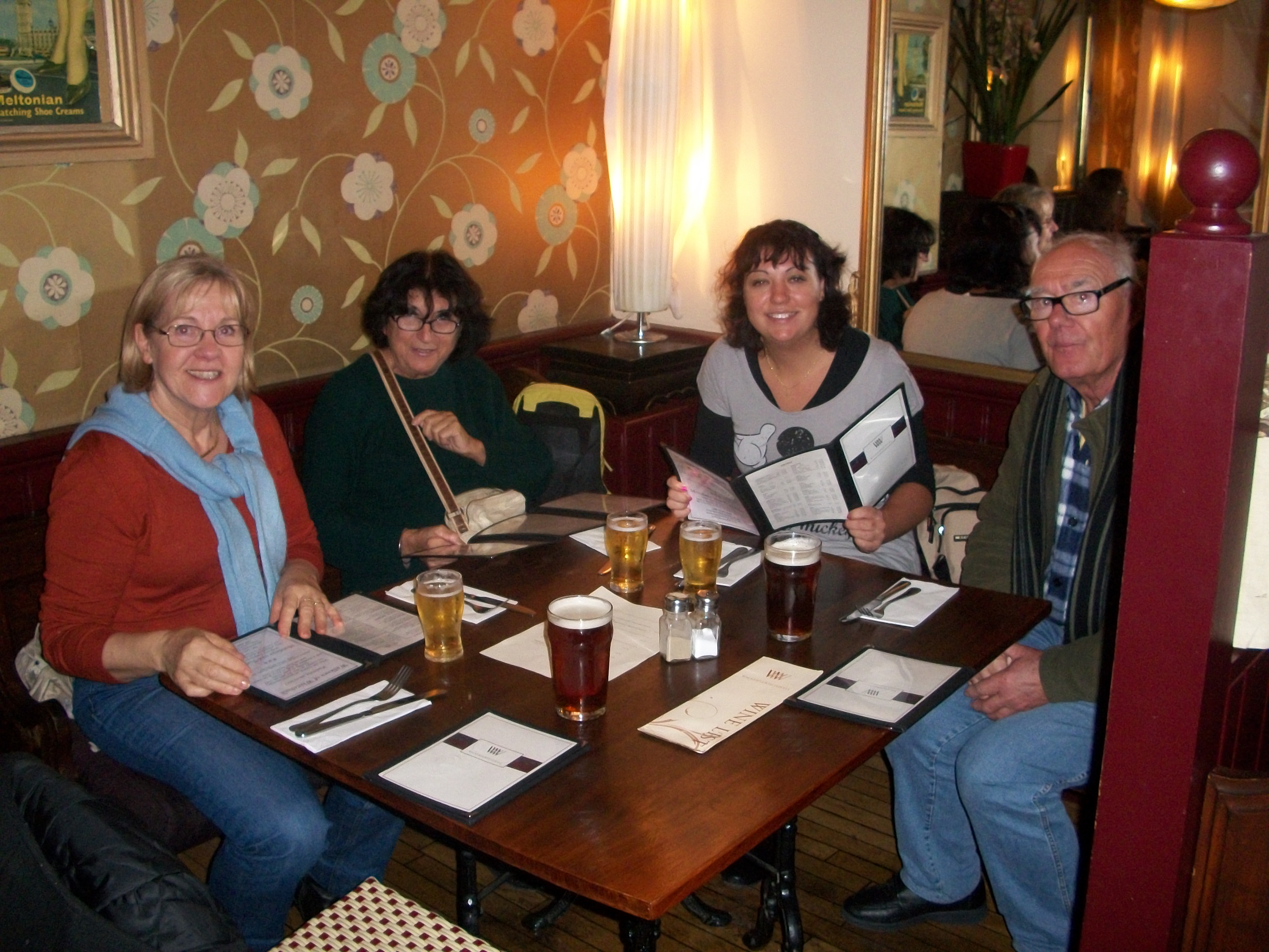 Au passage on cherche éventuellement de quoi manger, on regarde les cartes des pubs, puis dans une ruelle perpendiculaire, bien caché un pub pas trop cher avec des choses correctes à manger : « Walkers of WhiteHall ».