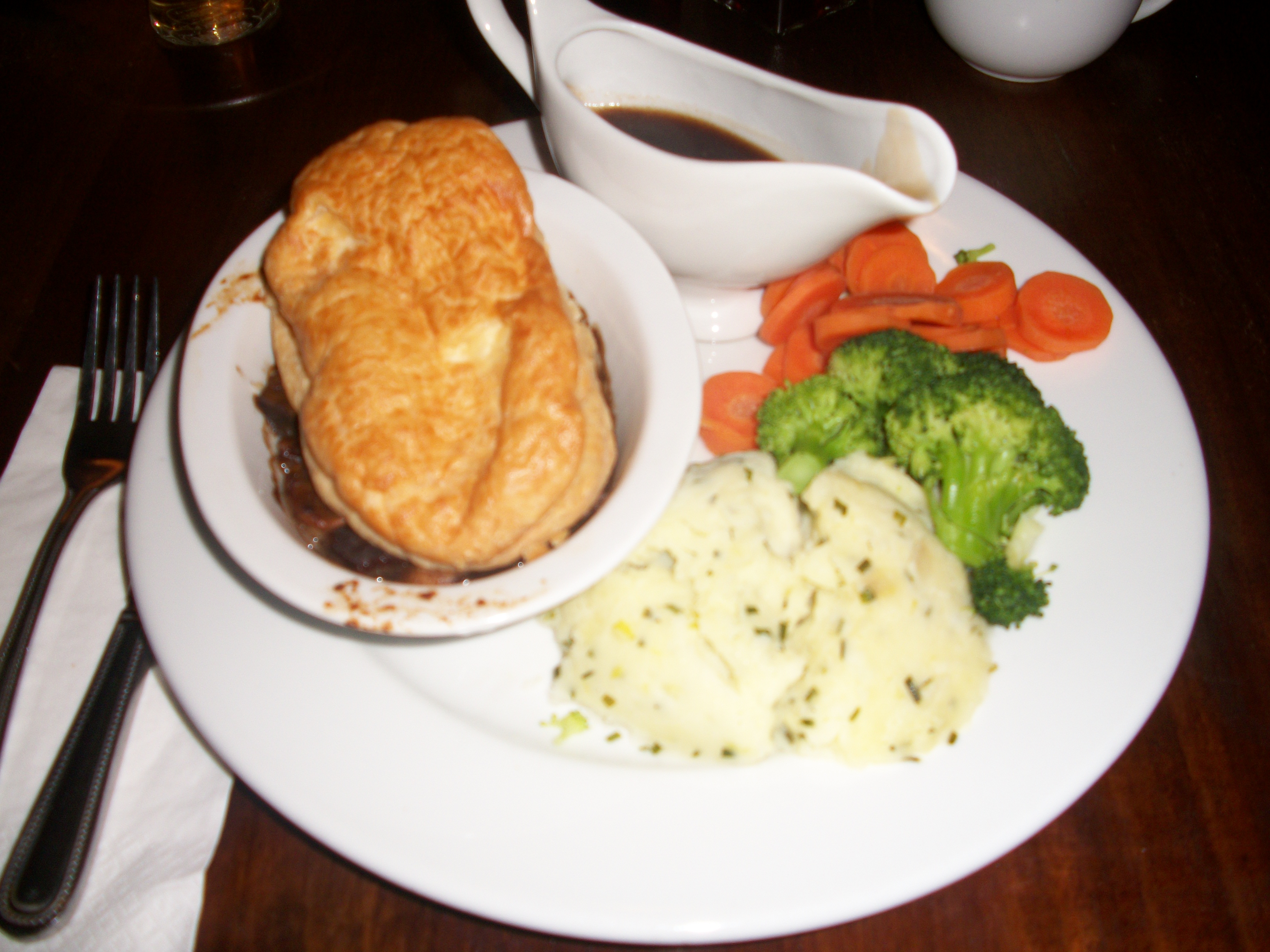 Fish and Chips pour certains, salade de saumons ou encore feuilletés au boeuf carottes purées. Et en dessert cheescake et brownie hummm et pour boire du cidre ou une pinte.