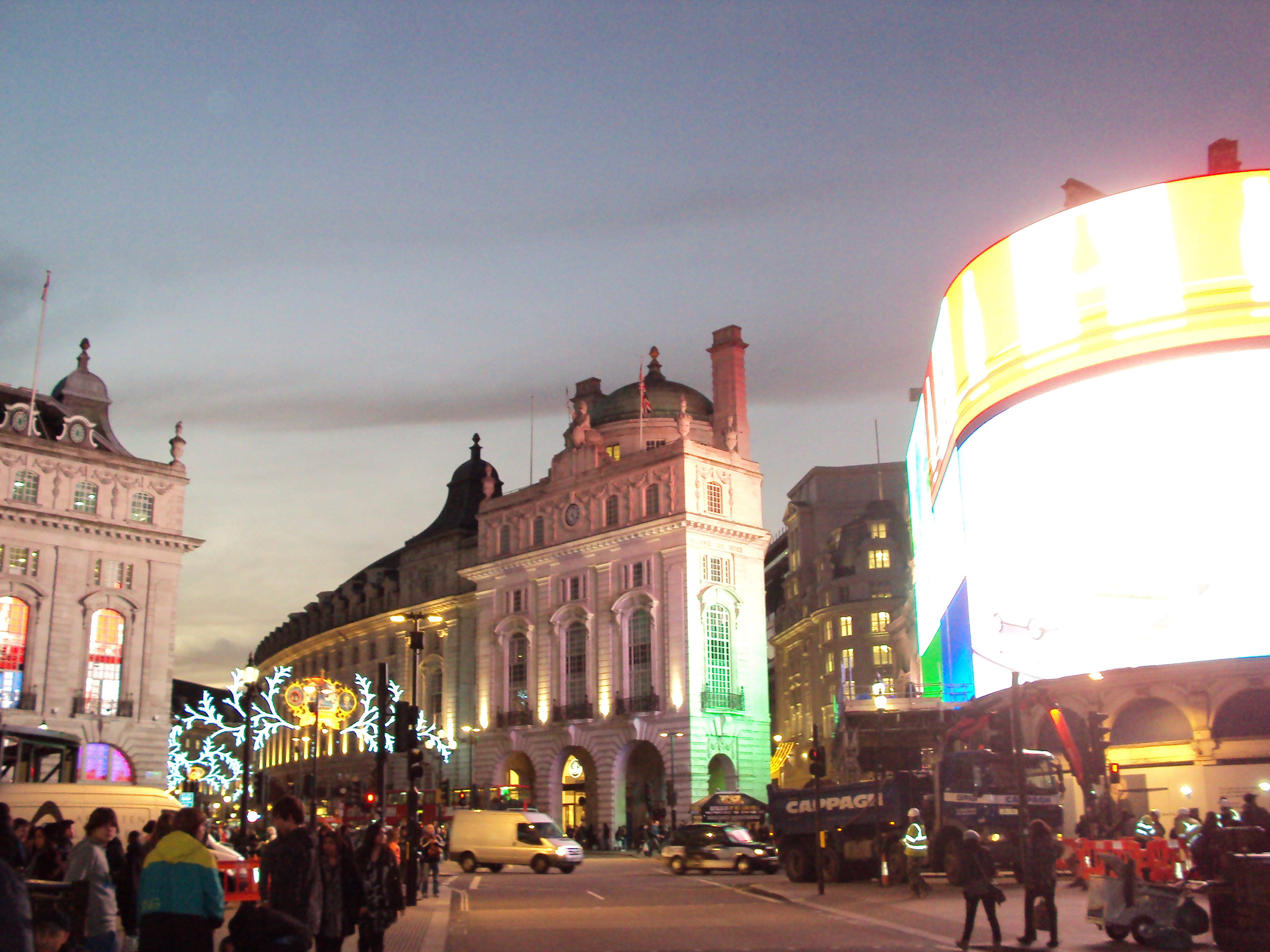 La nuit commence à tomber, on se dirige maintenant vers Picadilly Circus. Carrefour très sympa où commence Regent street, le quartier chinois pas loin et les salles de spectacles (queen, les misérables, …).