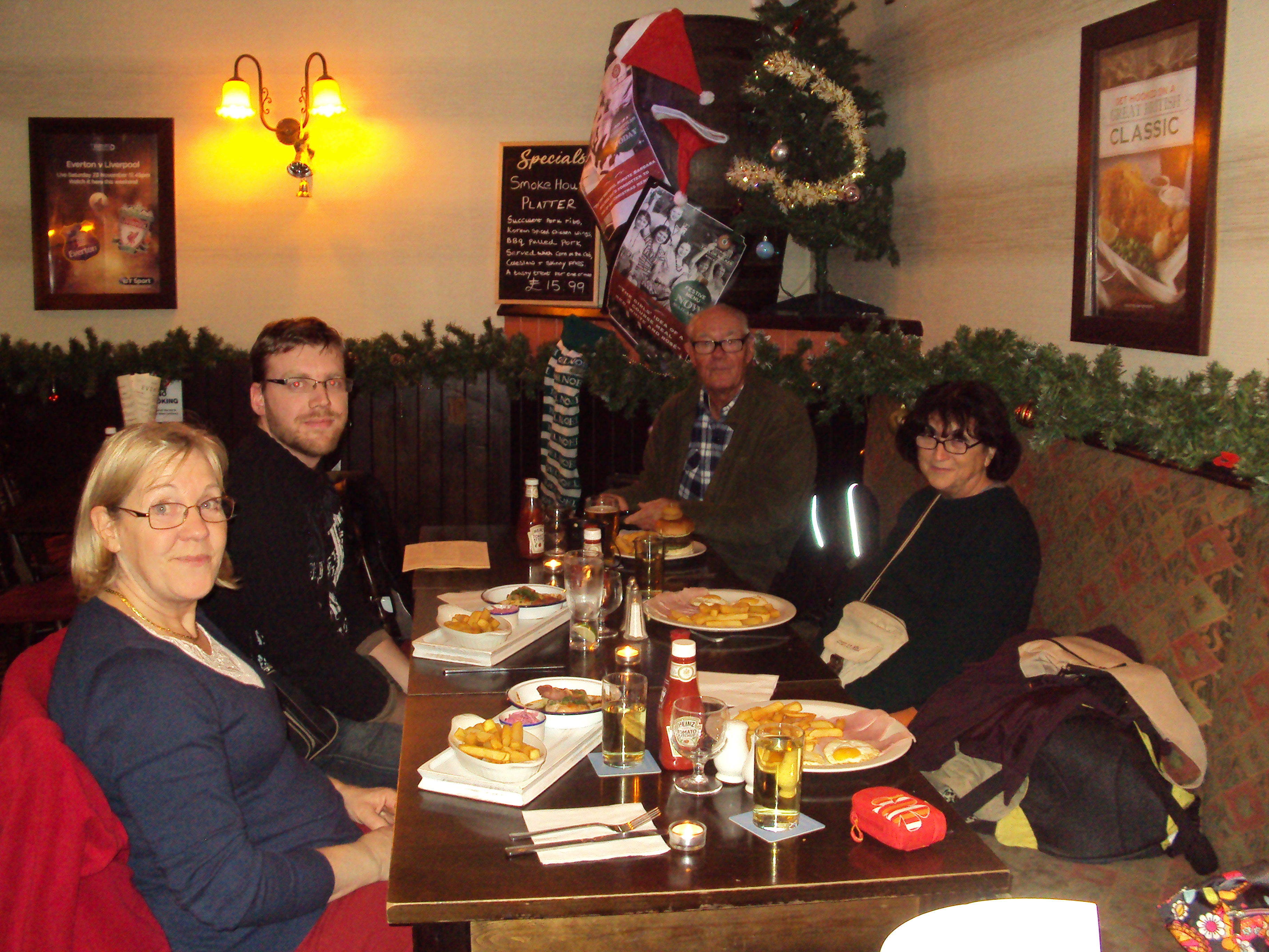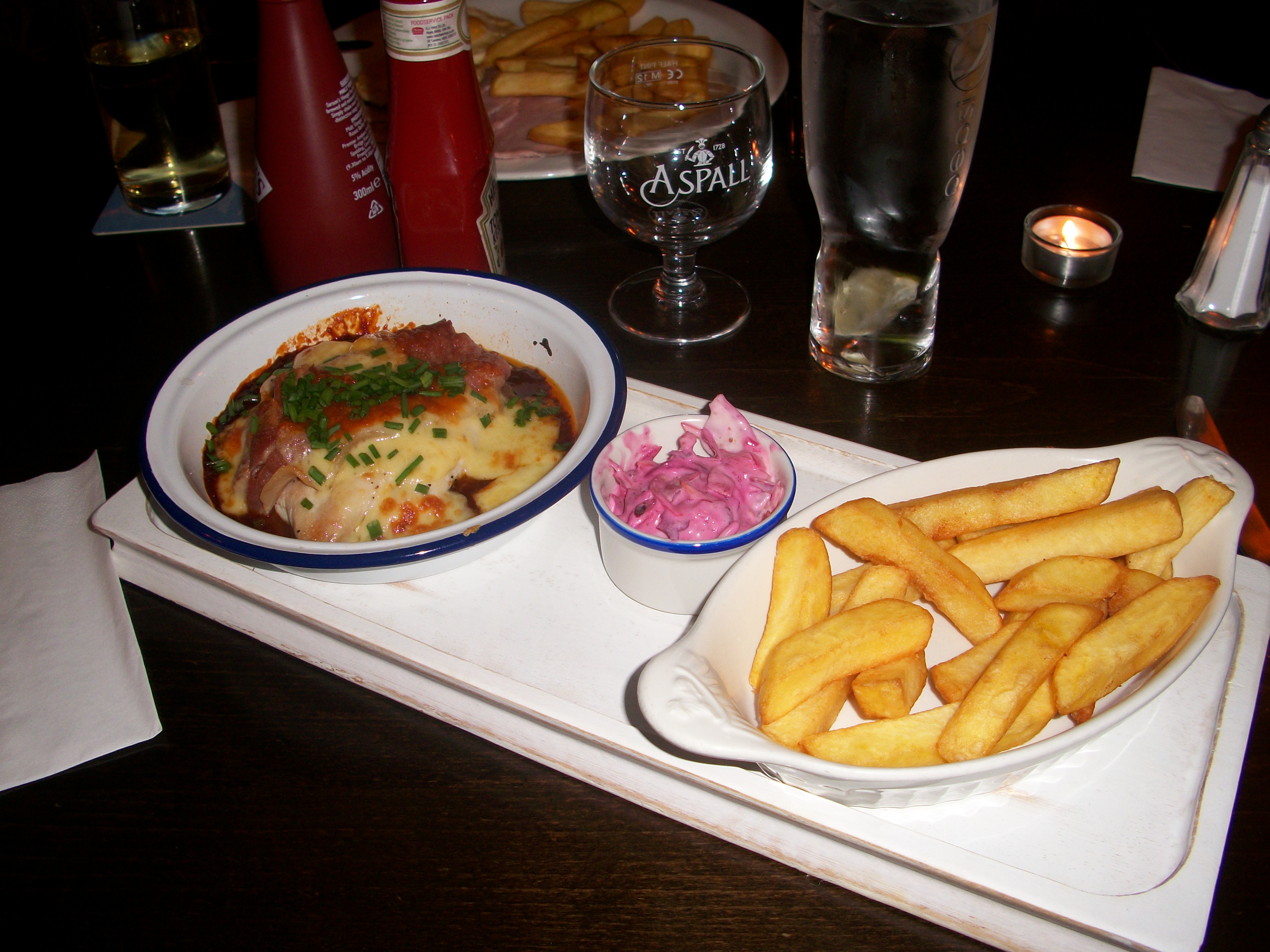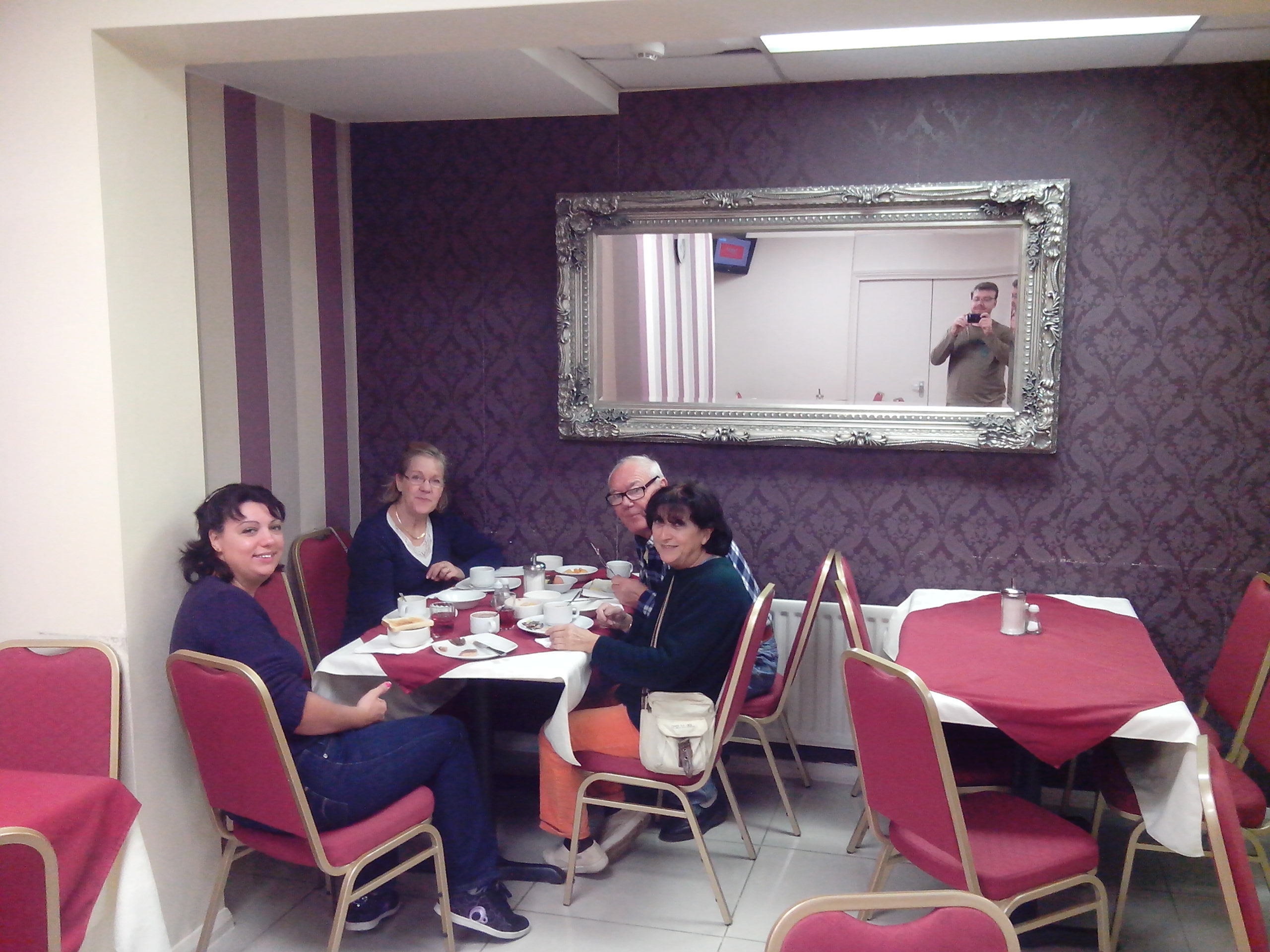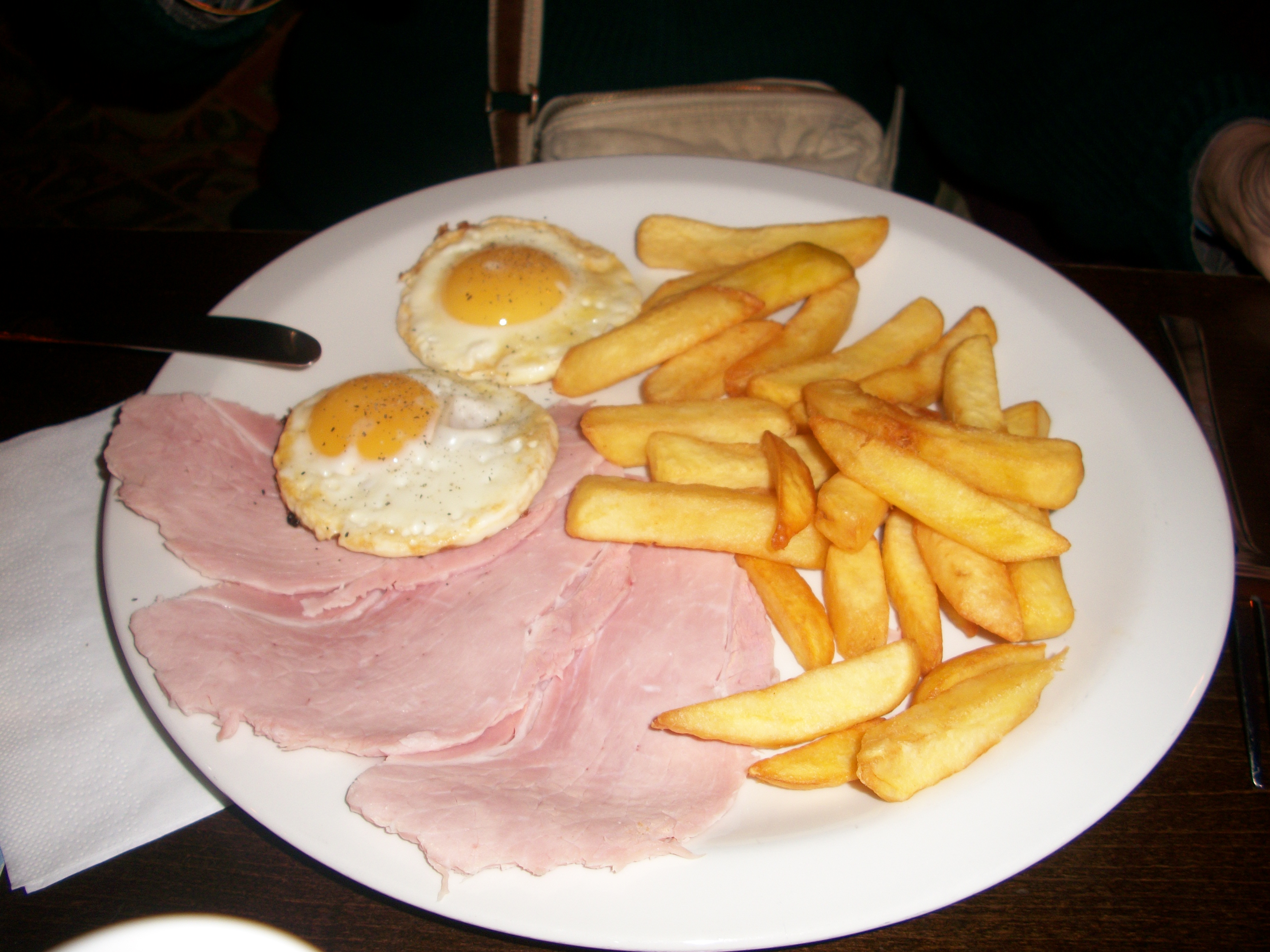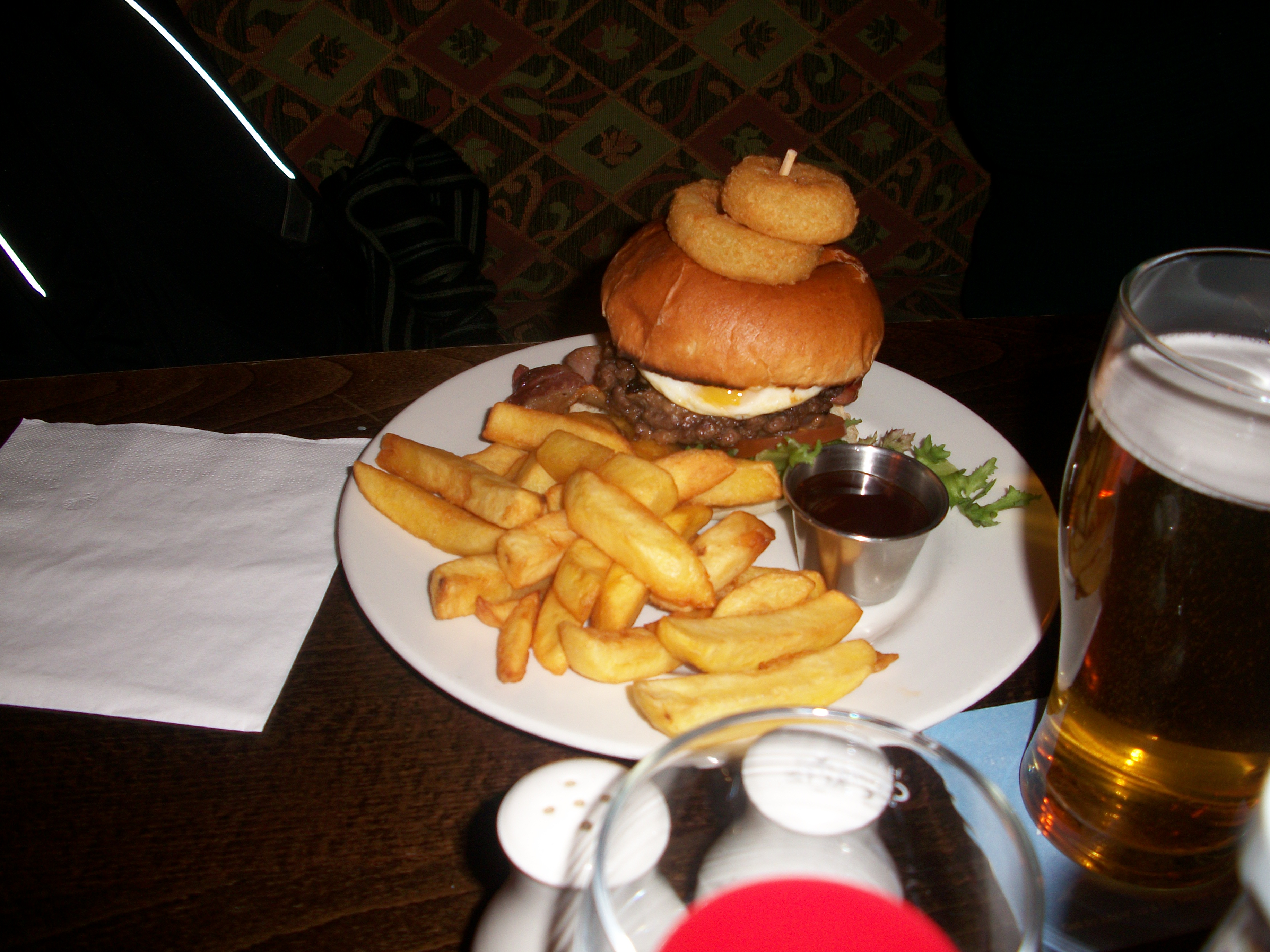 Mon père a prit une valeur sure ; un burger (à 10£), Benjamin et Geneviève du poulet barbecue et ma mère moi eggs ham and chips : jambon œuf frites : 9£ et pour du pain avec un peu de beurre 1£ par personne ça on ne le savait pas. Mais pas mauvais 🙂 Cela nous a permis de refiler nos dernières livres.