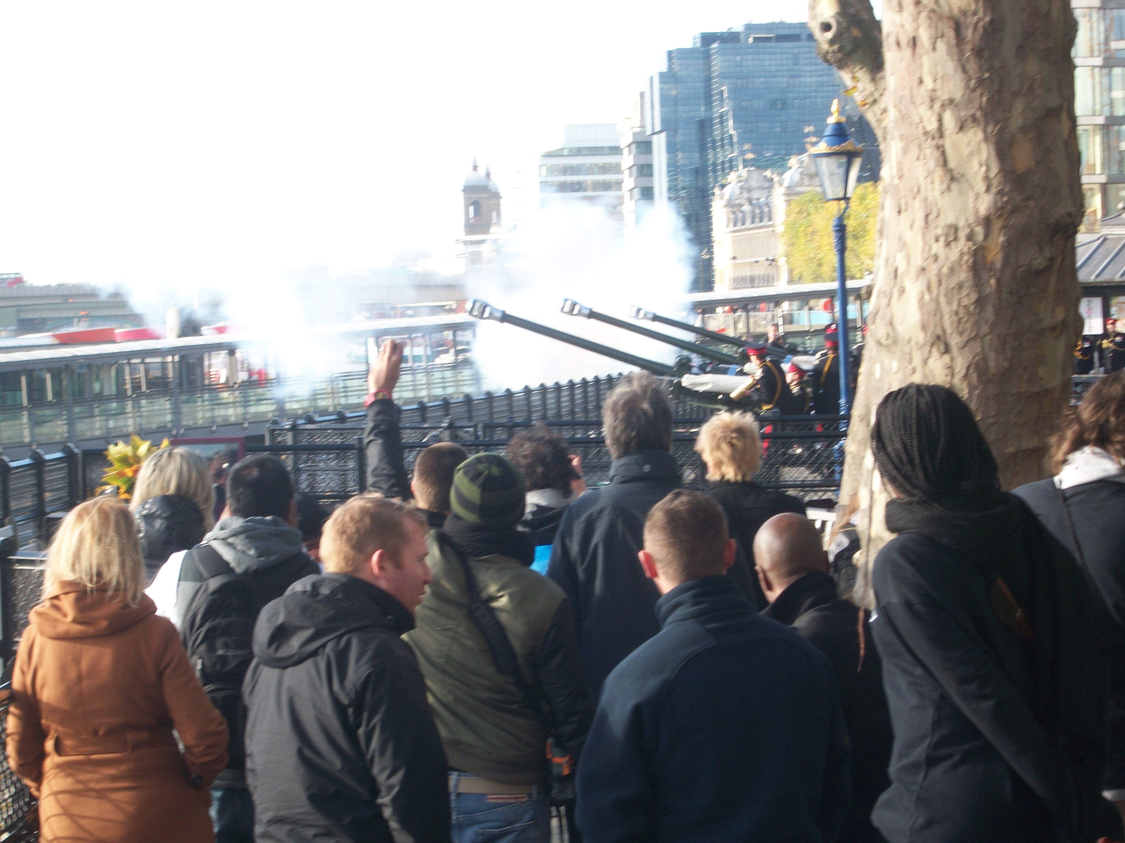 Le long de la Tamise, en face de la Tour un petit spectacle de tirer de 3 canons.