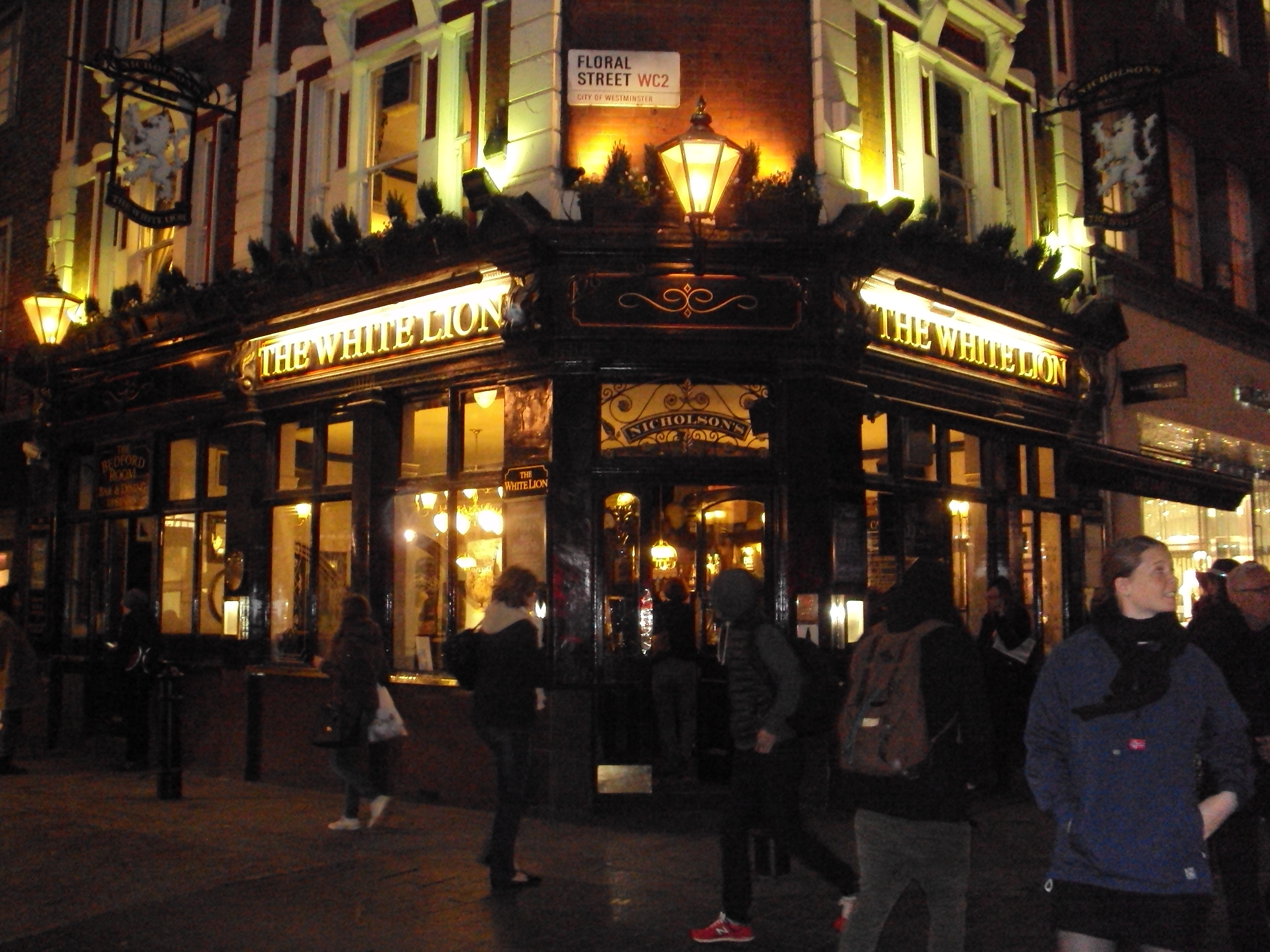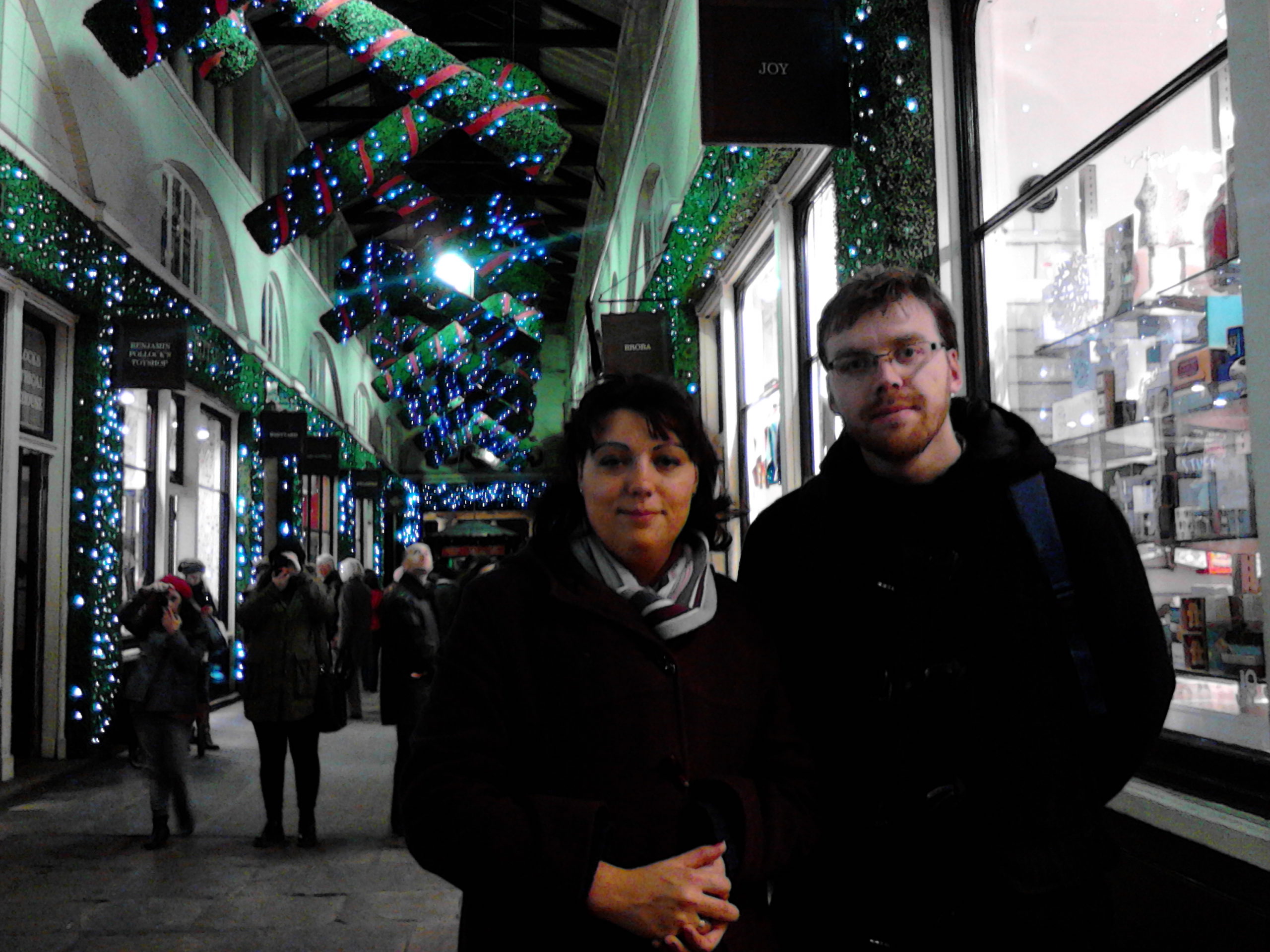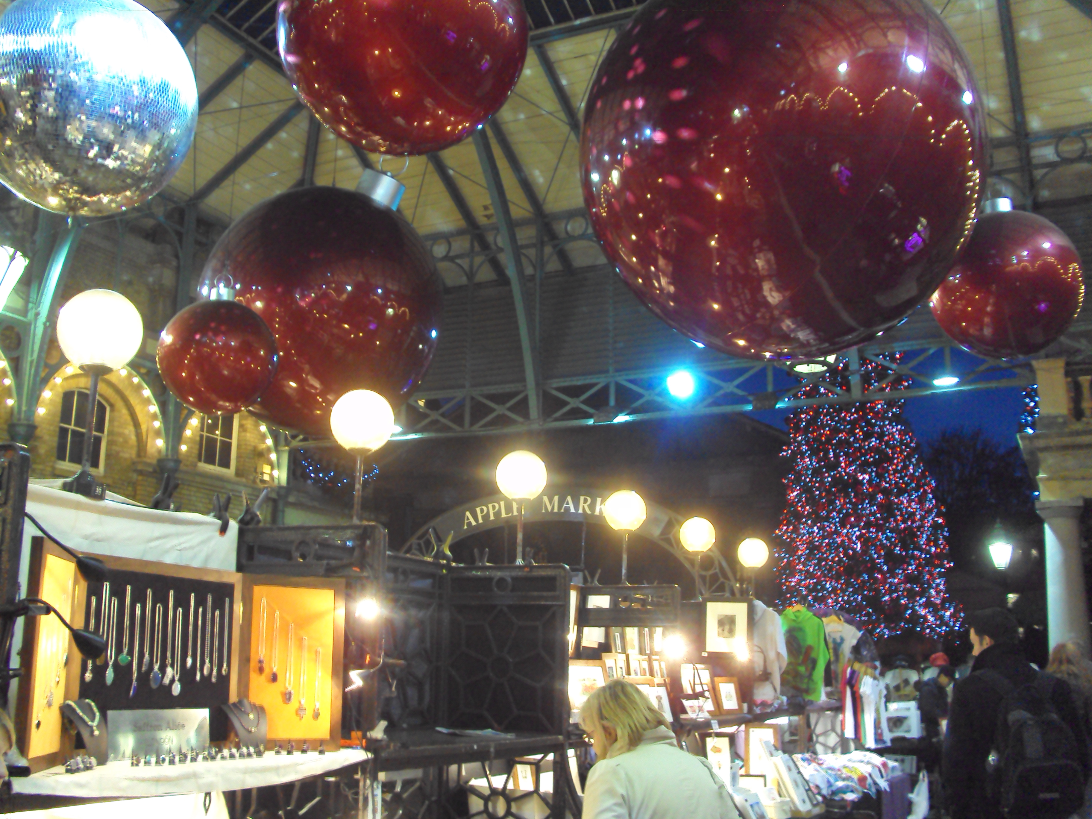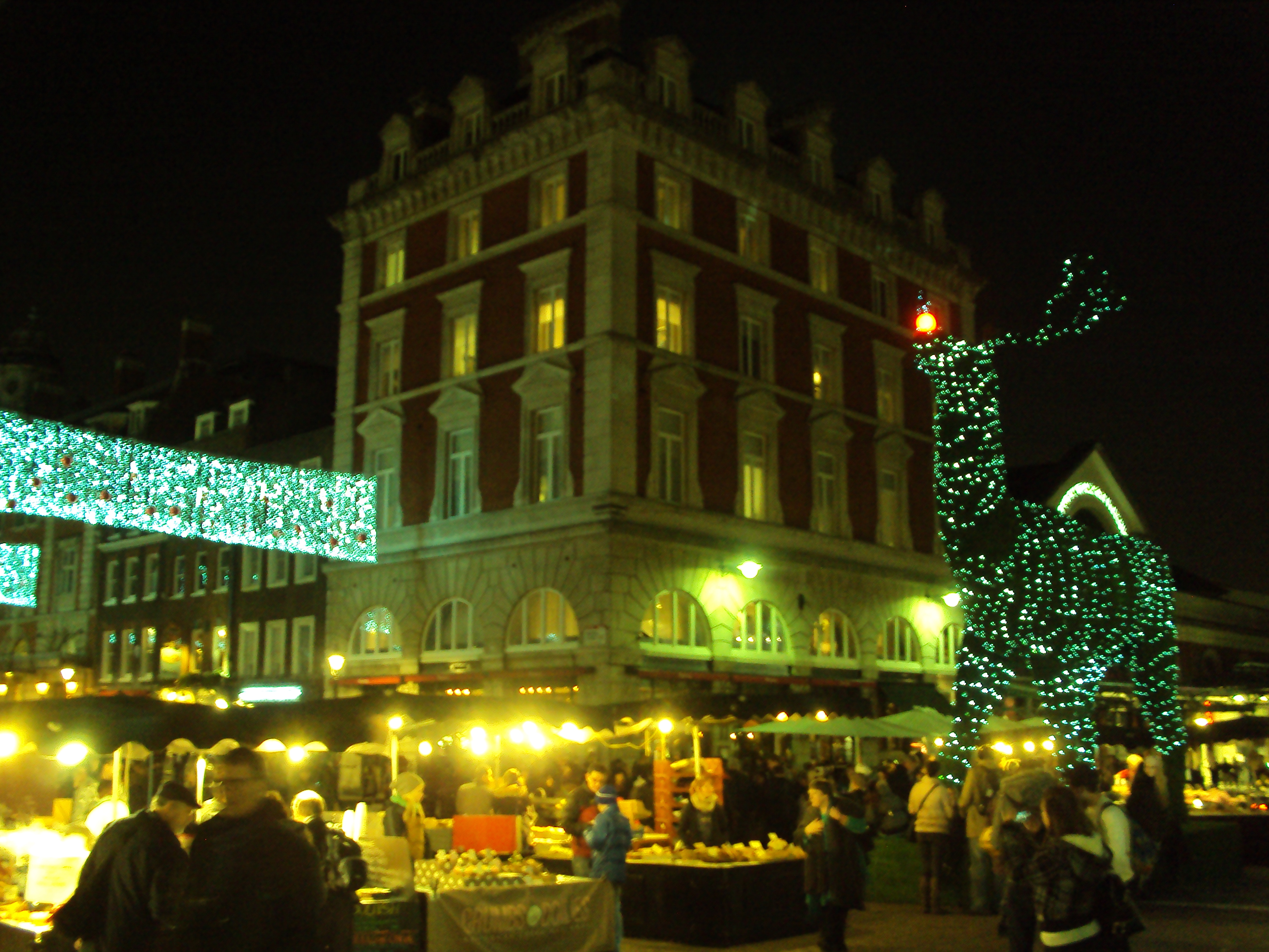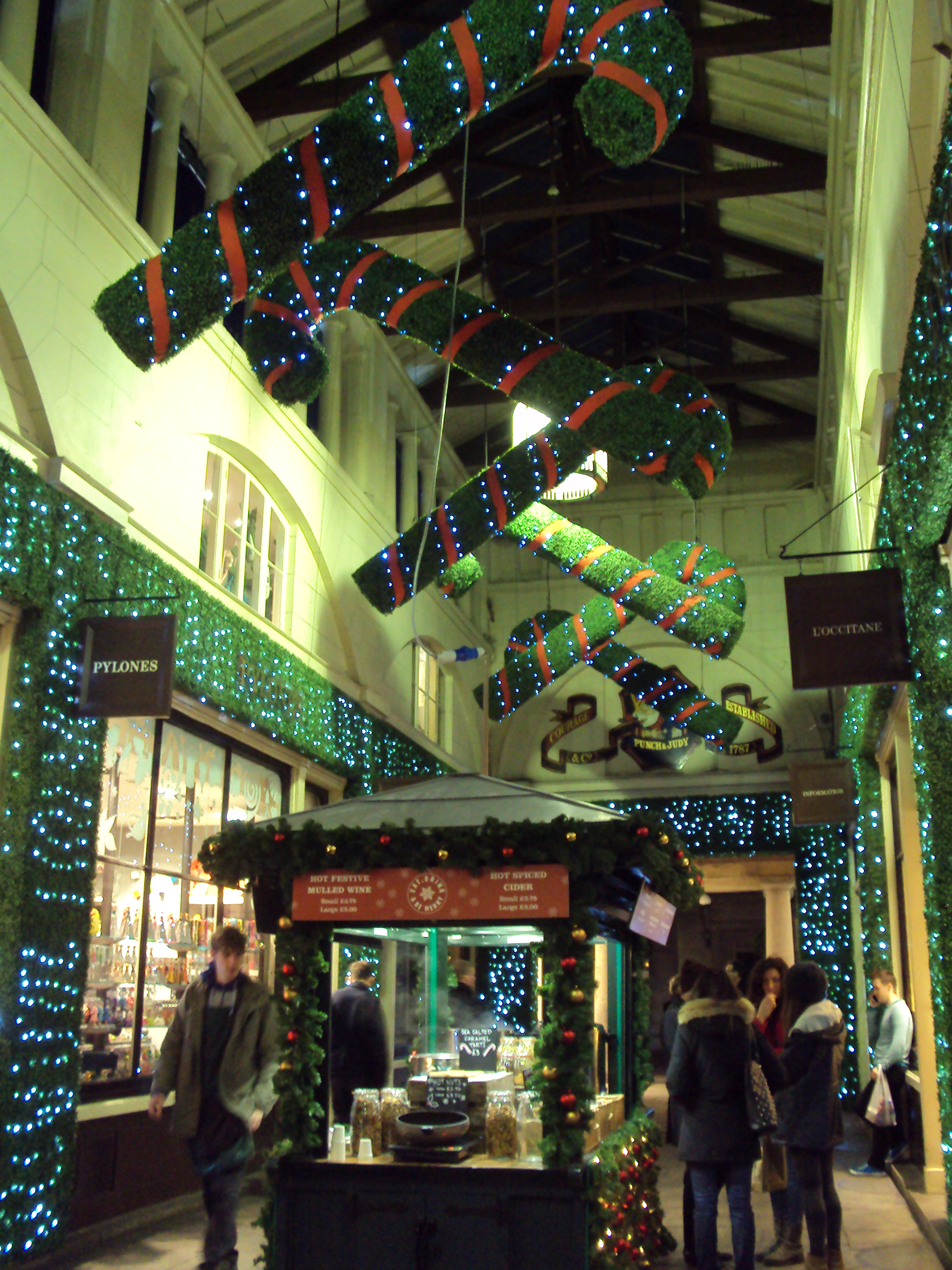 La tombée de la nuit approche (16h), on décide d’aller à Covent Gradens marché/arcades couvertes très fréquentées par les Londoniens fermant à 18h. Vraiment on ne regrette pas, c’était très beau, avec les décorations de Noël en plus. Pleins de petites boutiques dans les arcades, de marchant ambulant.. j’ai trouvé plein de trucs à m’acheter, j’ai même acheté des minis cupcake tous mimis et bons :).