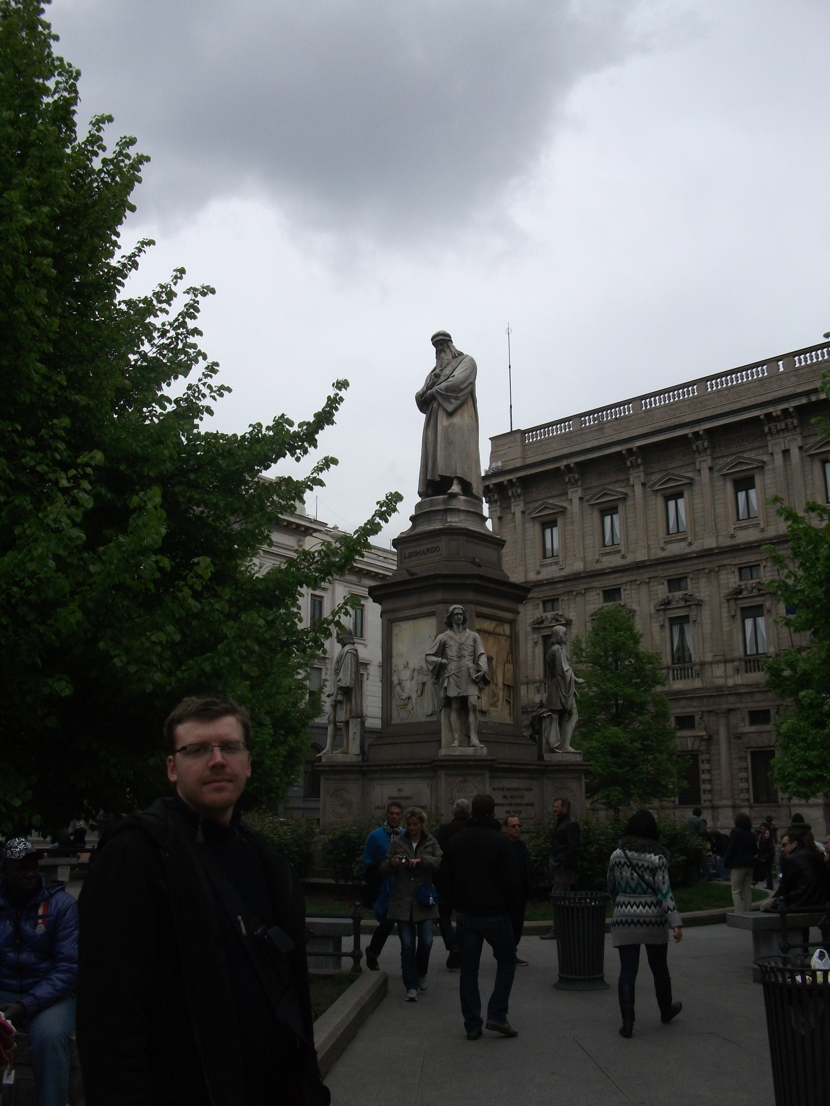 Piazza della Scala où se situe la statue de Léonard de Vinci.