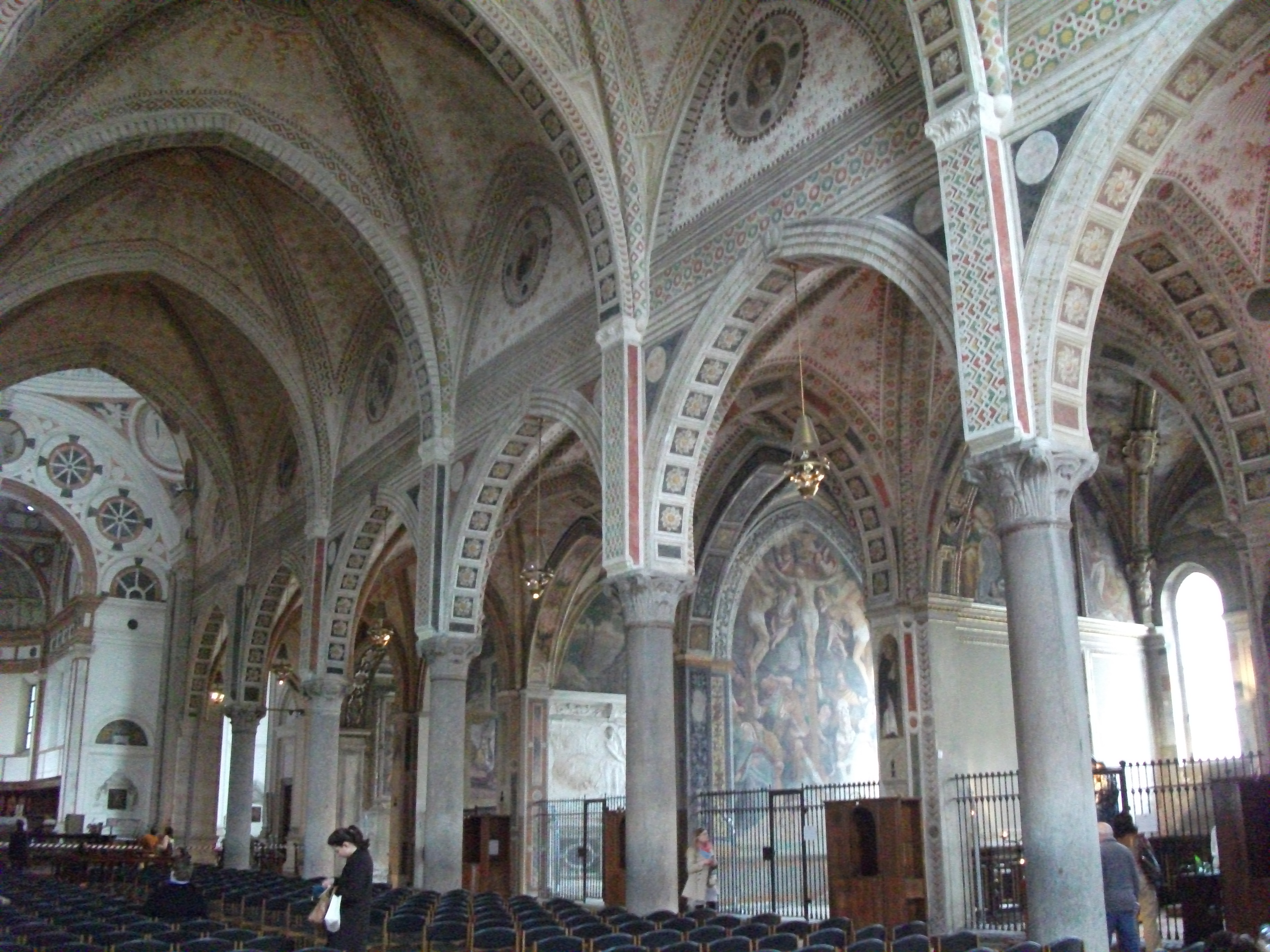 L’église Santa Maria delle Grazie (Sainte Marie des Grâces) et le Monastère Dominicain ont été construits entre 1466 et 1496 par Solari. L’église Santa Maria delle Grazie a été classée comme patrimoine mondial de l’UNESCO. L’église est mondialement connue parce qu’elle renferme un trésor inestimable : la Cène de Léonard de Vinci. C’est un des plus beaux chefs d’œuvre jamais réalisé.De nombreux touristes affluent pour pouvoir admirer ce fabuleux tableau de Léonard de Vinci. La Cène est la représentation du Dernier Repas de Jésus Christ. Le « Cenacolo » est le nom donné à l’endroit où Léonard de Vinci a peint la Cène : le Réfectoire du Monastère de Santa Maria delle Grazie, une pièce exceptionnelle née de la Renaissance à Milan. La Cène est un tableau qui a été peint par Léonard de Vinci entre 1494 et 1498 et est placé sur un des murs du Cenacolo. Sur le mur d’en face vous pourrez voir un autre tableau, la Crucifixion de Montorfano (1495). Au départ, avant l’intervention de Léonard de Vinci, l’endroit était complètement différent : Il était parfaitement symétrique avec 16 fenêtres, 8 par mur. Selon les suppositions, ce serait Léonard de Vinci lui-même a imposé un réaménagement des fenêtres pour qu’il puisse peindre la Cène à cet endroit.