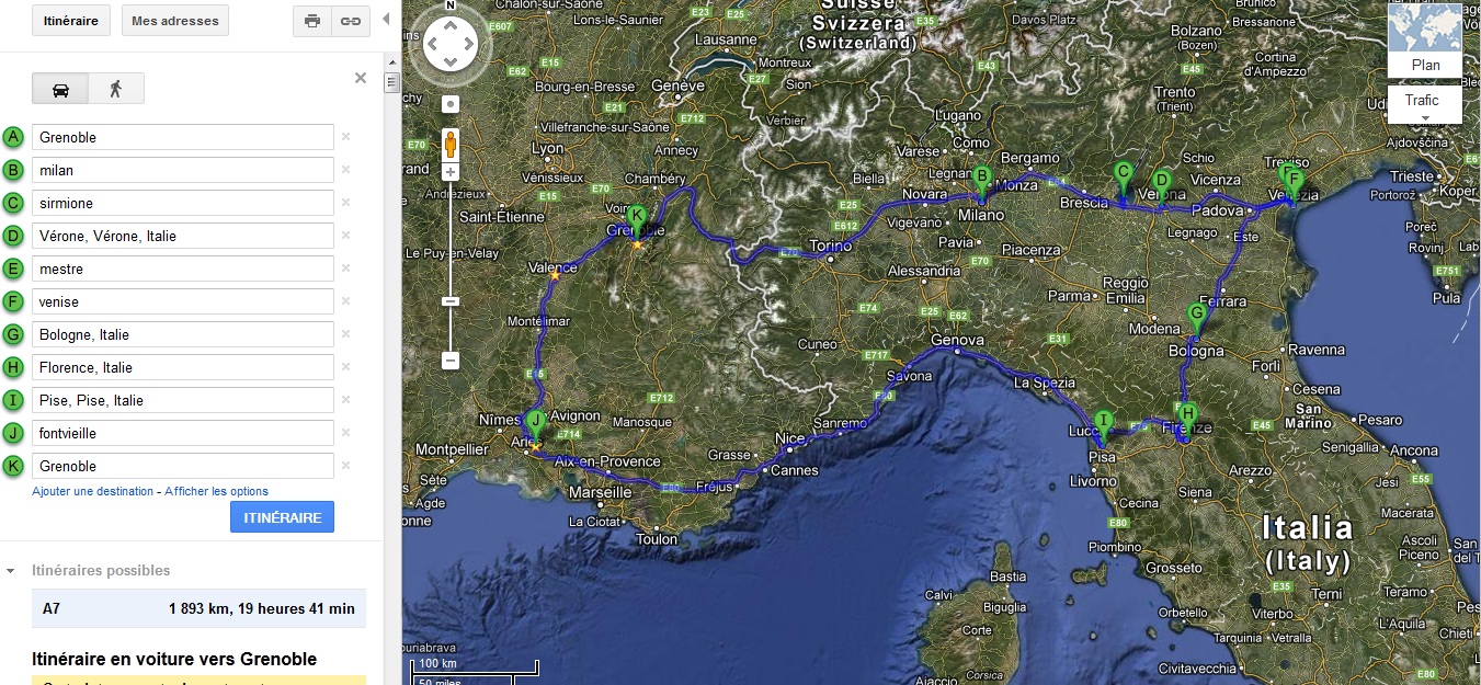 Voici le commencement du séjour Italie du Nord, où on a parcouru prés de 2000km.
