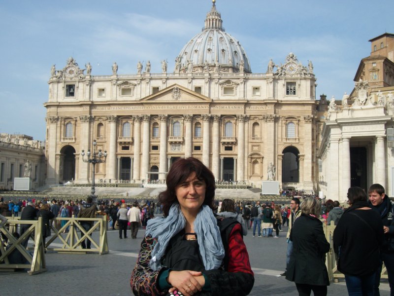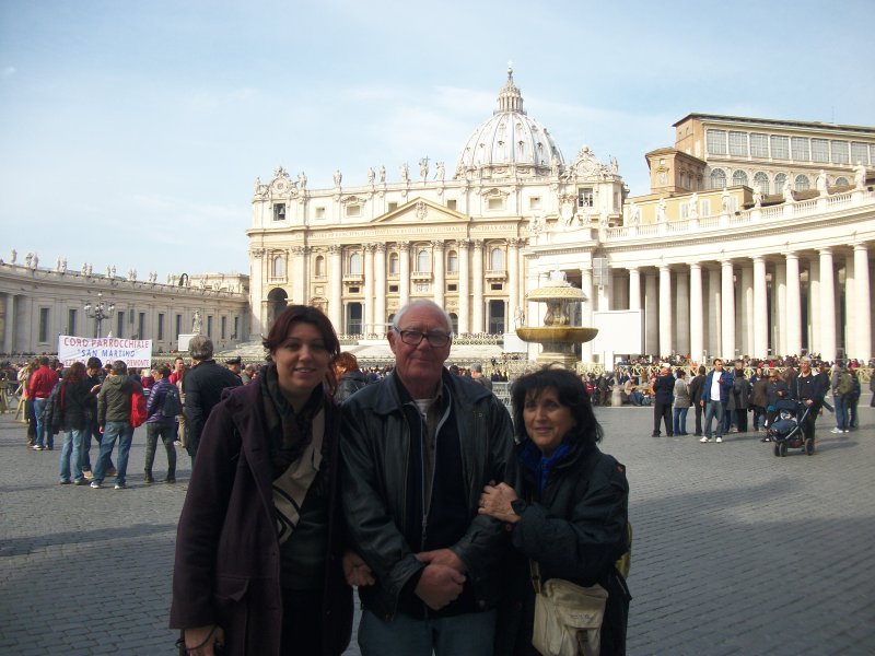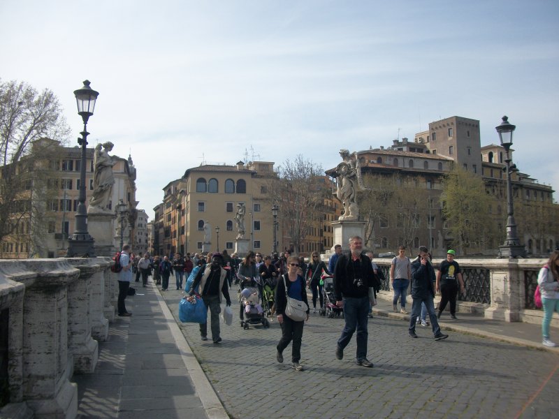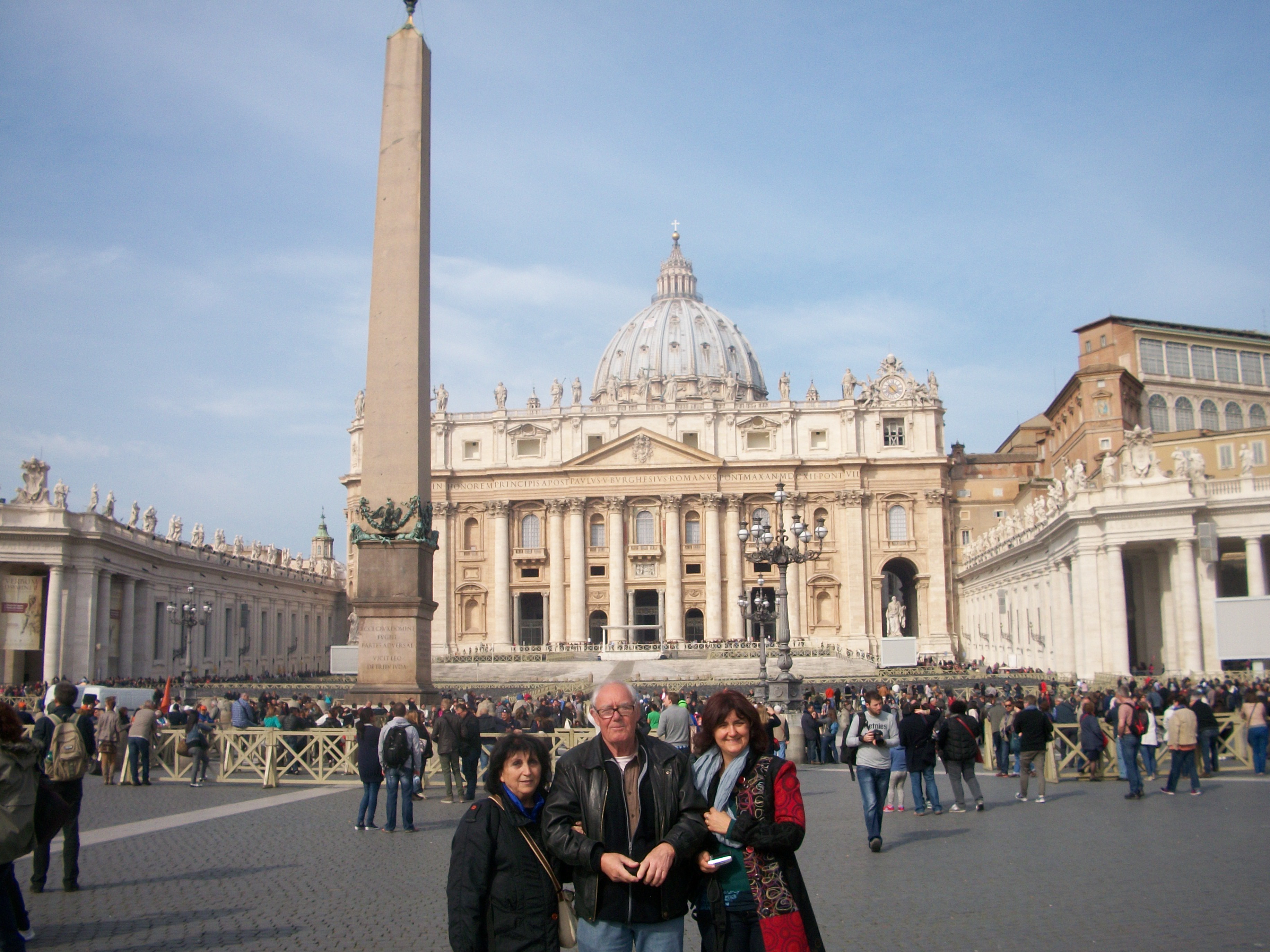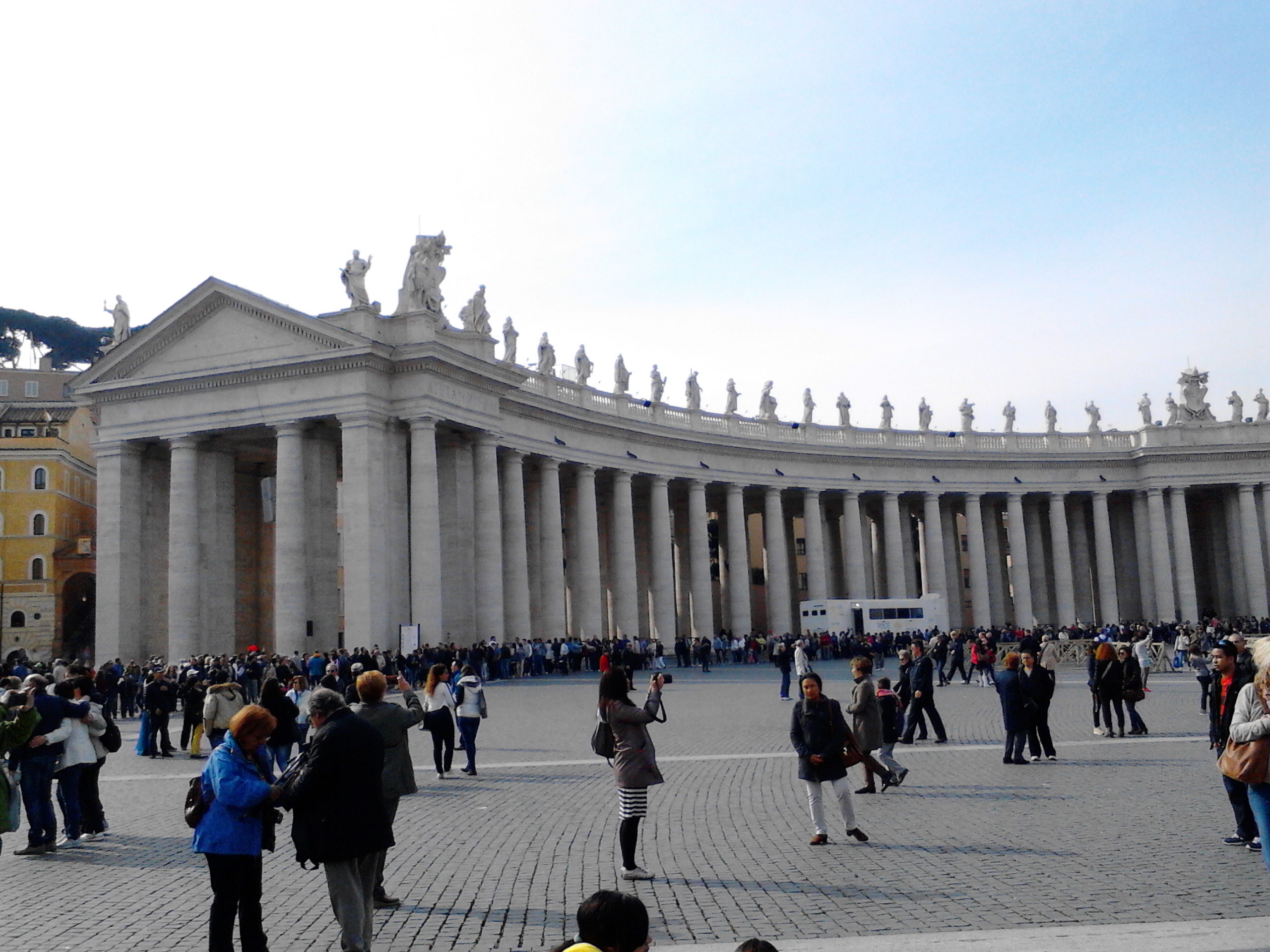 On devait se rendre aux musées du Vatican car gratuit le dernier dimanche du mois, cependant dés l’instant où nous sommes rentrés dans le métro Termini un monde… on s’est demandé où allaient les gens un dimanche matin, et bien ils sont tous descendus à Ottoviano arrêt du Vatican. C’était « suivez la foule pour trouver la queue qui longeait les remparts, une queue qui allait jusque sur la place saint Pierre. Je pense qu’il y avait 4h de queues, tout cela pour s’entendre dire à l’arrivée « on ferme ». Et puis cela devait être invivable à l’intérieur. Du coup on a préféré se rendre à la Basilique mais la aussi une queue qui faisait tout le tour de la place et qui remontait dans la rue derrière.
