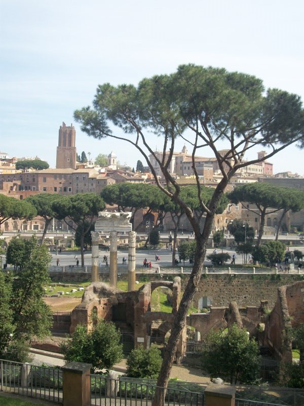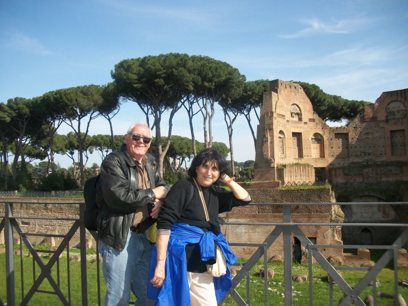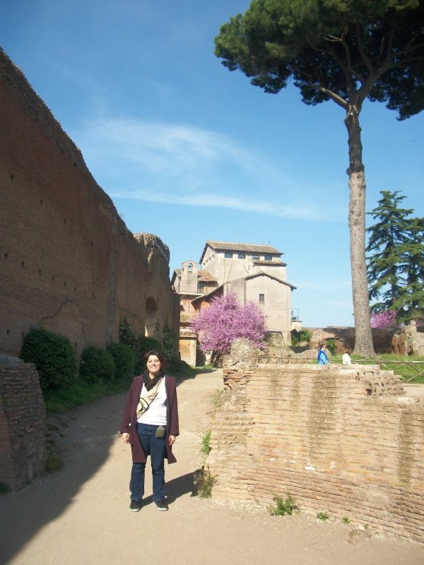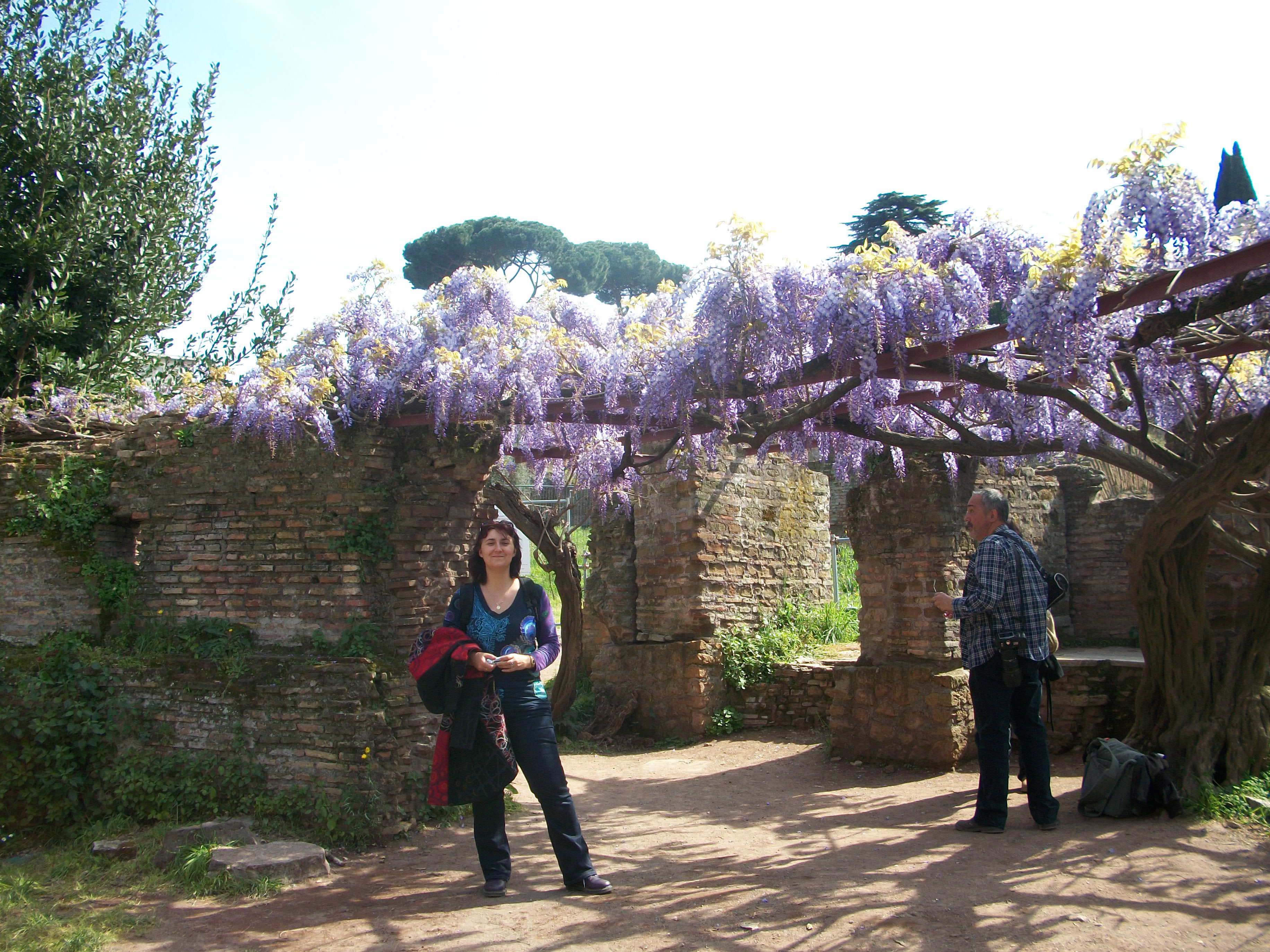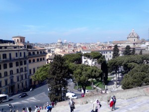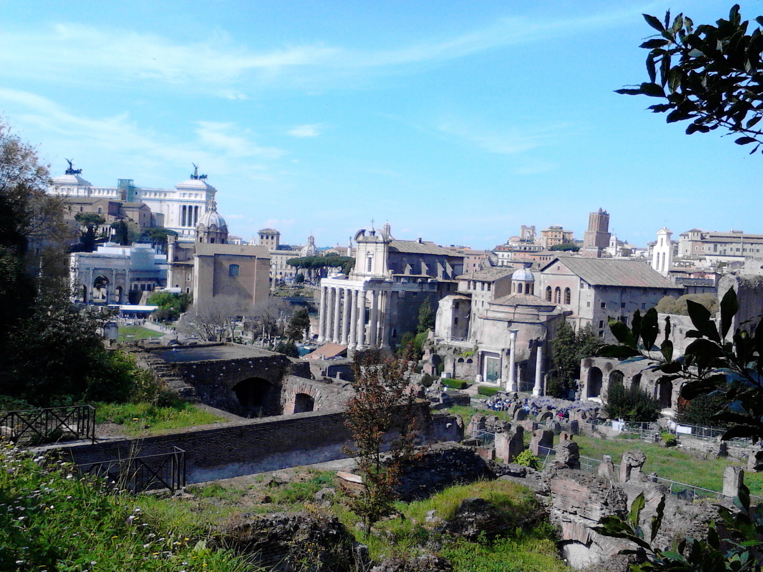 On a fait quand même de jolis photos avec ce beau temps et la vue depuis la colline du Mont Palatin. Sous l’Empire, le Palatin fut occupé par d’imposantes demeures construites pour les empereurs, ce qui a donné naissance au mot « palais ». Leurs ruines occupent aujourd’hui une grande partie de la colline.