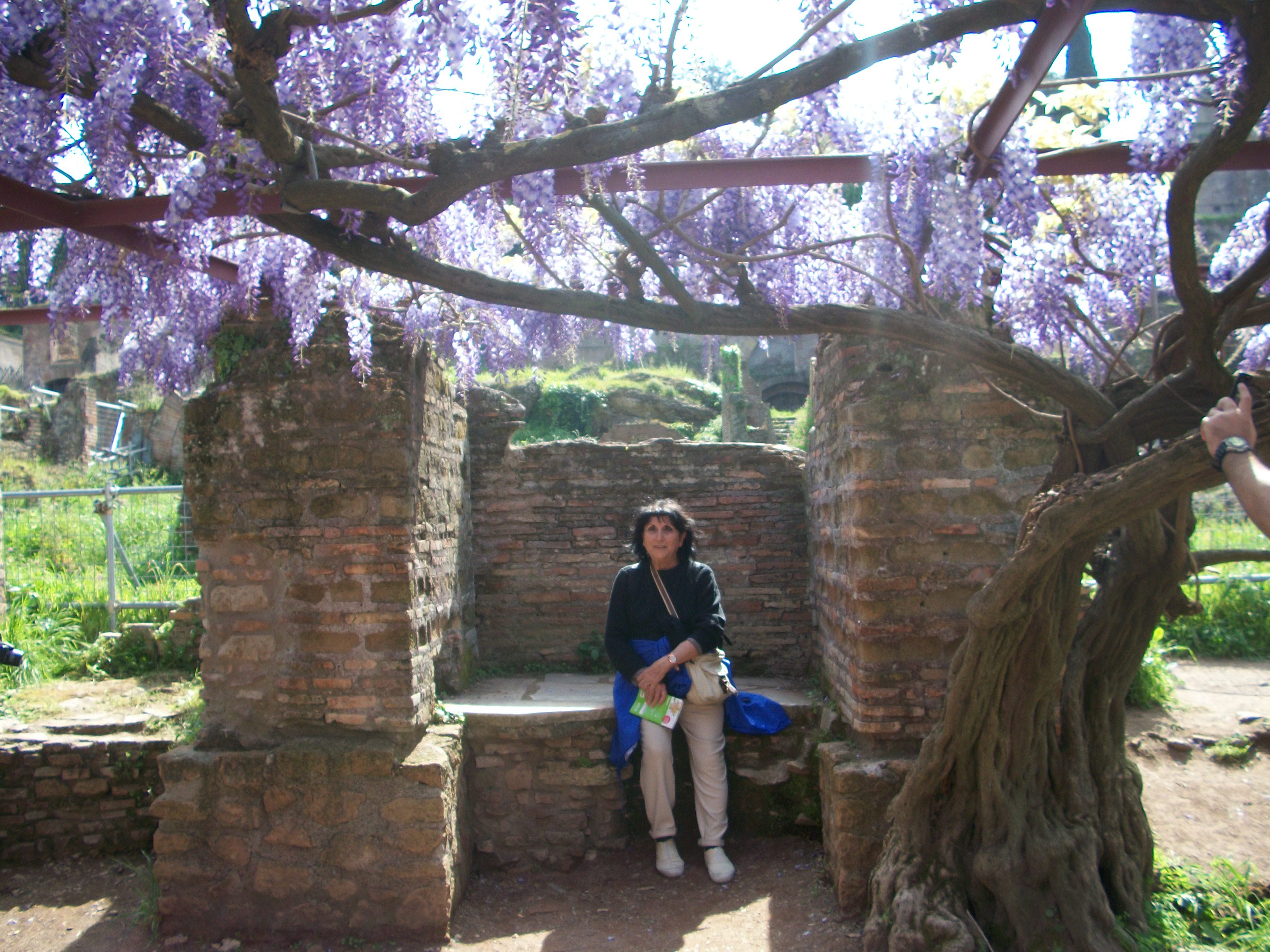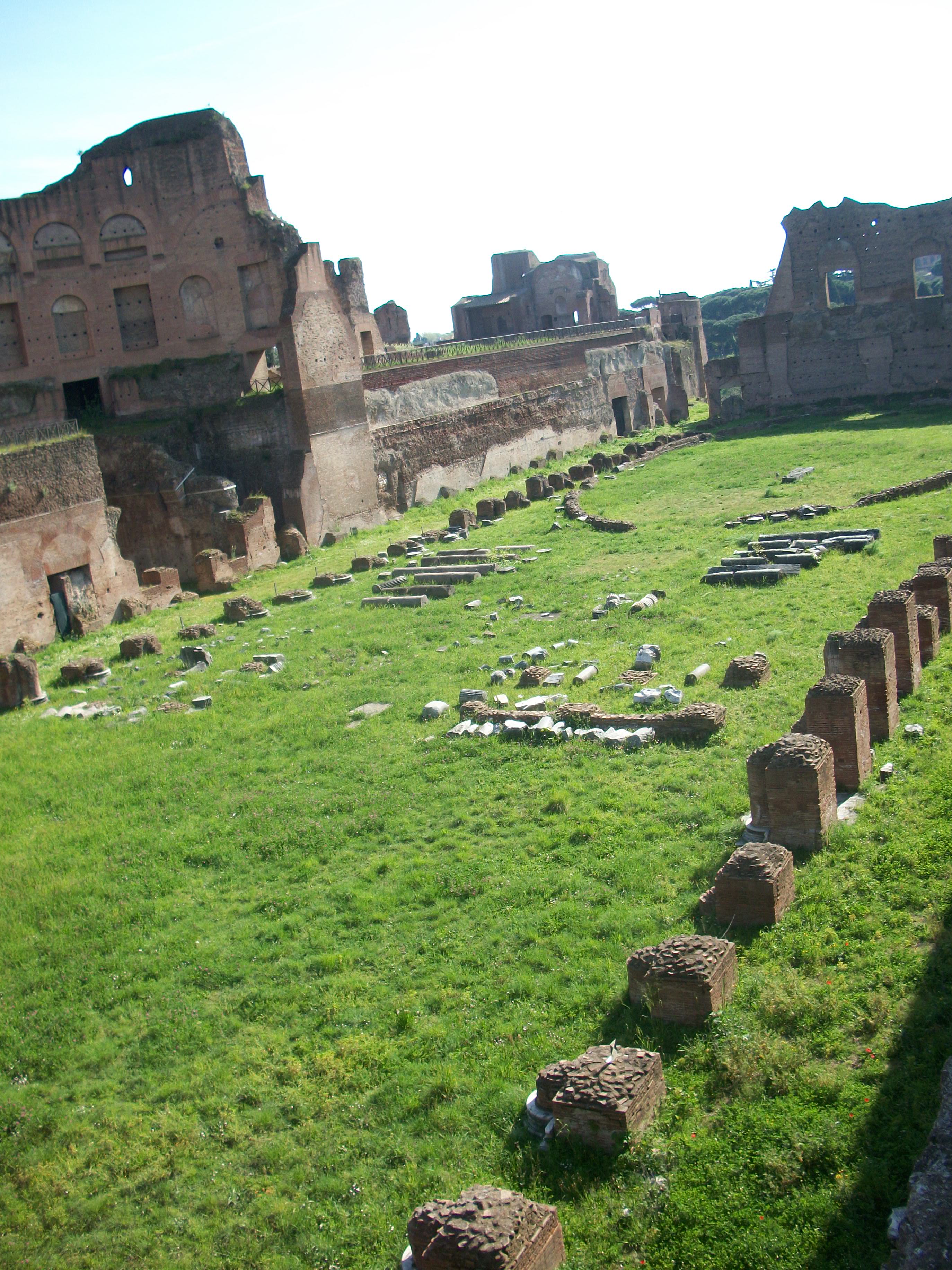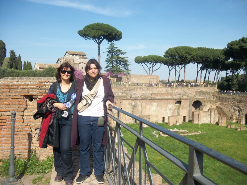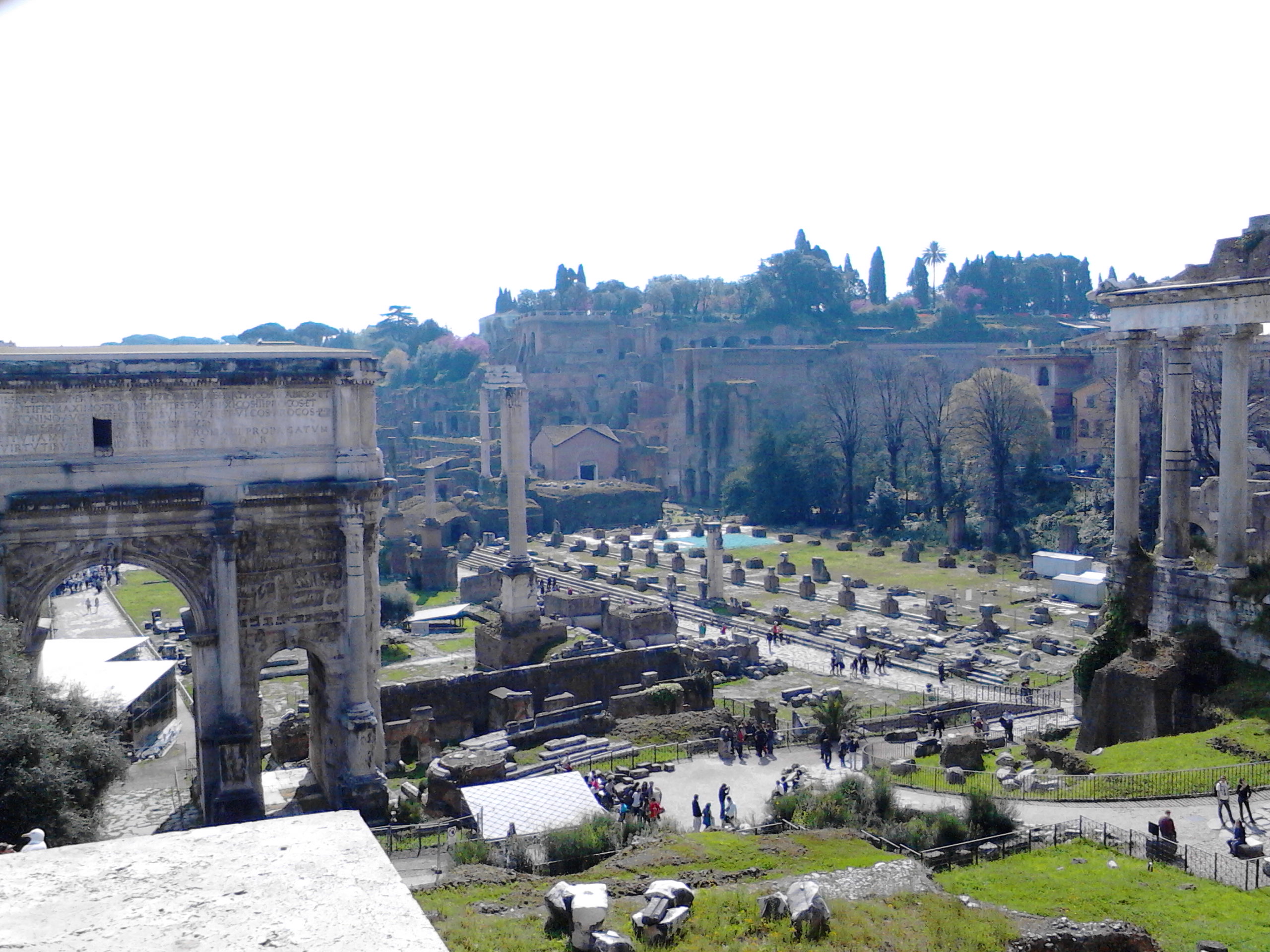 On a fait quand même de jolis photos avec ce beau temps et la vue depuis la colline du Mont Palatin. Sous l’Empire, le Palatin fut occupé par d’imposantes demeures construites pour les empereurs, ce qui a donné naissance au mot « palais ». Leurs ruines occupent aujourd’hui une grande partie de la colline.