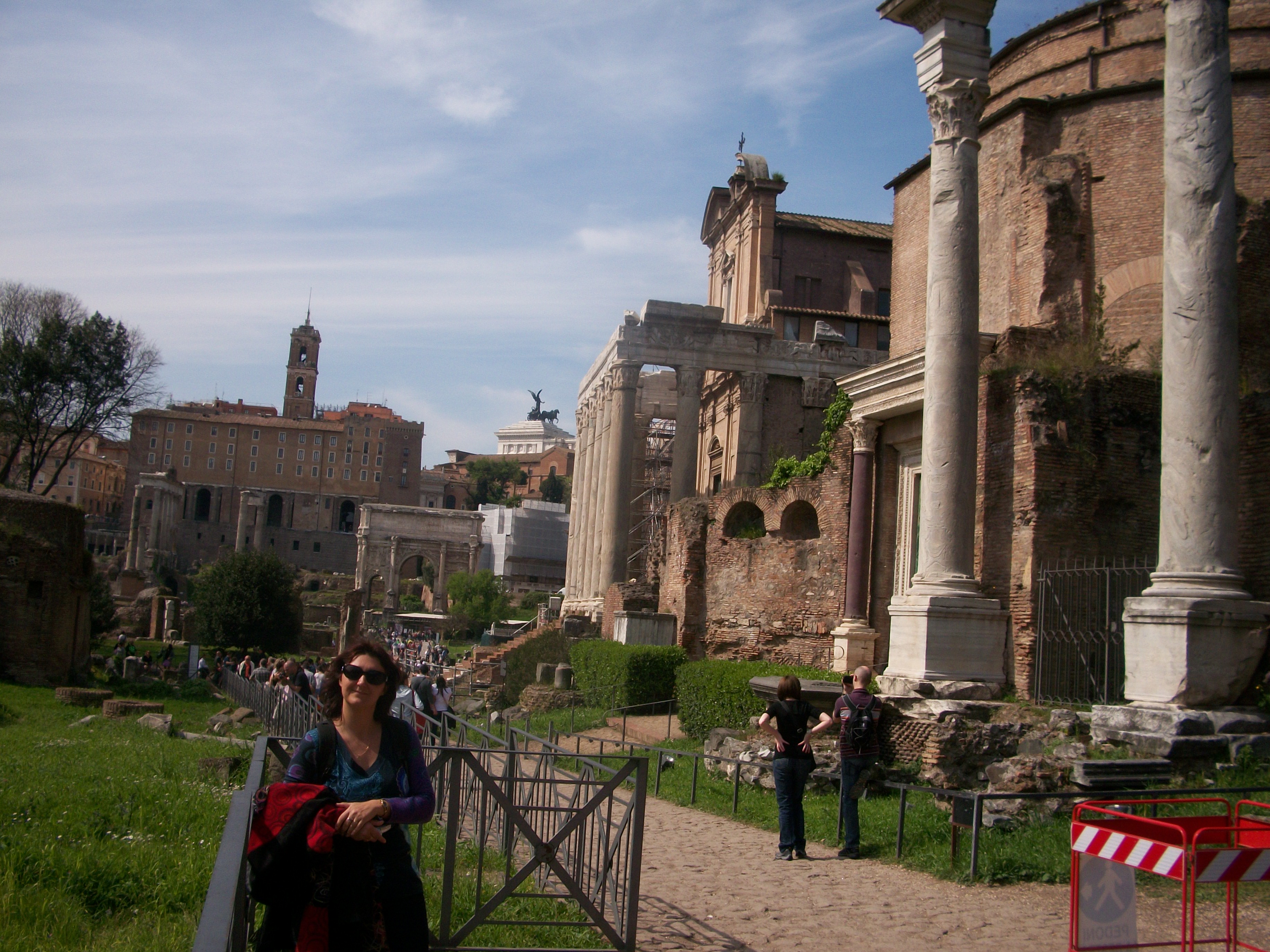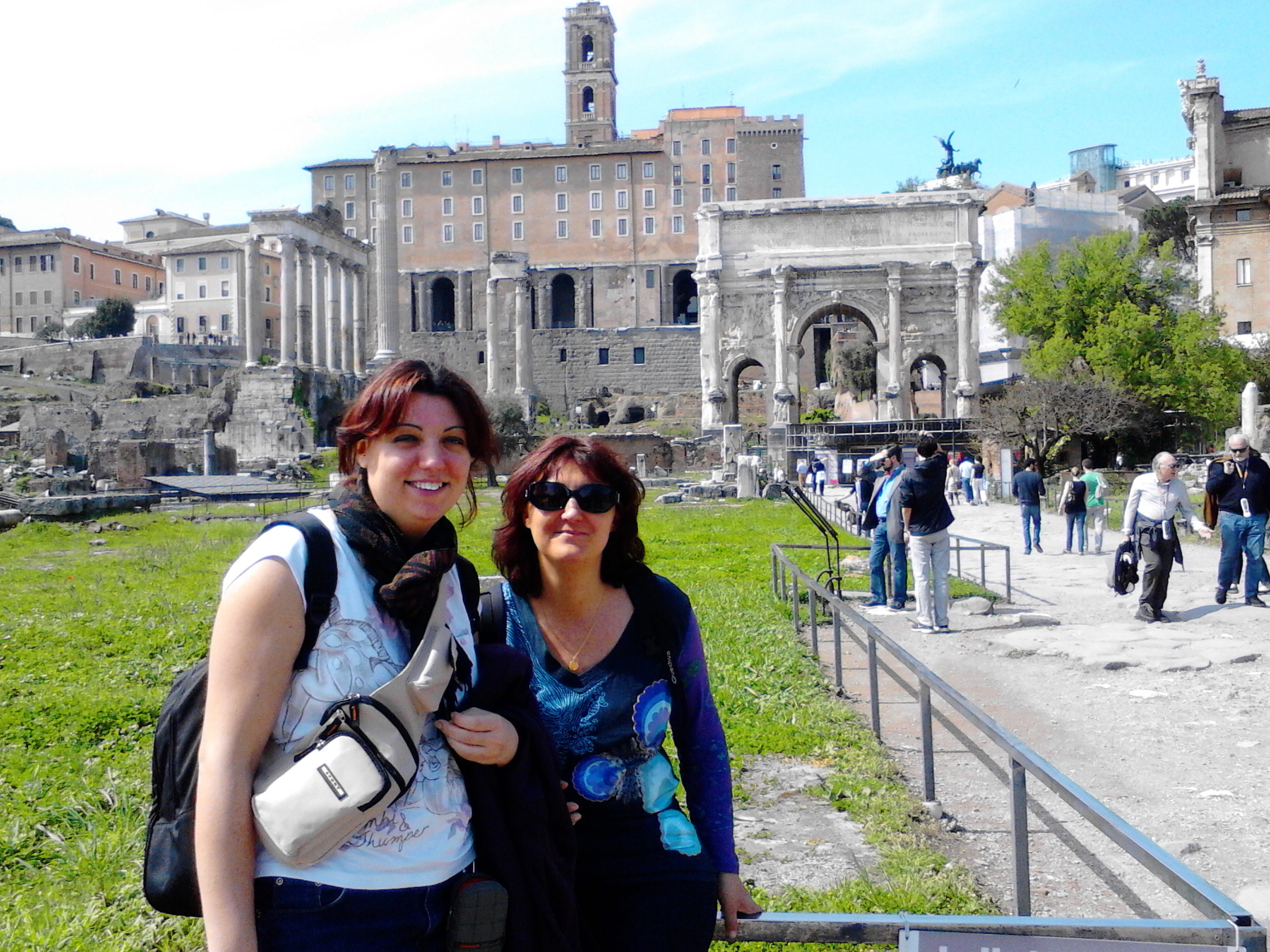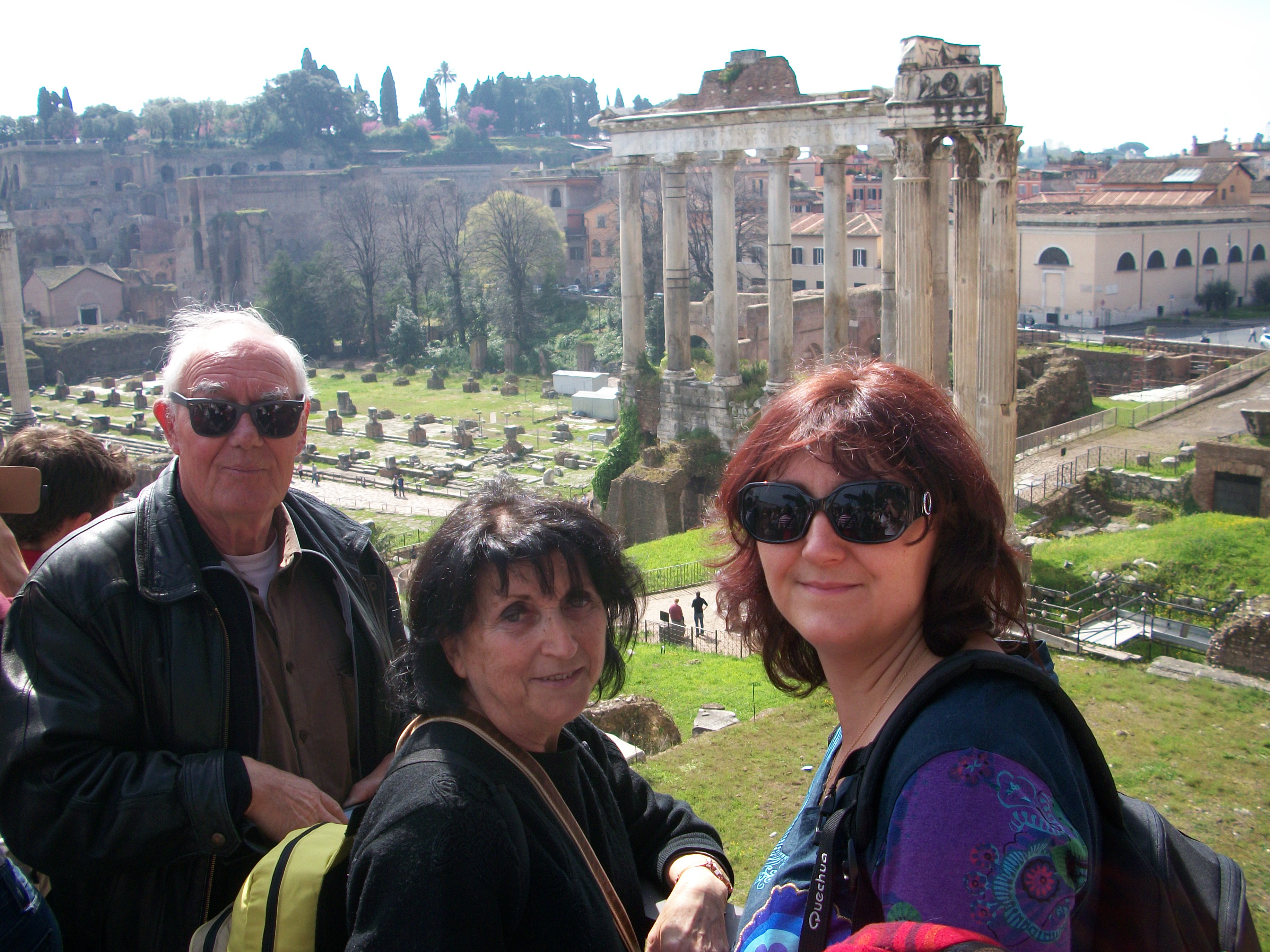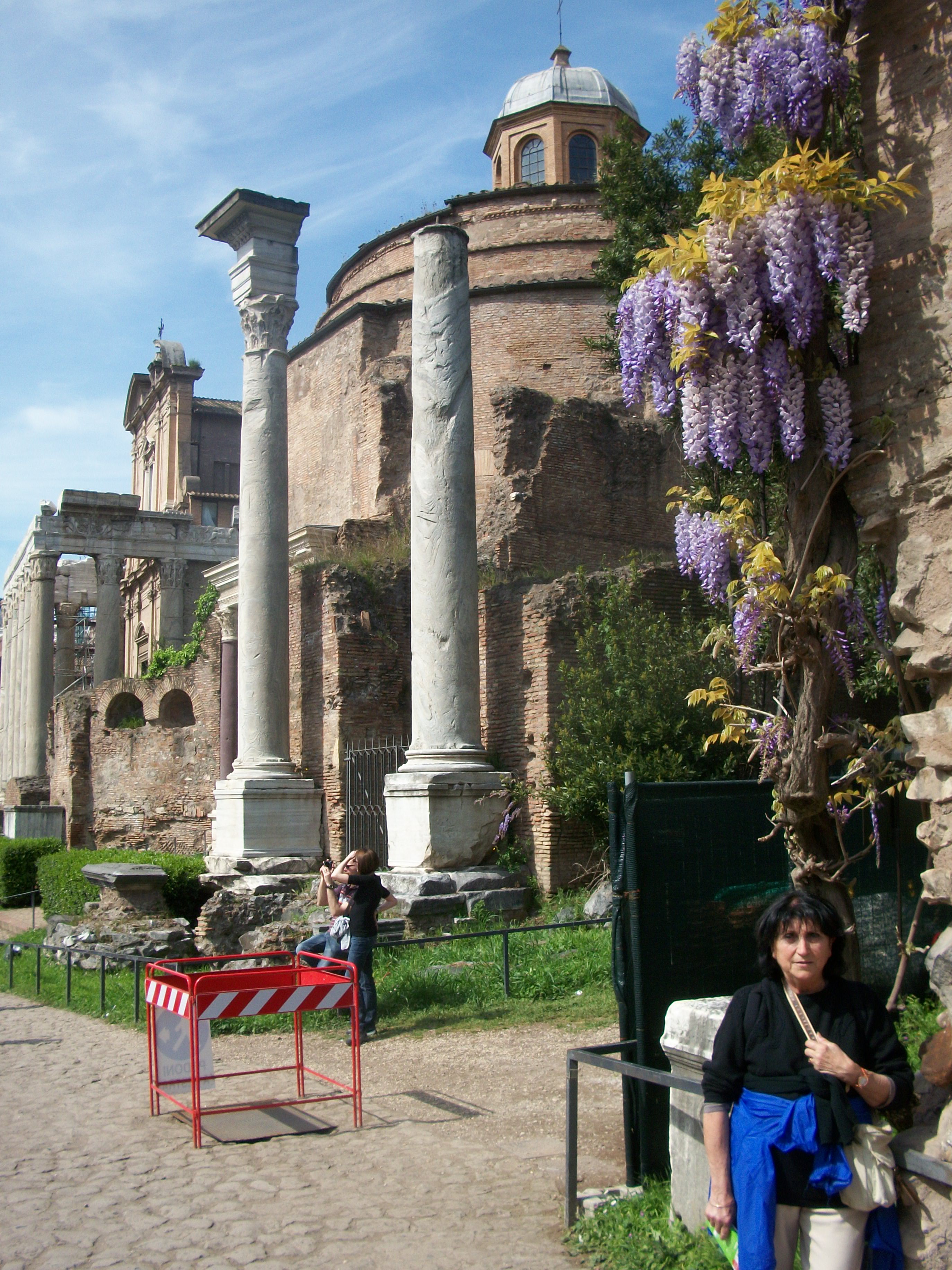 On a fait quand même de jolis photos avec ce beau temps et la vue depuis la colline du Mont Palatin. Sous l’Empire, le Palatin fut occupé par d’imposantes demeures construites pour les empereurs, ce qui a donné naissance au mot « palais ». Leurs ruines occupent aujourd’hui une grande partie de la colline.