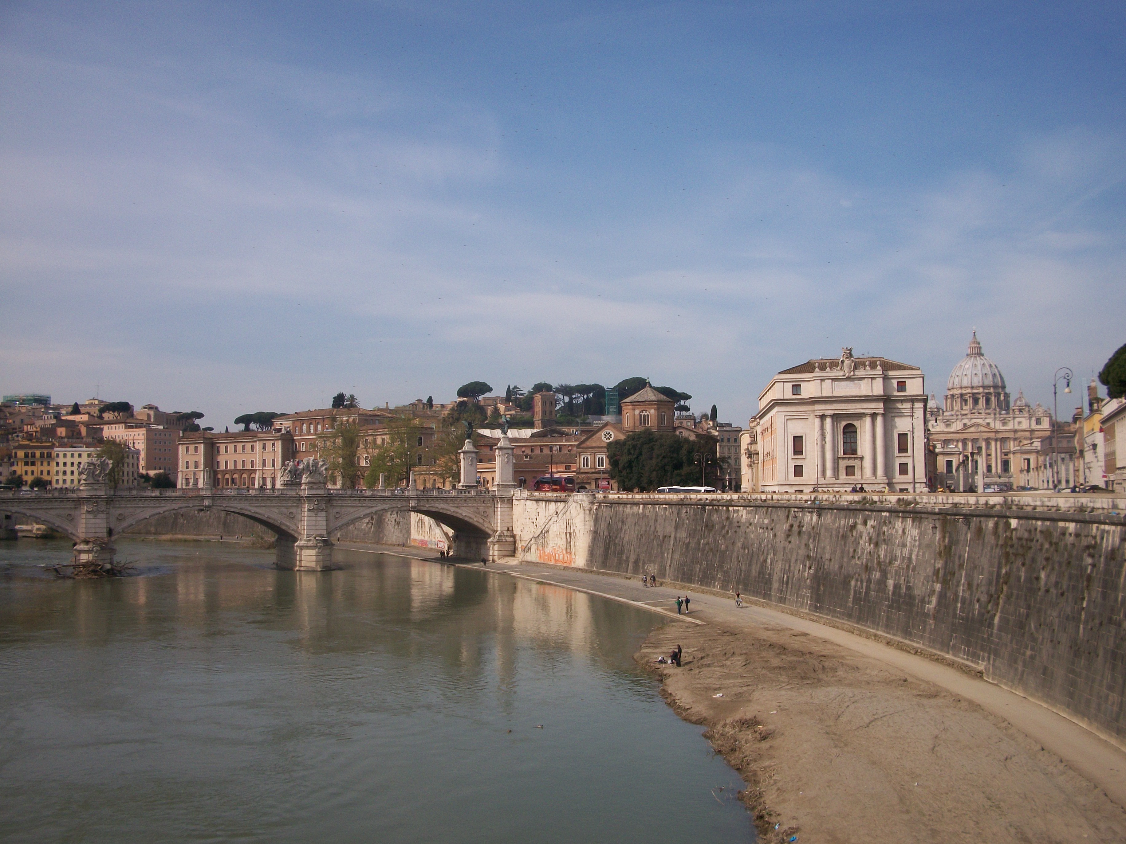 Vue sur le pont, le fleuve Tevere et la basilique saint Pierre