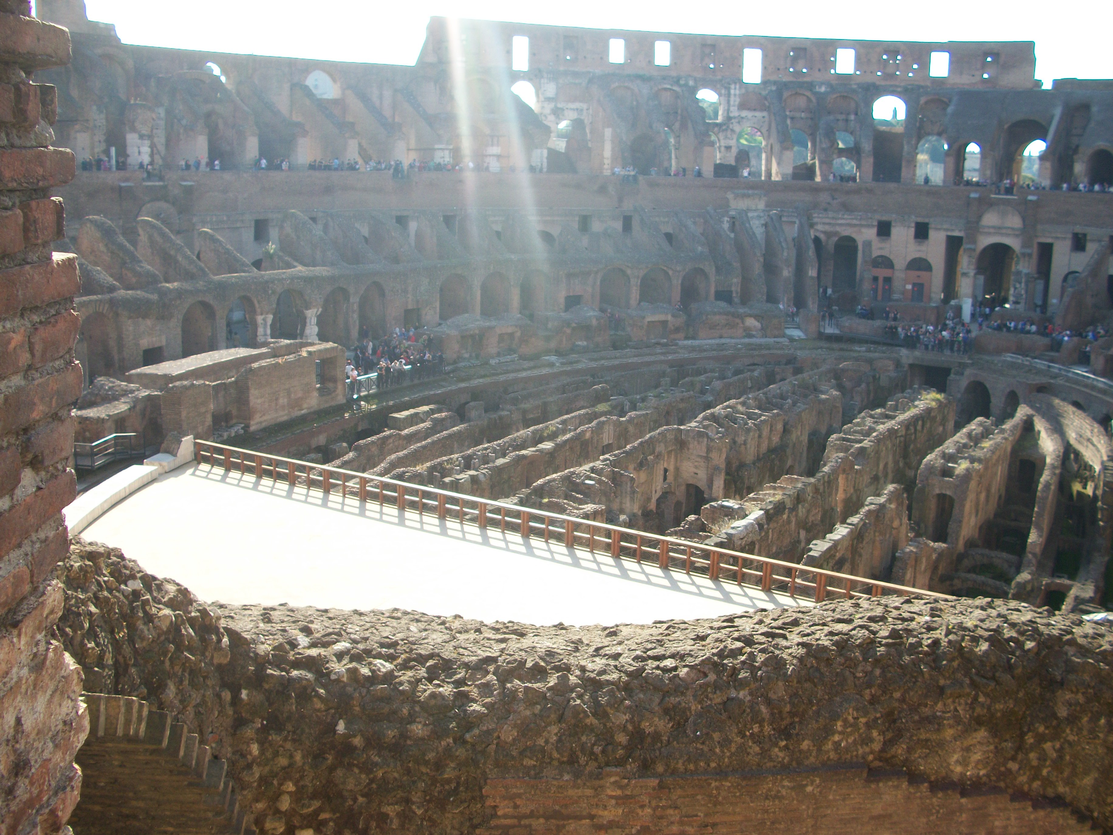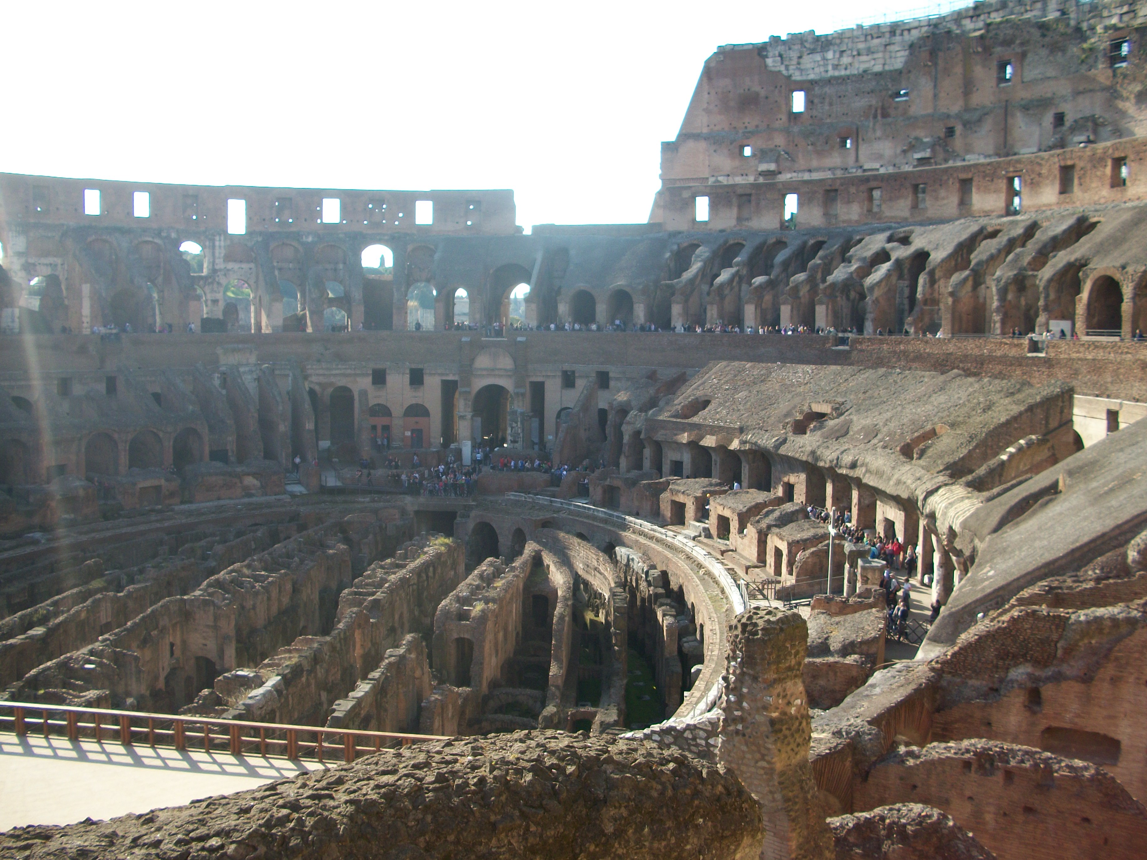 En sortant de la on va vite au Colisée avant qu’il ne soit trop tard. Bien heureuse d’avoir déjà les entrées… gain de temps car au forum genre 5 min de queue et Colisée 20 min. On a mis 45 min à faire le tour, une impression d’un vieux squelette quand nous sommes au milieu des ruines, et tous ces anciens massacres et de morts… Entre les incendies et l’utilisation des pierres par les habitants pour leur maison, le Colisée tombe en ruine et aujourd’hui n’est plus utilisé contrairement aux arènes de Nîmes ou Arles.