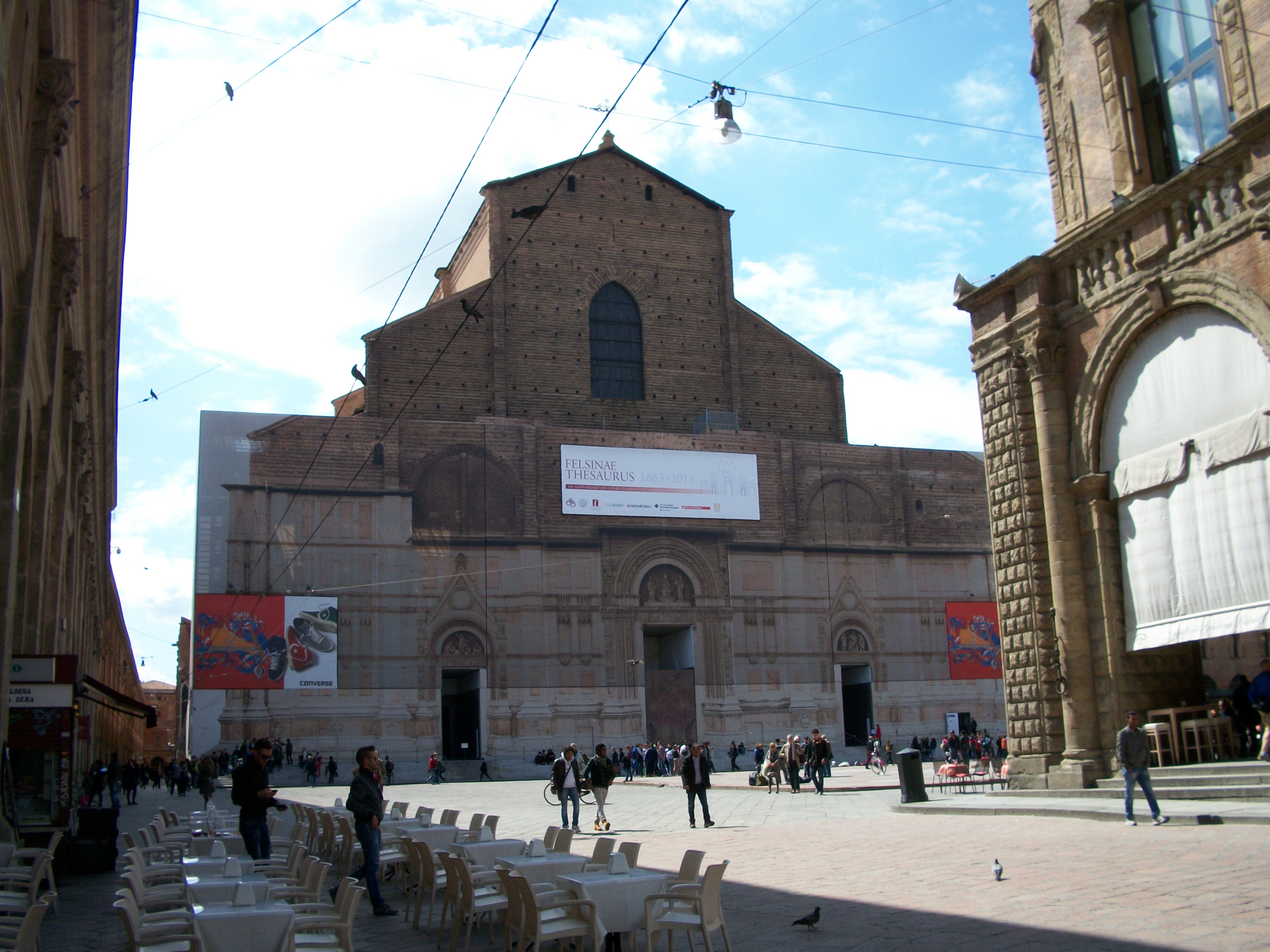 Piazza Maggiore; de gauche à droite: Palazzo dei Banchi, Basilica di San Petronio, Palazzo dei Notai, Palazzo d’Accursio.