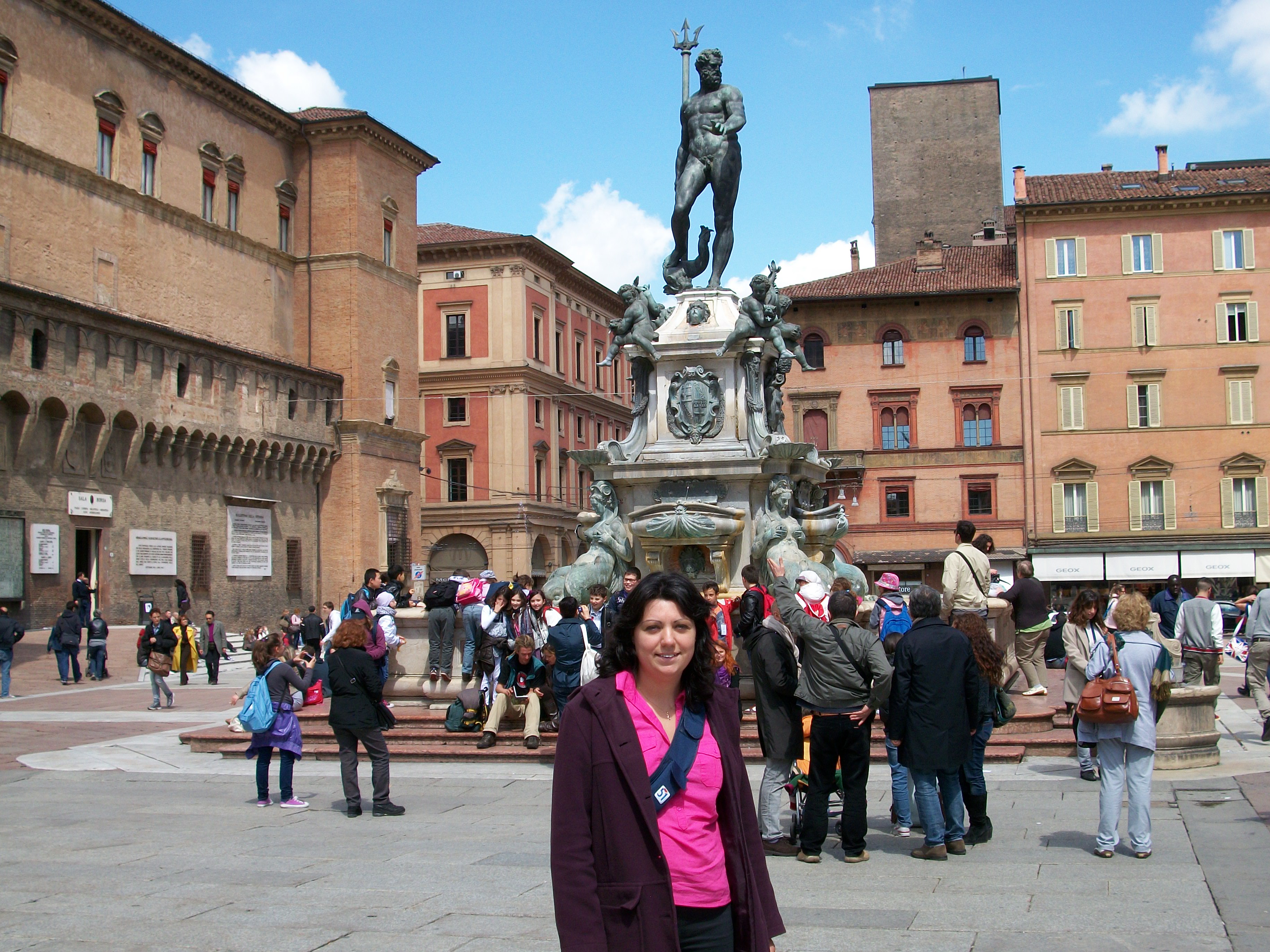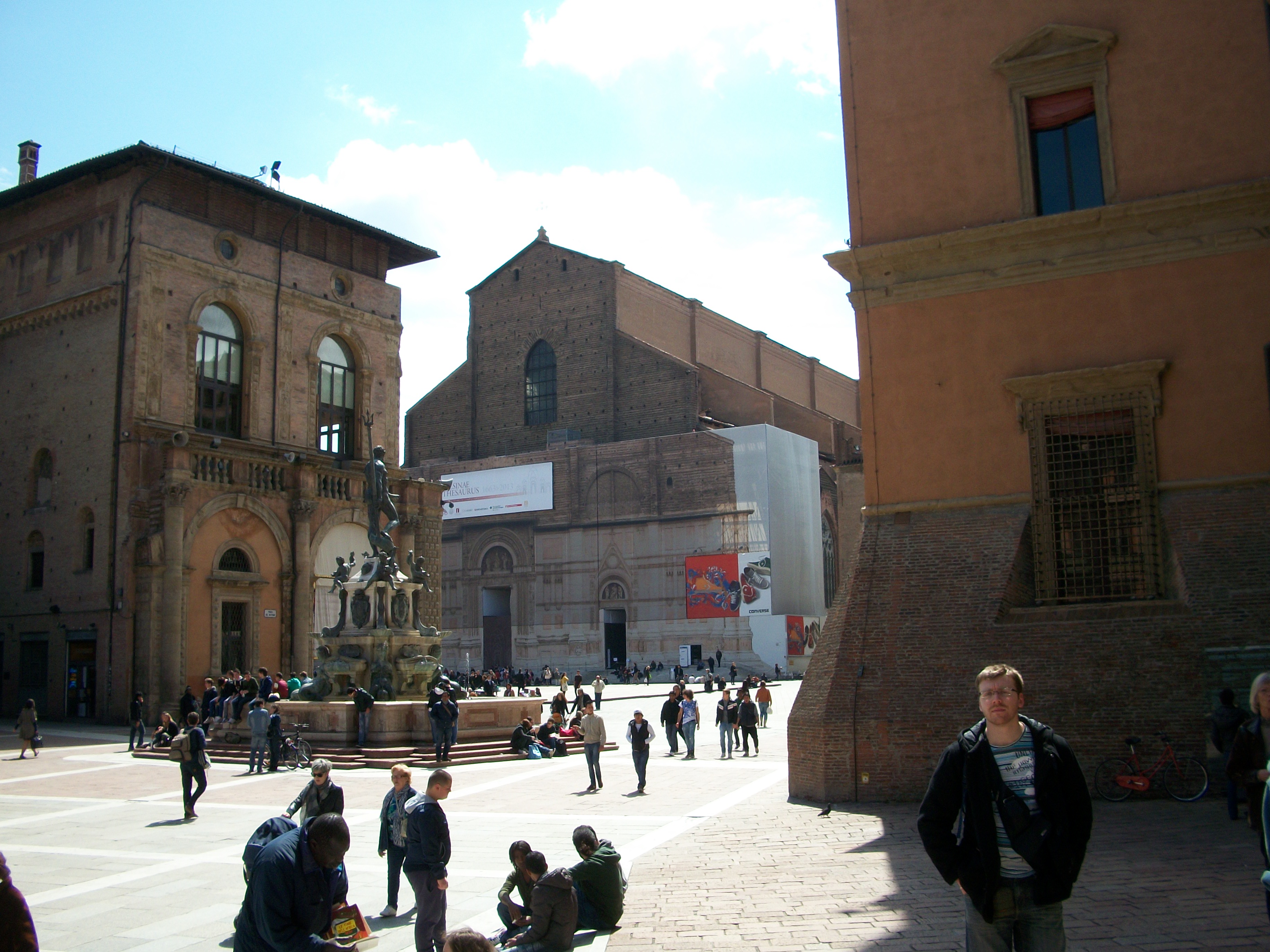Nous continuons Piazza Maggiore cœur de la ville. Entourés de bâtiments comme le Palais des Notaires, le Palais du Podesta, le Palais des Bianci