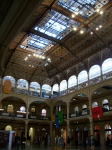 où vous pourrez entrer, jeter un petit coup d’œil au sol de verre qui protège des vestiges romains. Ce bâtiment est aujourd’hui une bibliothèque des plus modernes.