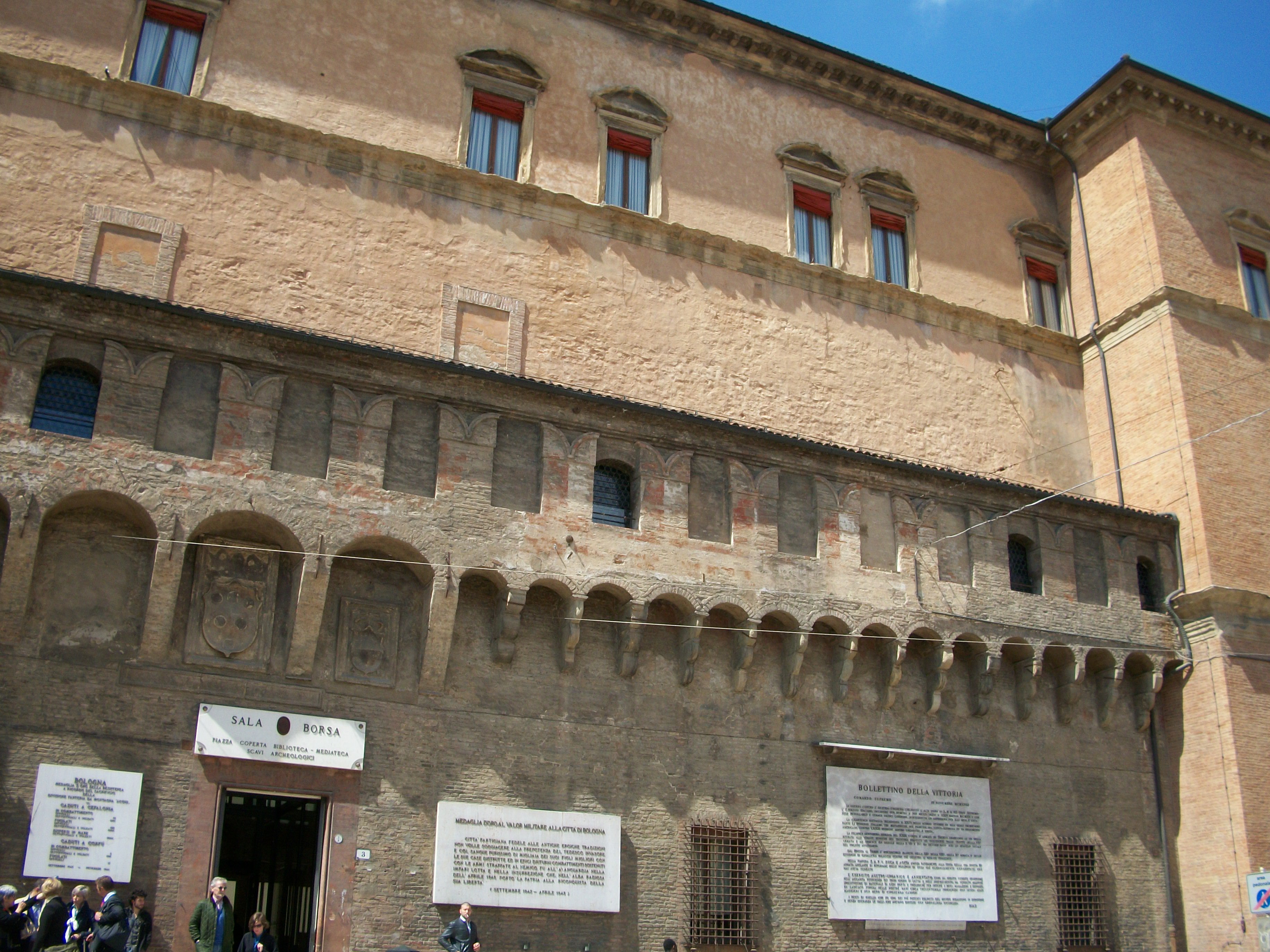 Palazzo dei Banchi : C’est de là que part le portique le plus célèbre de la ville, le Pavaglione, qui relie le Piazza Maggiore au Palais de l’Archiginnasio, l’ancien et premier siège de l’Université de Bologne.