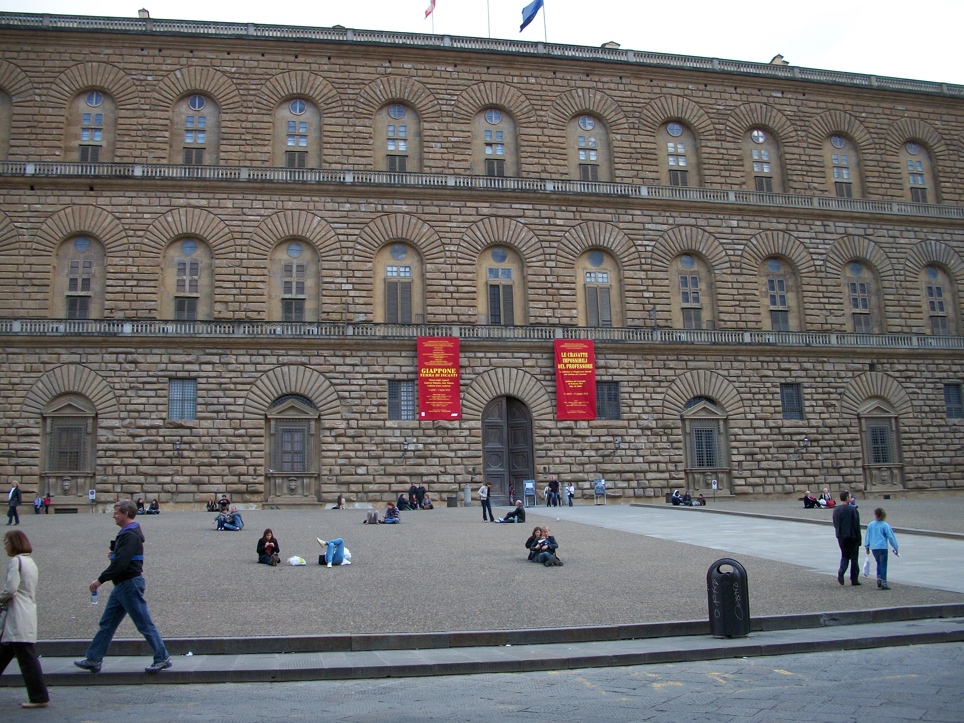 . La famille Pitti se trouvant en difficultés économiques vendit le Palais au Medicis et il devint la résidence principale de la famille. En 1565 Georges Vasari fut mandaté pour relier le Palais Pitti au Palais Vecchio, il construisit ainsi le Corridor de Vasari qui, en passant par l’église de San Felice, le Ponte Vecchio et les Offices, unit les deux palais. On y trouve la Galerie Palatine, qui abrite des chefs-d’œuvre de Raphaël et du Titien, des appartements immenses et la Galerie d’art moderne, avec des œuvres majeures des Macchiaioli. On y trouve en outre des musées spécialisés tels que le Musée des Argents, la Galerie du Costume, dédié à la mode, le Musée des Porcelaines et le Musée des Carosses.