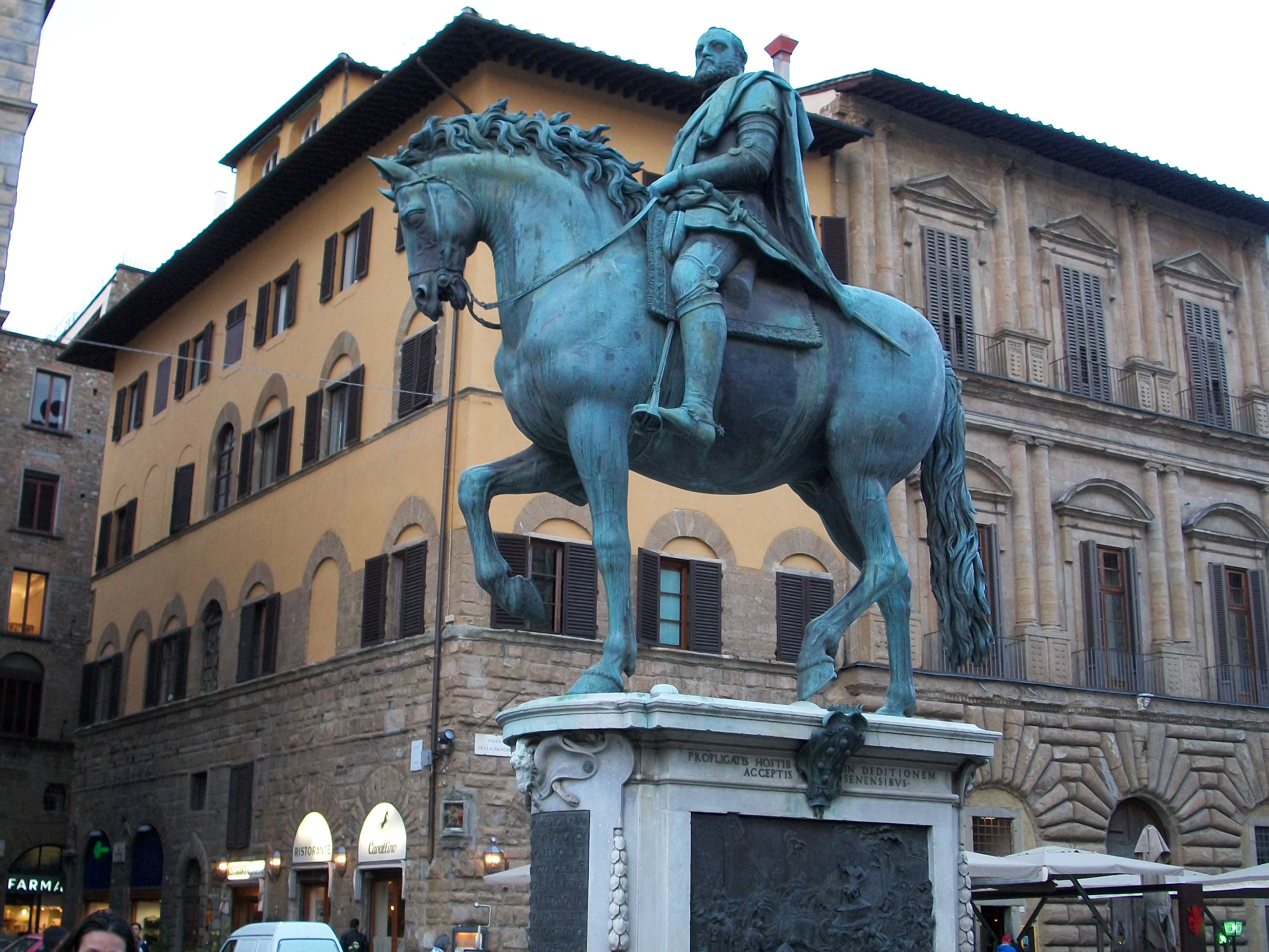 - Au centre de la place, la statue équestre de Cosme Ier, un bronze de Giambologna (1594)