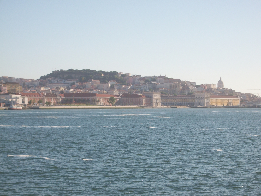 Au milieu du Tage, d’un côté Lisbonne la praça de commerico, et de l’autre Cacilhas