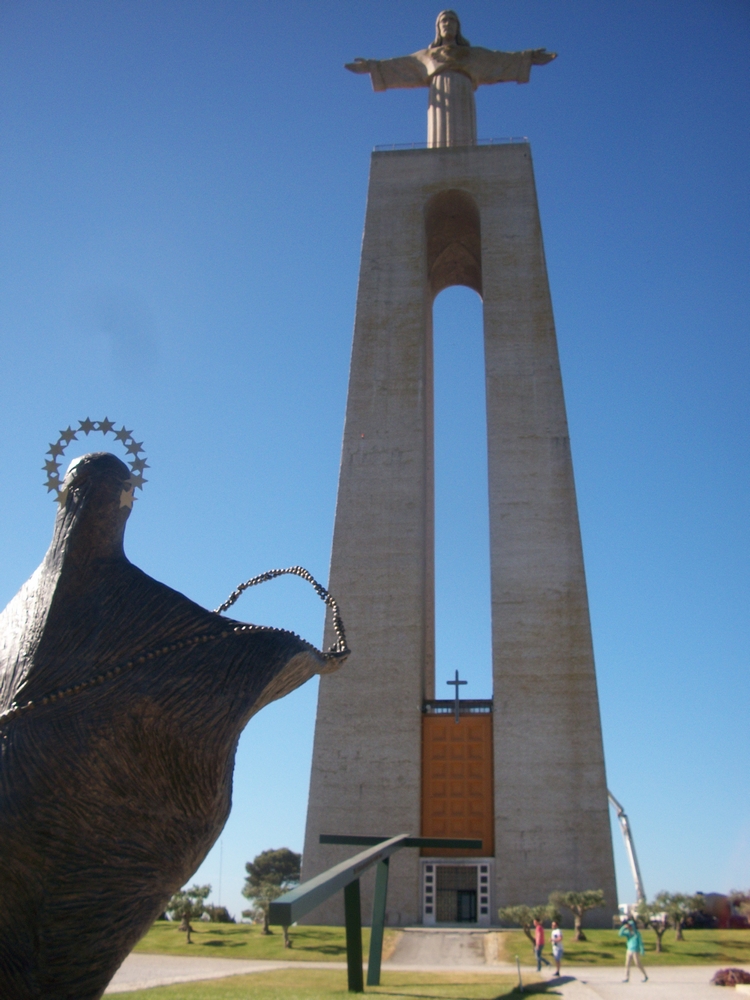- La deuxième est la statue du Christ de 28 mètres de haut, les bras ouverts, tourné vers la capitale portugaise, œuvre du sculpteur Francisco Franco de Sousa.