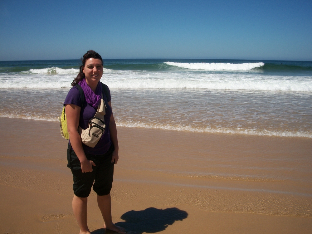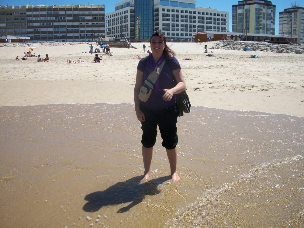 Vers 11h30 on a les pieds dans l’eau… froide quand même faut pas deconner. Et bien le soleil il tapait quand même Ben a attrapé des coups de soleil bras et nez, il a du acheter une casquette pour se protéger. En tous les cas il y avait du monde sur la plage, et pleins de surfeurs dans les grosses vagues, le plein océan… l’air pur… on se ballade un peu au bord, et s’assoit et je ramène même du sable dans une poche avant du sac à dos de Ben (qui s’en souvient encore …).