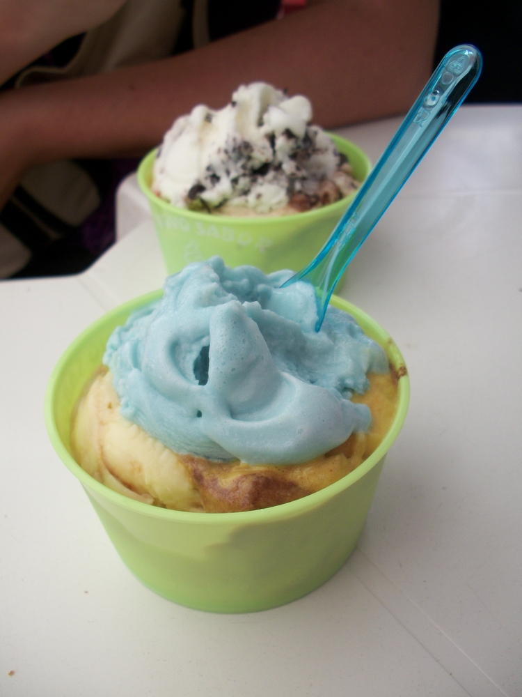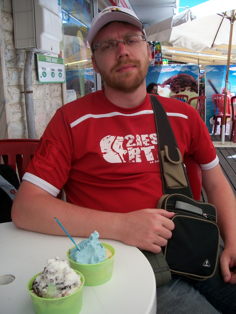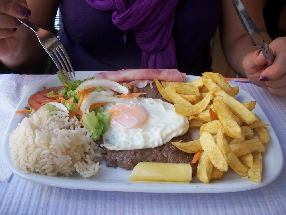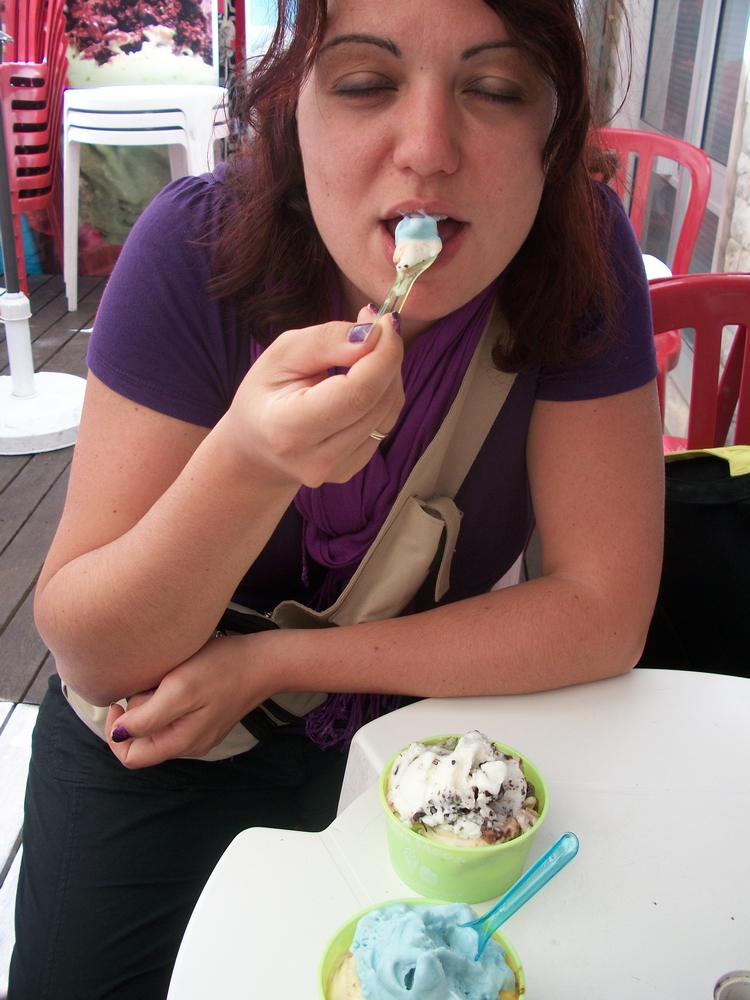 On trouve un petit resto, le Copacabana, je voulais une petite salade et je me retrouve avec un steak et ses accompagnements (11€ c’est pas volé)!!! On a déjà repéré le dessert chez un glacier, des boules de glace 2.5€ les 3 boules.