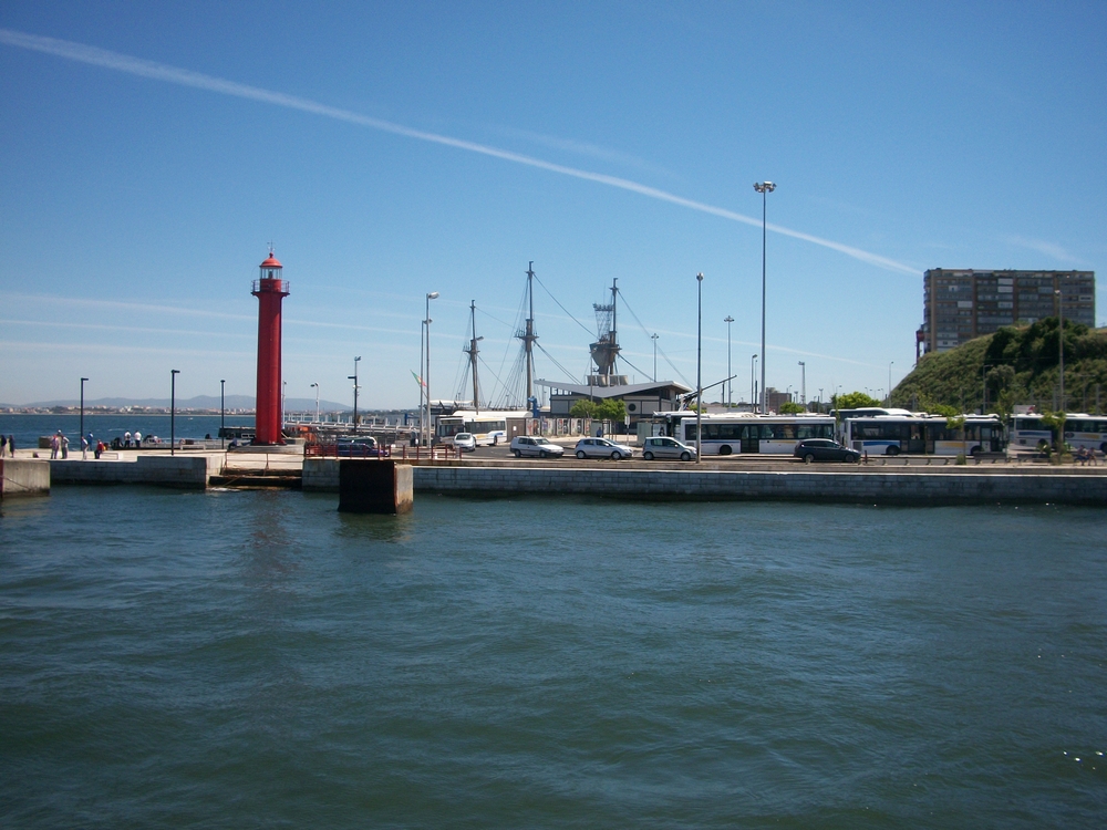 Depuis l’hôtel nous avions 2 bouches de métro desservant 3 lignes la rouge et la jaune Saldanha et la verte à Aroios. Pour prendre le bateau il a fallu se rendre au transport fluvial de Cais do Sodre desservi par la ligne verte. A partir de la avec notre même carte de transport on a chargé un aller/retour en bateau pour Cacilhas, petit village de port pécheur au bord du tage pour Lisbonne. Attention car si sur votre carte vous avez encore un forfait « 24h de transport » vous ne pourrez pas chargé un nouveau transport, il faut prendre une nouvelle carte à 0.50€.