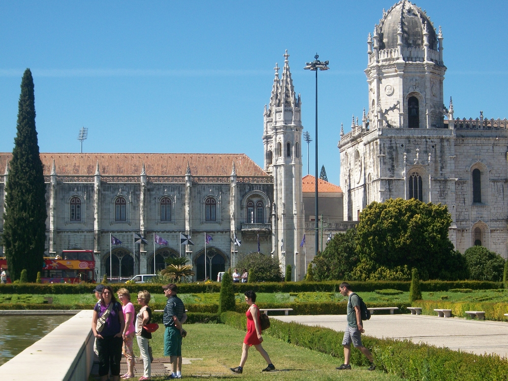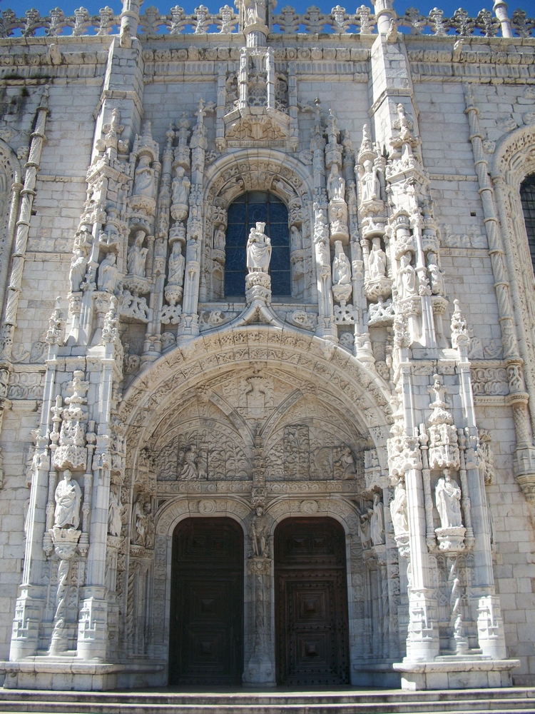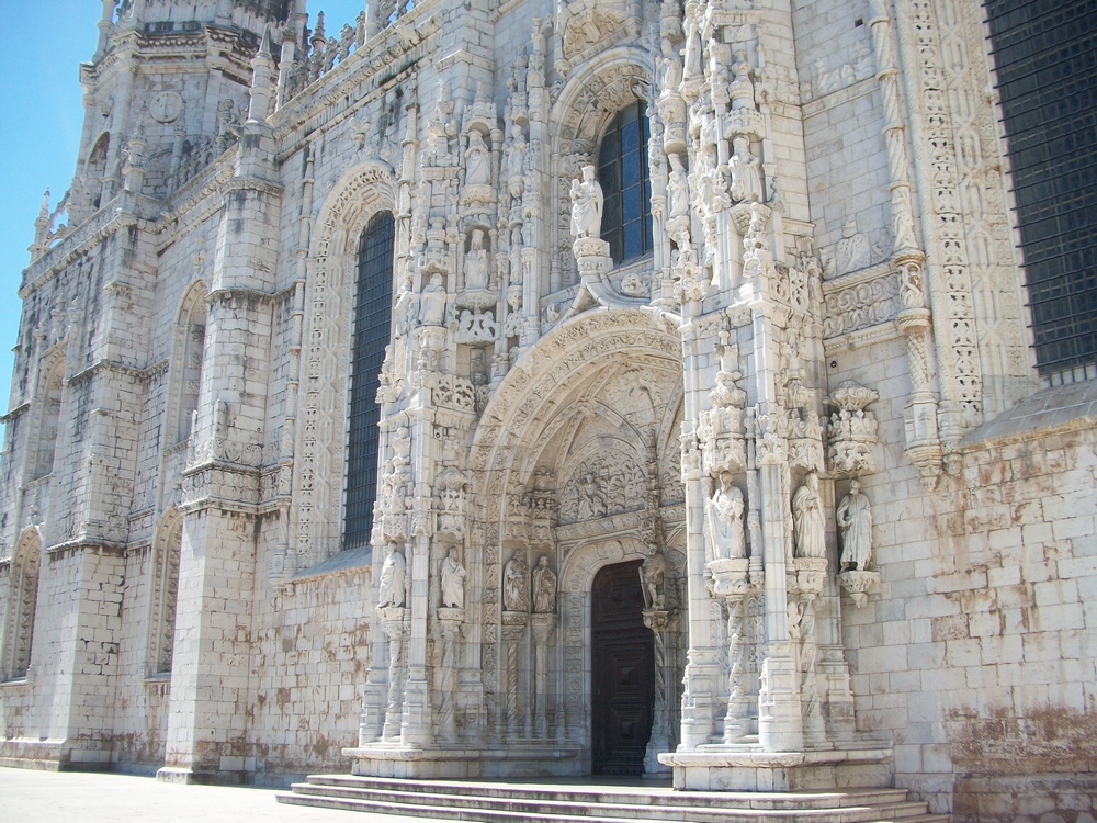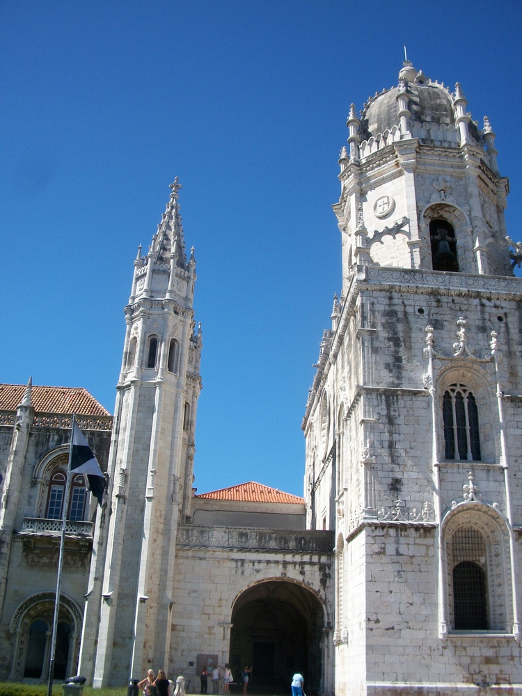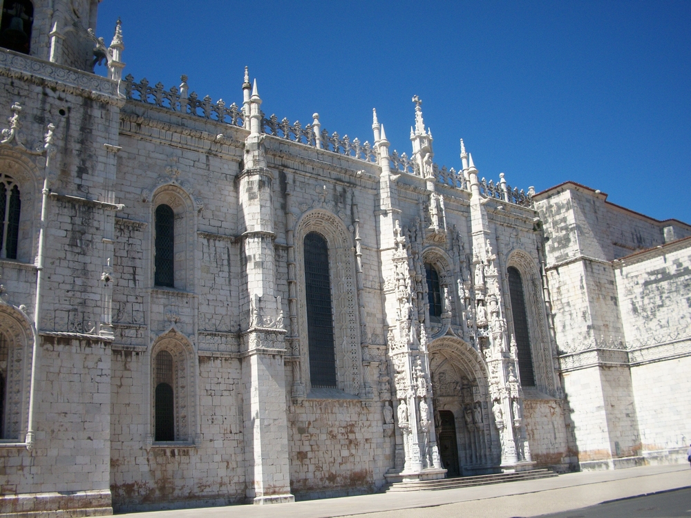On voit donc le monastère de l’extérieur de style manuélin, témoignage monumental de la richesse des découvertes portugaises à travers le monde. Sur l’emplacement d’un ermitage fondé par Henri le Navigateur, le roi Manuel Ier entreprit en 1502, un peu après le retour de Vasco de Gama de son premier voyage en Inde, de bâtir un magnifique monastère destiné aux religieux de l’ordre des hiéronymites. Il a été en grande partie financé par les profits du commerce d’épices et grâce aux richesses rapportées des grands voyages de découverte portugais du XVIe siècle.
