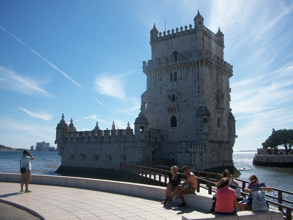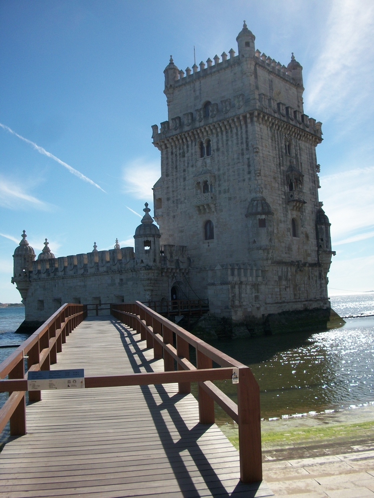On longe le Tage à pied pour se rendre à la fameuse Tour de Belém qui est entourée d’eau, on y accède par un petit pont, cela forme une mini plage avec des coquillages^^.