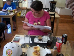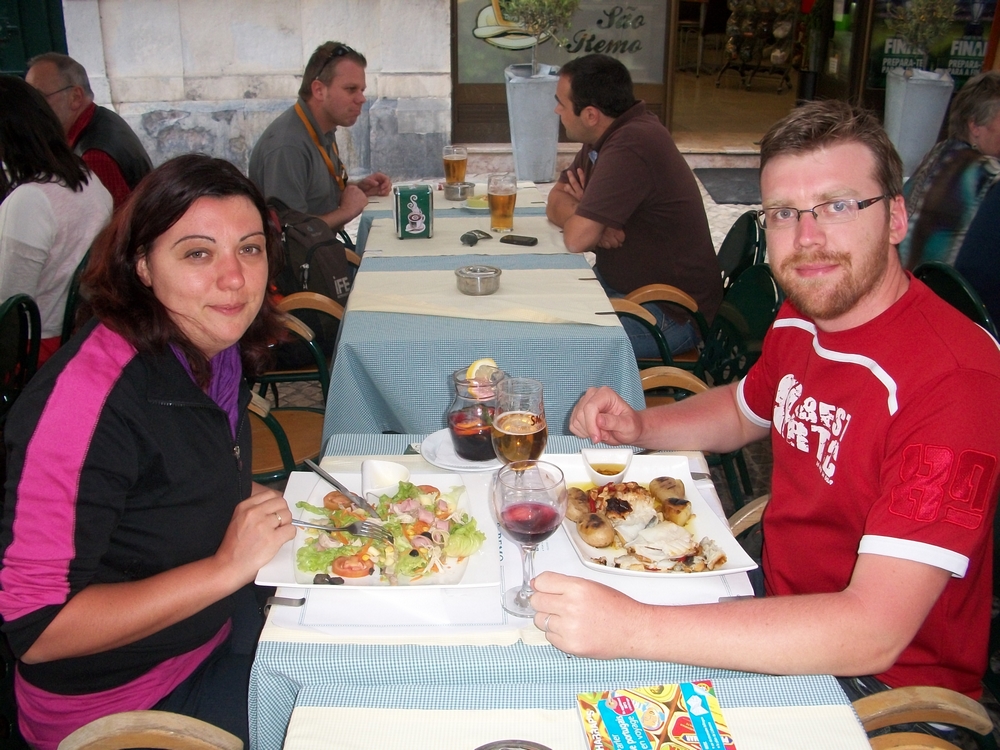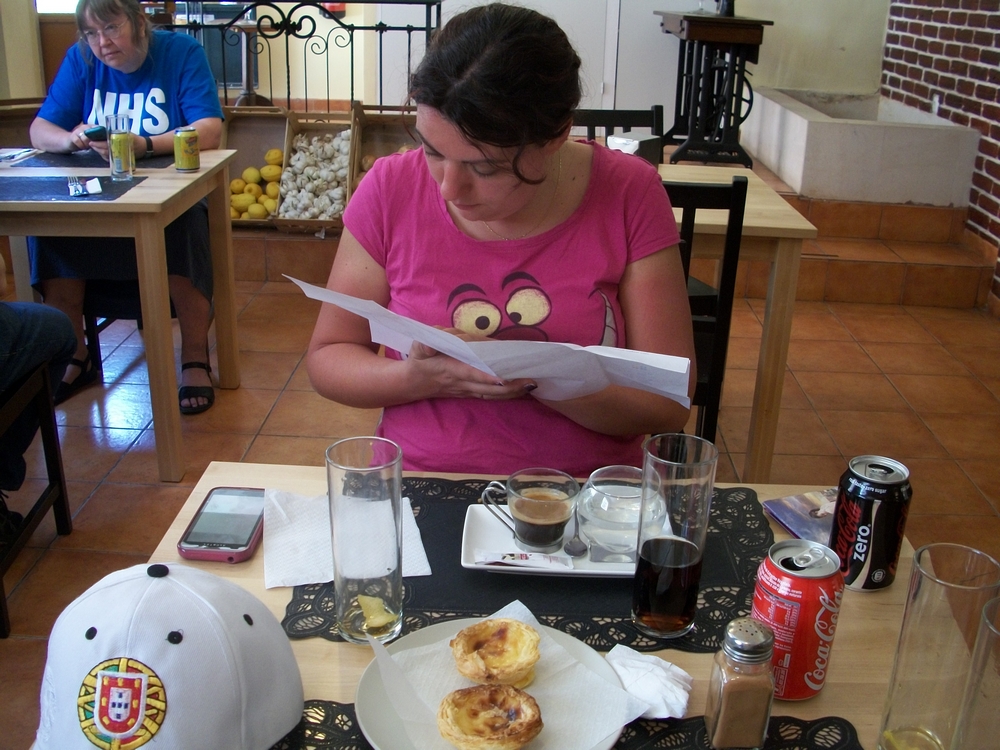 N’étant pas loin de midi et de notre petit café du premier jour, on décide d’y manger et pour pas cher (Cultura Portuguesa Café Rua das Escolas Gerais, 7, Alfama, Lisboa). Une formule plat + boisson + café pour 7€ que demander de plus (escalope panée frites salades) et en dessert plusieurs petits gâteaux faits maisons dont pastéis de nata et un au chocolat hummm