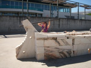 On prend le métro afin de se rendre au Disney Store arret Colégio Militar Ruz (2 changements) en 25 min, et la je me rend compte que le magasin ouvre à 10h, et il est 9h30… du coup on fait un tour dans la grande surface qui se trouve être un carrefour, Ben en profite pour se trouver de la biafine et se badigeonne le corps tout rouge en attendant l’ouverture du DS sur un banc… j’ai eu le temps de faire des petites emplettes aussi. Quand le DS a ouvert, j’ai été déçue, pas d’articles sur Lisbonne comme on peut en trouver dans les DS de capitales… je ressors bredouille et déçue d’avoir perdu notre temps.