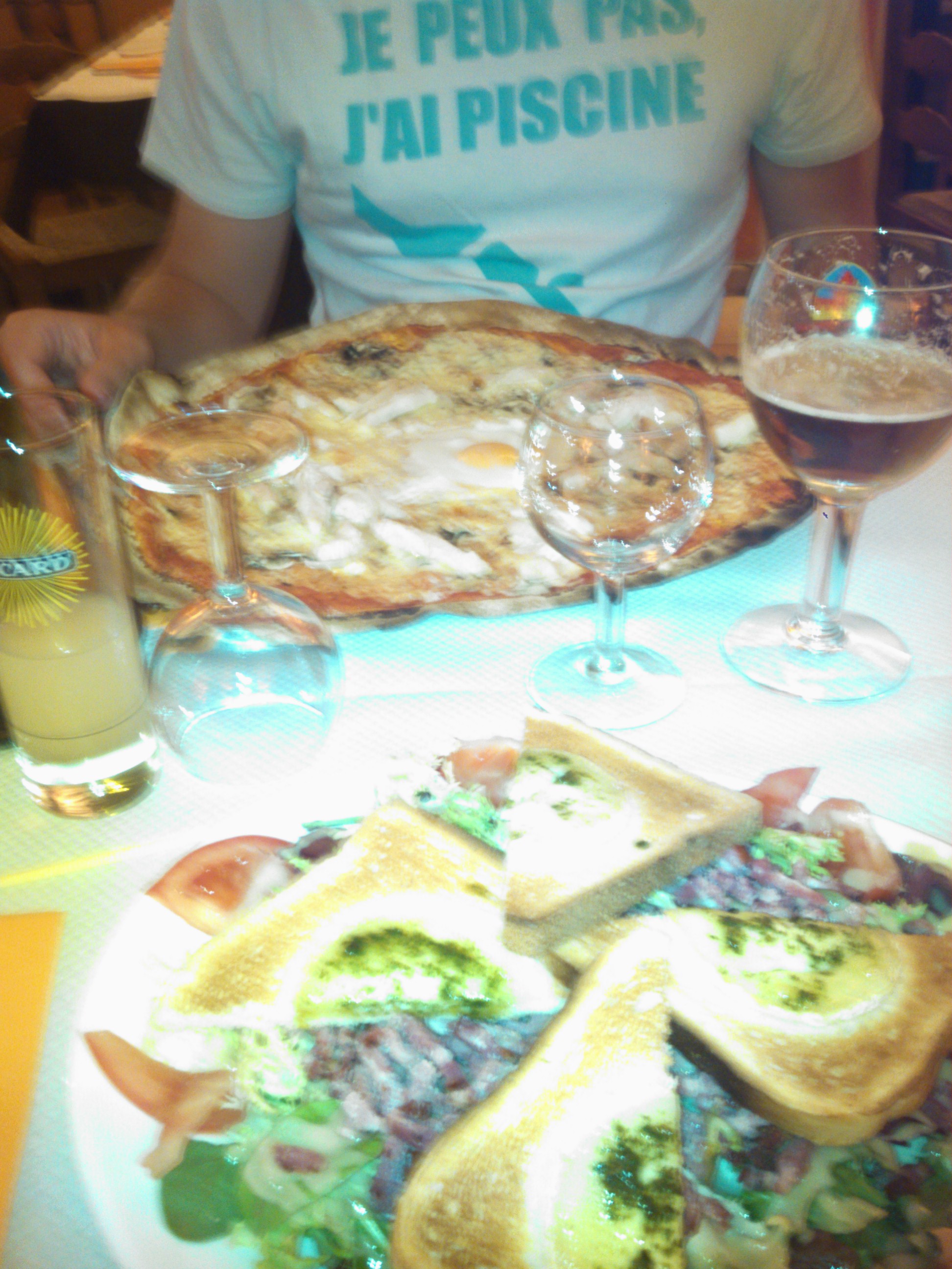 Nous sommes donc sortis en centre ville en passant sous l’autoroute et la voie ferrée, nous avons mangé dans un resto italien où nous n’avions jamais vu de pizzas aussi géante!!! pizza kelly 63 Avenue de la gare – 06800 Cagnes sur Mer