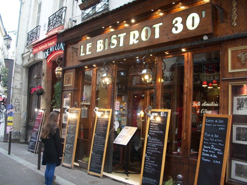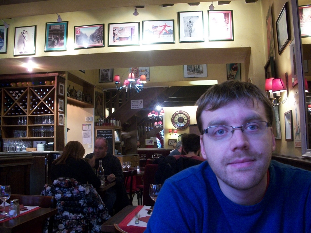 12h30 on a faim on se dirige dans les ruelles de la huchette, avec pleins de restaurants à touristes, mais bon tant pis moi je trouve ça pas mauvais et pas cher!!! Pour 16€ entrée + plat + dessert au « bistrot’30 » salade chèvre chaud puis magret canard pour moi et cuisse de canard confite pour Ben et en dessert profiteroles. les boissons (2 cocas) ont été oubliées tant mieux 6€ de gagné héhé.
