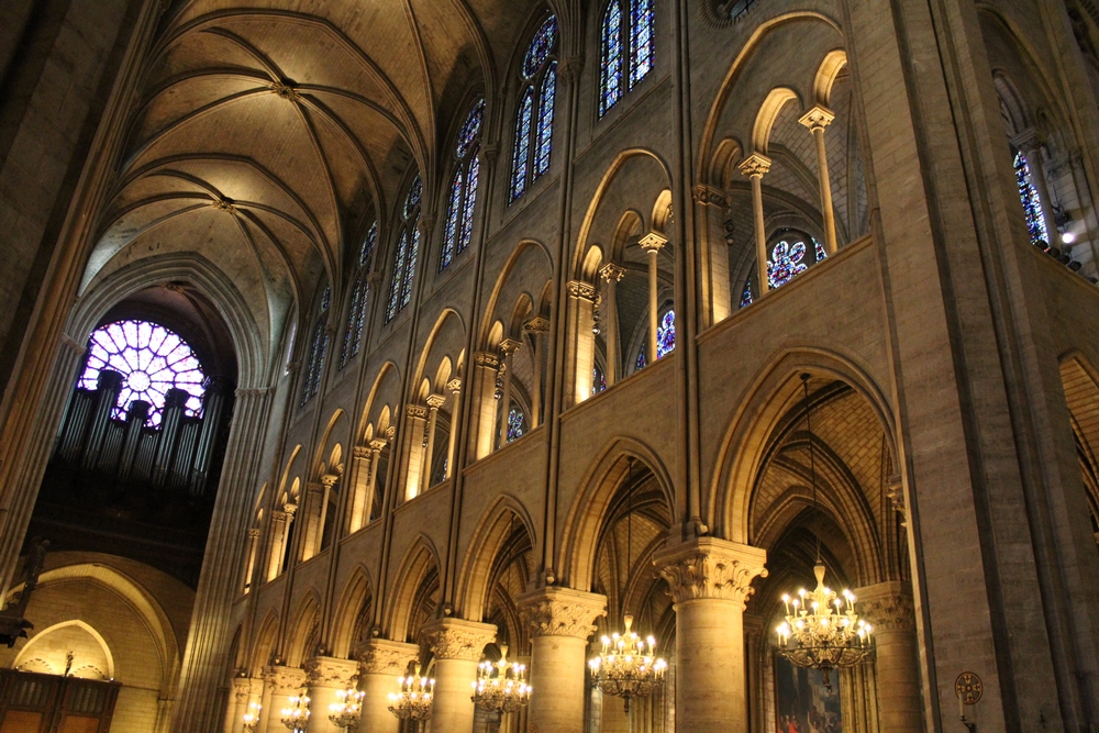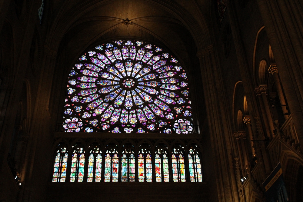 Visite de la Cathédrale de l’archidiocèse catholique de Paris. C’est l’une des quatre basiliques mineures de Paris, élevée au rang de basilique mineure par le pape Pie VII le 3 mars 18052. Elle est située sur la moitié Est de l’île de la Cité, dans le 4e arrondissement de Paris. Sa façade occidentale domine le parvis Notre-Dame – place Jean-Paul-II. La construction s’étant étendue sur de nombreuses décennies (deux siècles), le style n’est donc pas d’une uniformité totale : elle possède ainsi des caractères du gothique primitif (voûtes sexpartites de la nef) et du gothique rayonnant. Les deux rosaces qui ornent chacun des bras du transept sont parmi les plus grandes d’Europe, et mesurent chacune 13 mètres de diamètre. Elle fut lors de son achèvement l’une des plus grandes cathédrales d’occident. Après la tourmente révolutionnaire, la cathédrale a subi de 1844 à 1864 une restauration importante et parfois controversée dirigée par l’architecte Viollet-le-Duc, qui y a incorporé des éléments et des motifs que le monument légué par le Moyen Âge n’avait jamais possédés.