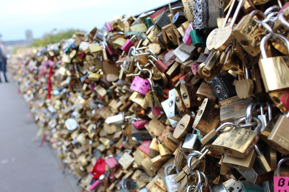 on est passé vers le pont de l’Archevêché pleins de cadenas, d’ailleurs il y a quelques semaines de cela un pont (pont des arts) de ce même genre a perdu un morceau de son côté à cause du poids des cadenas…