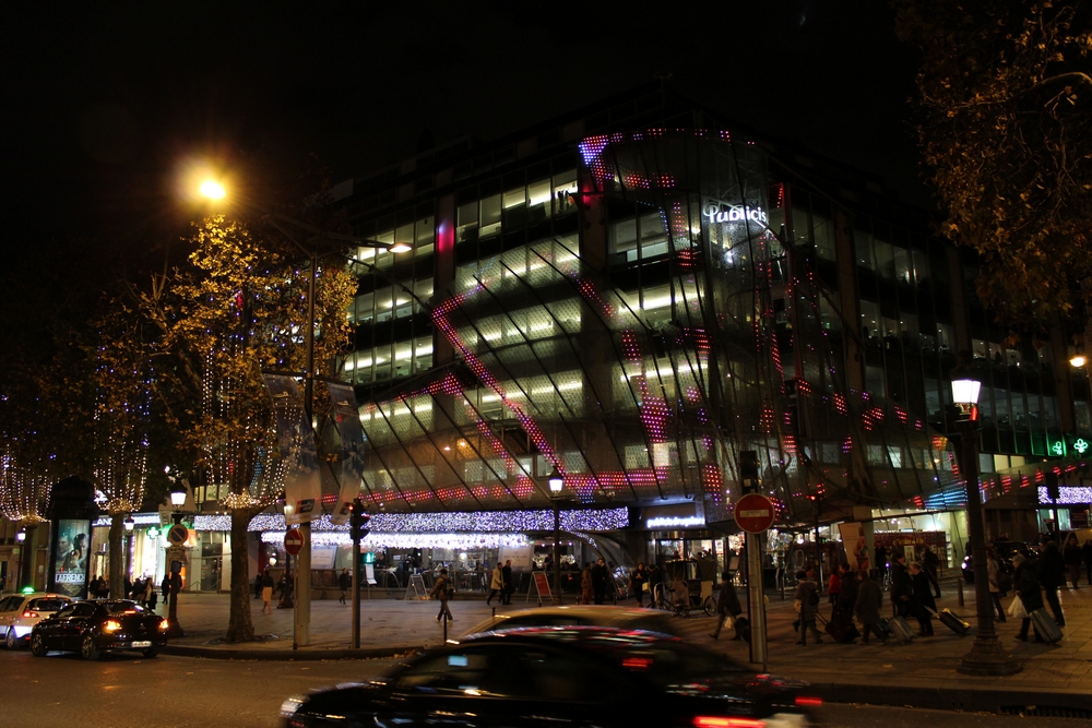 On descend l’avenue des Champs Elysées, on s’arrête au Disney Store, trop de monde comme d’hab, on s’arrête dans une boutique Peugeot très prout prout, l’avenue est bien illuminée.