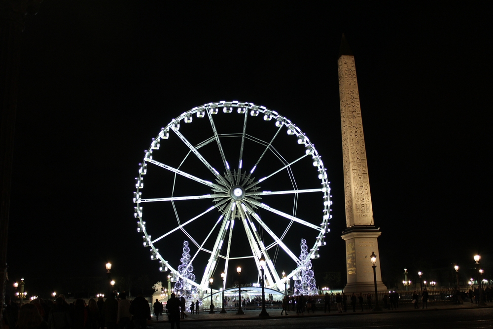 scendre on arrive place de la Concorde avec l’obélisque, et la grande Roue.