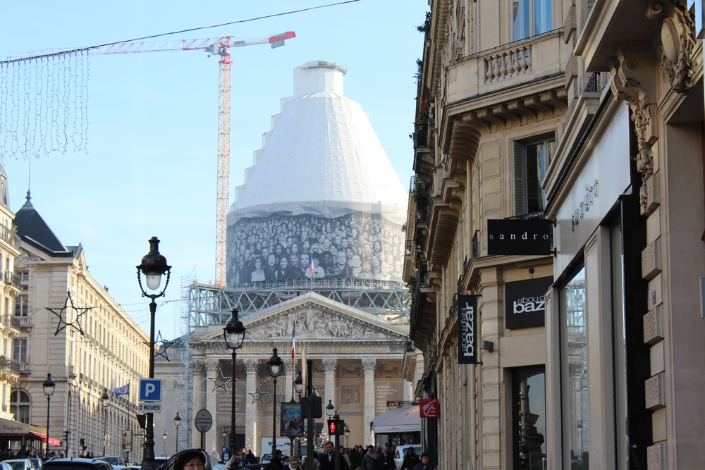 Panthéon (style néo-classique) malheureusement en travaux… Prévu à l’origine au XVIIIe siècle pour être une église qui abriterait la châsse de sainte Geneviève, ce monument a maintenant vocation à honorer de grands personnages ayant marqué l’histoire de France. http://fr.wikipedia.org/wiki/Panth%C3%A9on_%28Paris%29