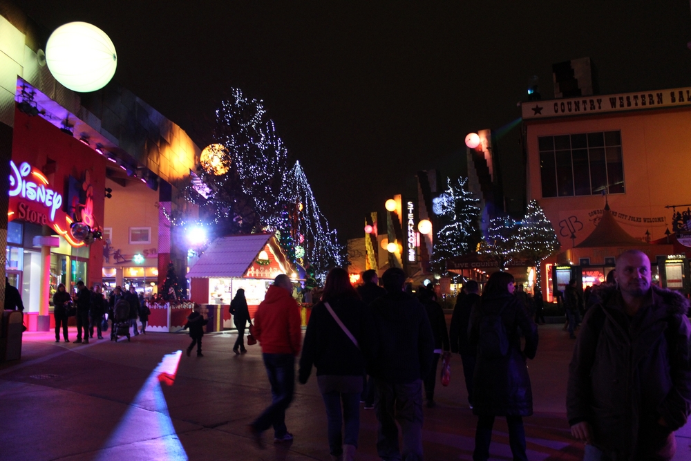 A 19h on y est (3.3€ le trajet en RER par personne!!! chero le petit tour!!!), et la une foule… la sortie du parc Walt Disney Studios, du monde dans les boutiques du Disney Village, tout en bazar… mais bon cela me permet de repérer mes futurs achats des 2 jours à venir.