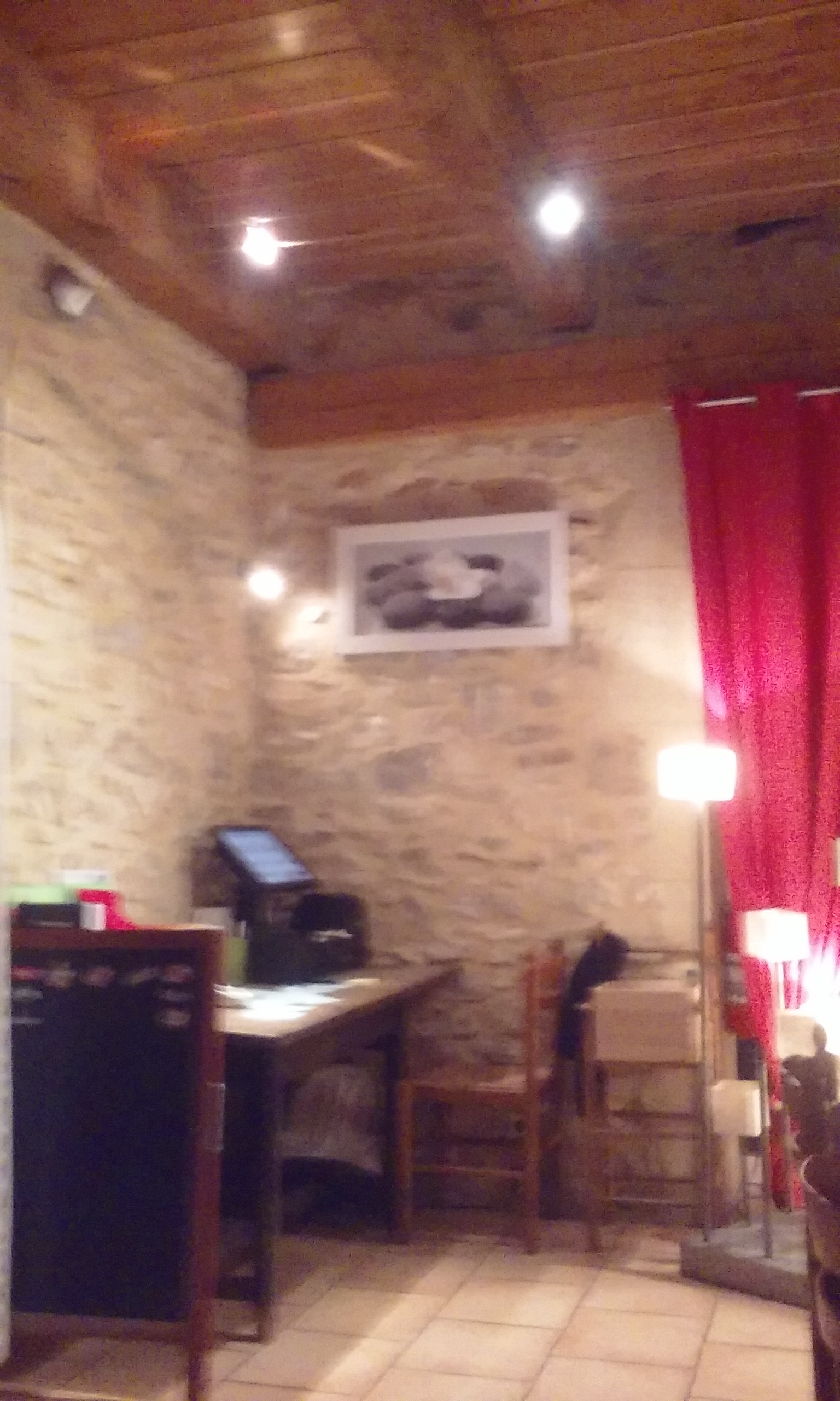 Au final cela se termine vers 19h50, le temps de papoter 10 min, on s’en va au restau du bled le plus proche, à St Maurice de Cazevieille. Même si l’on a bien mangé le midi, l’appétit vient en mangeant^^, d’ailleurs c’était très bon. Et pleins de monde c’était complet, on nous a mis sur une table à l’entrée à côté des portes manteaux.