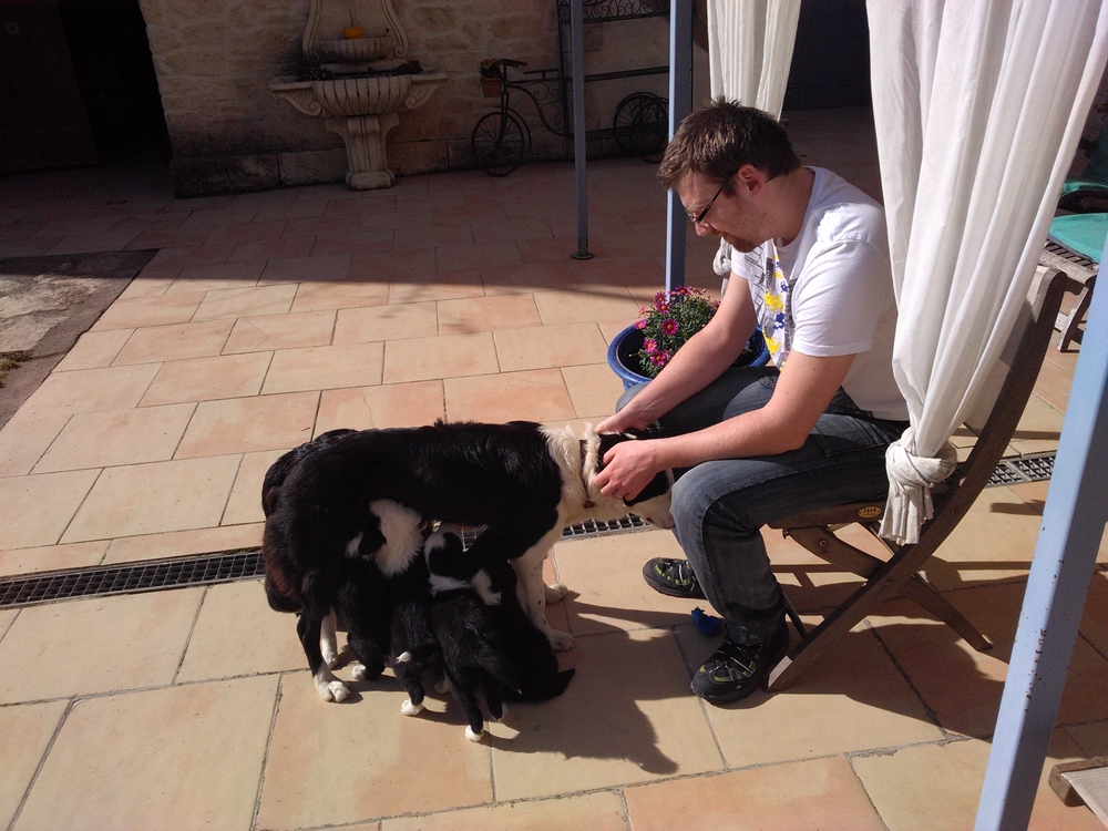 A 17h on est sur place, accueilli par la propriétaire et ses petits chiots, quelle belle surprise!!! Ils sont trop kikis!!!