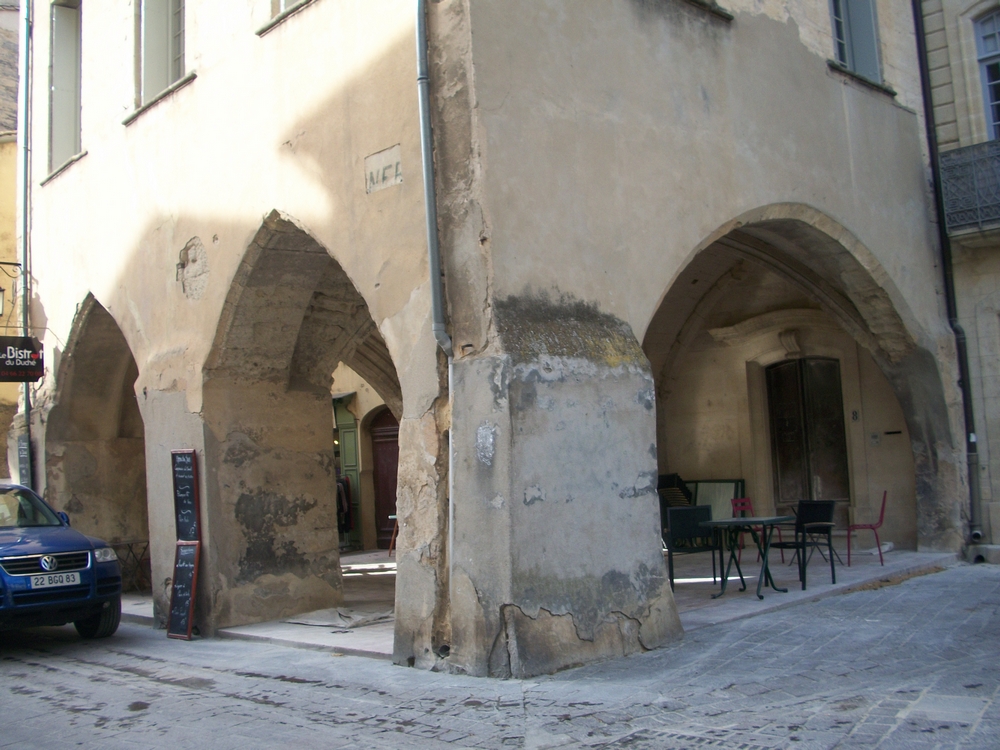 Empruntez ensuite, la rue de Rafin, située à gauche, au pied de l’hôtel du baron de Castille. Cette ruelle étroite et pavée conduit à la maison dUzès, où les évêques battaient monnaie au Moyen Age.