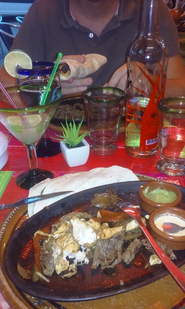 On est rentré se préparer pour re sortir manger en ville à l‘ArtePicante du mexicain hummm trop bon. Fajitas mixte poulet/boeuf 13€ et marguarita ^^ et en dessert moelleux châtaigne hummumumu.