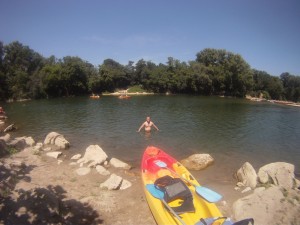 On s’est arrêté de temps en temps et même souvent sur les côtés pour se baigner car il faisait chaud et l’eau était bonne genre 22/23° (mieux qu’au Pech Rouge).