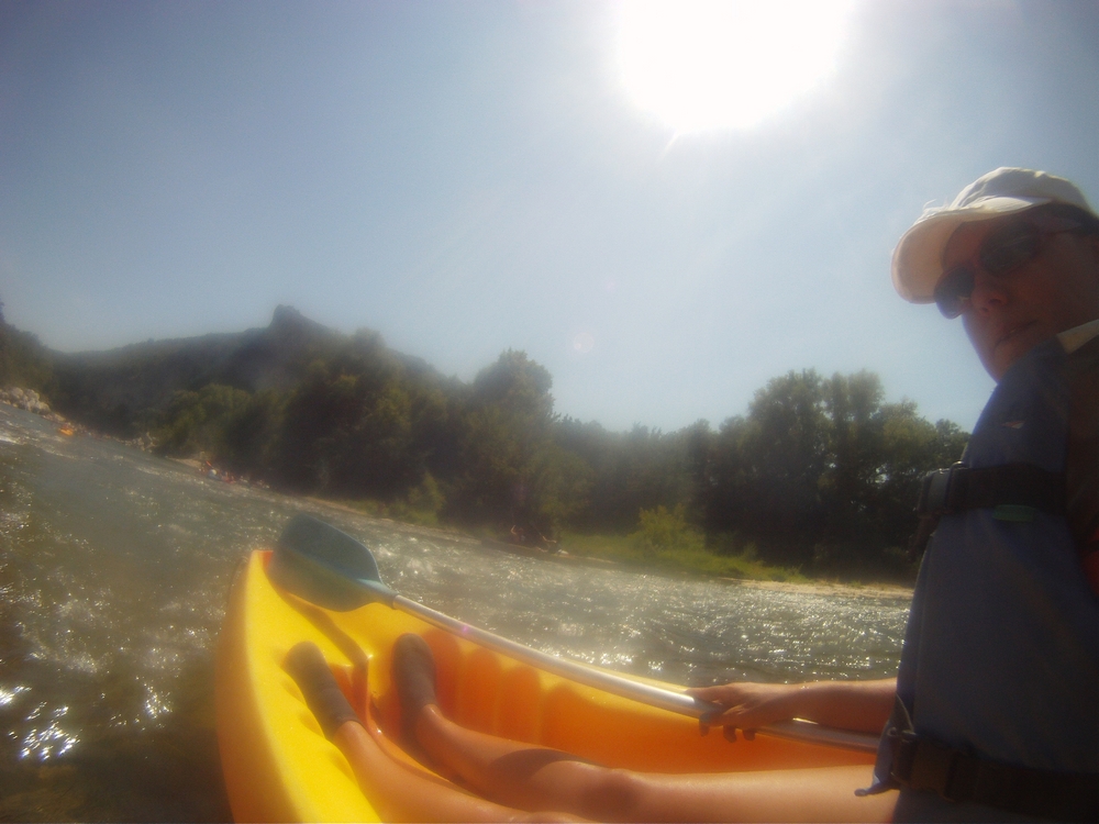 Les descentes se sont plutôt bien passées, pas beaucoup d’eau; beaucoup de monde, quelques carambolages avec d’autres canoés. Par contre un bon plantage mais c’est pas notre faute, 2 canoés se sont vautrés sur un rocher lors d’une descente/remous et on a pas pu les éviter du coup on a percuté la tête du gars…. il a tout perdu… J’ai tout retenu, canoé rames et Ben hihi, on s’est mis sur le côté et Ben est allé aider le gars, juste avant les plus grosses descentes de Charlemagne.