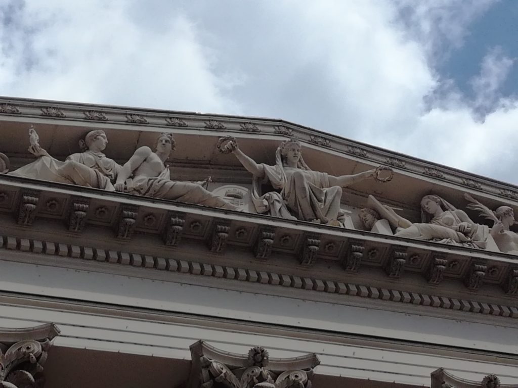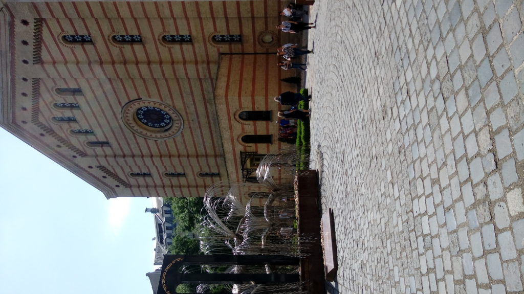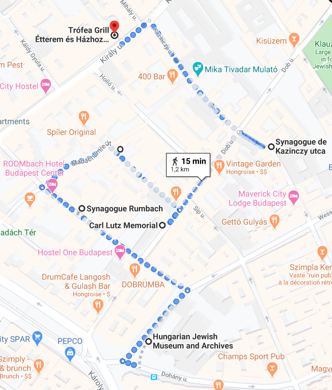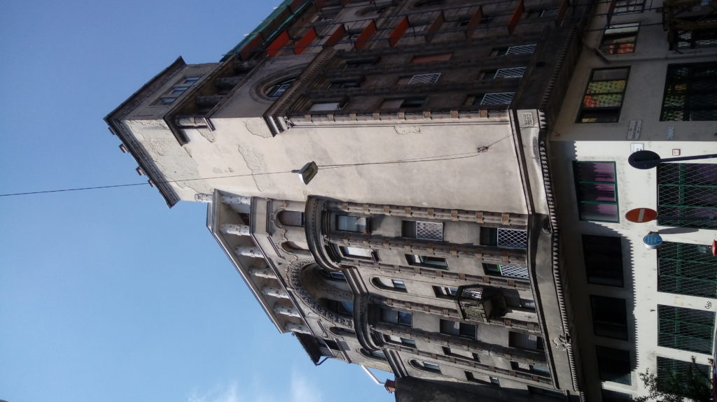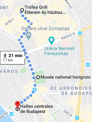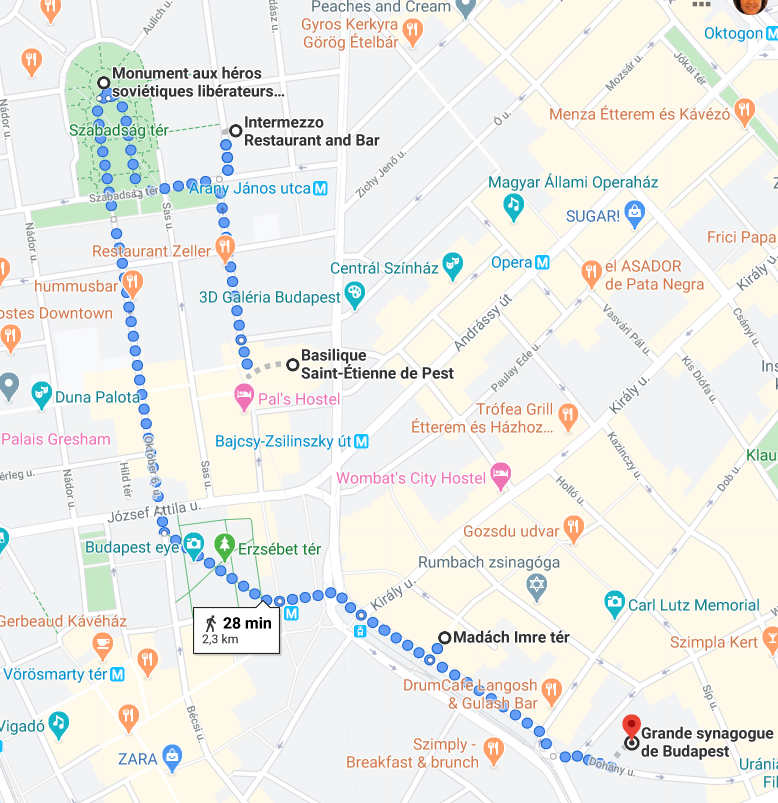 Direction le quartier juif, pas loin également à pied de notre quartier, en passant devant un grand immeuble visible depuis le mont gellart, Madách Tér vers le quartier juif en passant par le portique