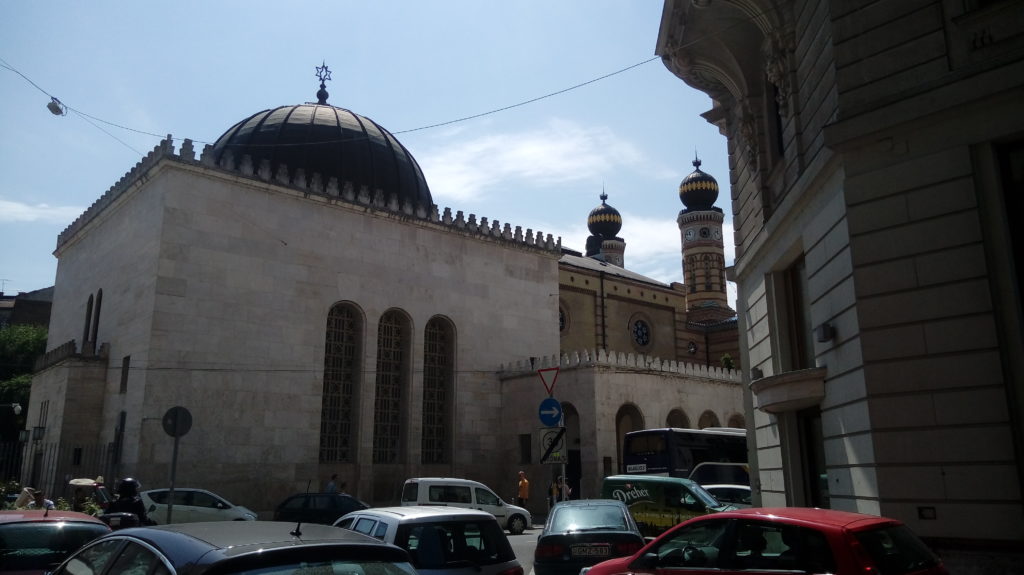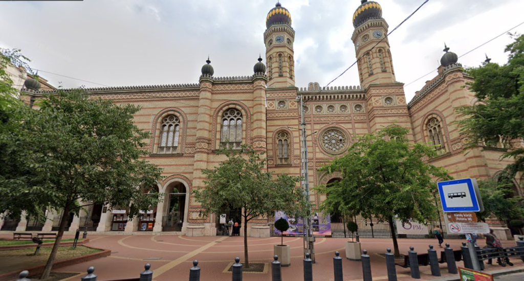 Grande synagogue de Budapest Dohány utca considérée comme la plus grande d’Europe et la seconde du monde par sa capacité d’accueil (3 500 places) et non par sa taille après le Temple Emanu-El à New York. Elle est la place forte du judaïsme néologue en Europe centrale. De style mauresque des éléments d’aménagements chrétiens notables qu’y a apportés son architecte, lui-même catholique : plan basilical, table de lecture de la Torah. Cette synagogue est d’ailleurs l’une des rares à posséder un orgue (Paris et Prague). Utilisé pendant la Seconde Guerre mondiale comme base pour la radio allemande et aussi comme écurie. À la même époque, le ghetto de Budapest fut établi tout autour de cette synagogue.