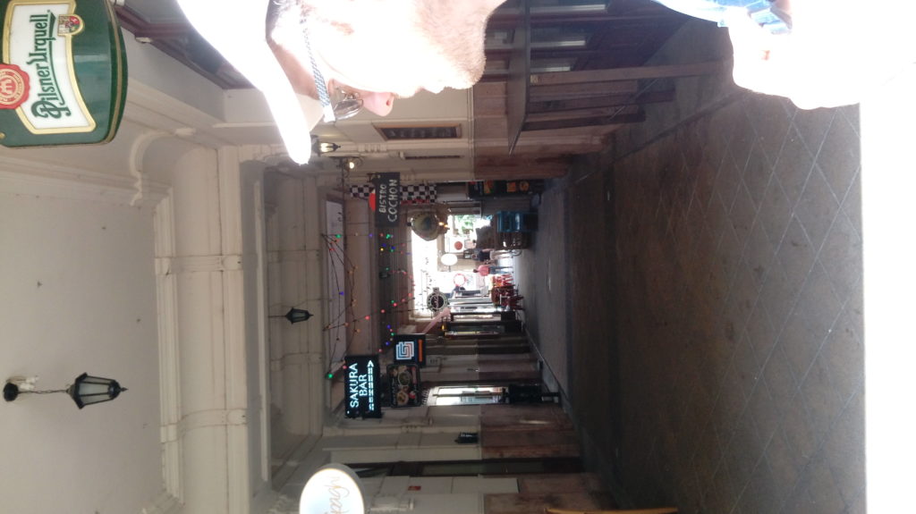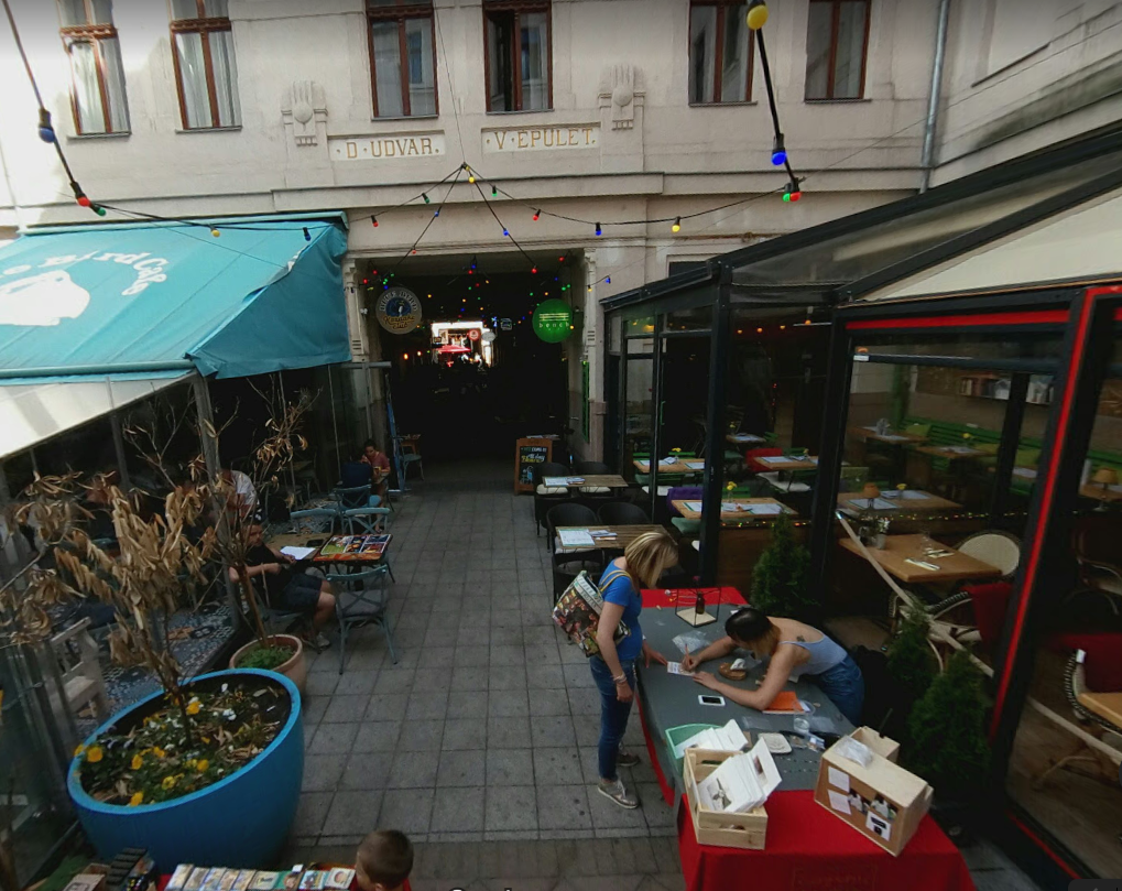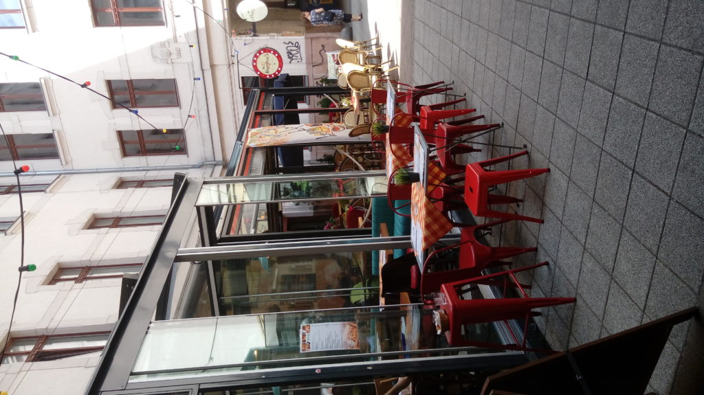 On contourne encore cette synagogue et on arrive sur le Cour Gozsdu, ou le passage vers les ruelles pietonnes juives, Au cœur du quartier juif, ce passage tout en perspective relie la rue Király à la rue Dob par six cours intérieures. Avant la Seconde Guerre mondiale, il était rempli de boutiques d’artisans et de commerces divers. Récemment rénové, une partie des appartements a été convertie en résidence Airbnb de luxe et le reste (restaurants, bars, etc.) est devenu un nouveau lieu de sortie, très prisés des touristes… Le week-end, il se couvre d’étals d’artisanat et d’antiquités lors d’un marché.