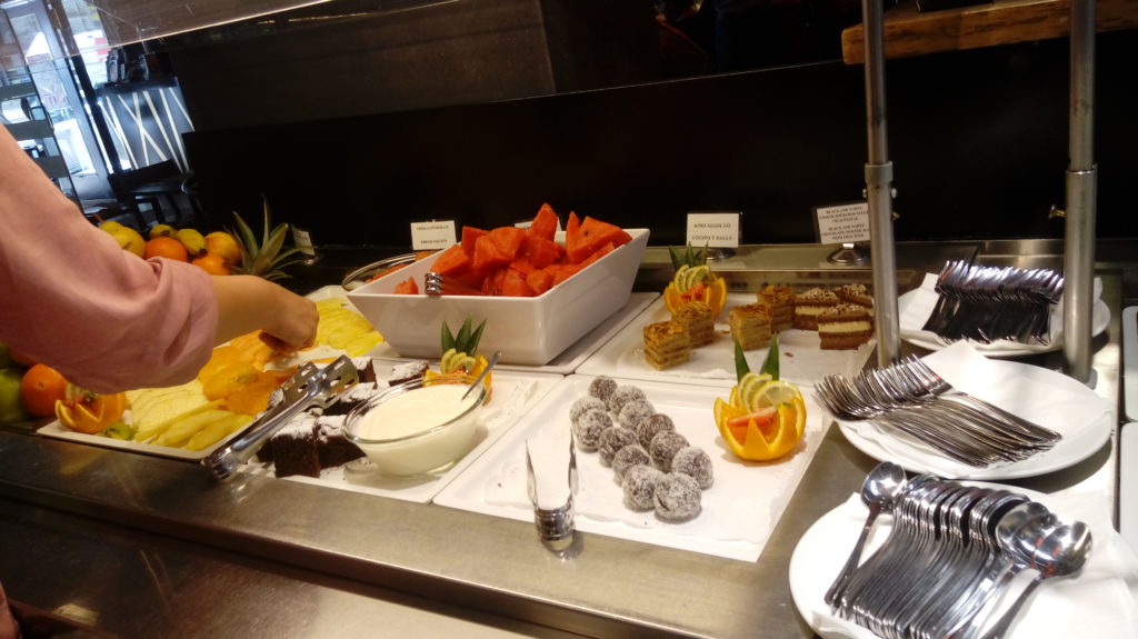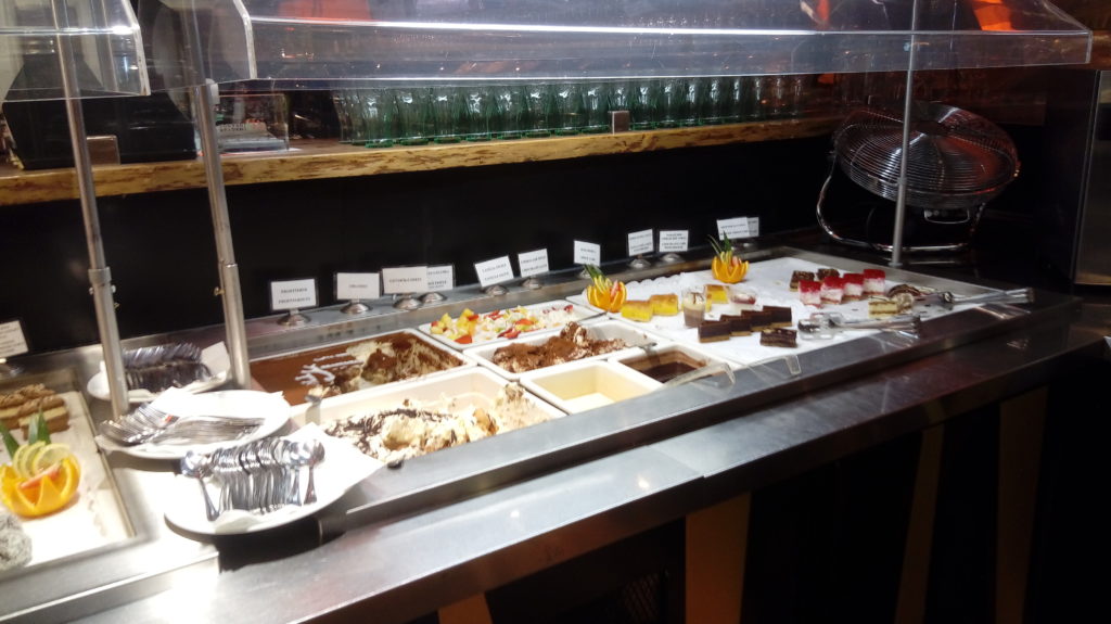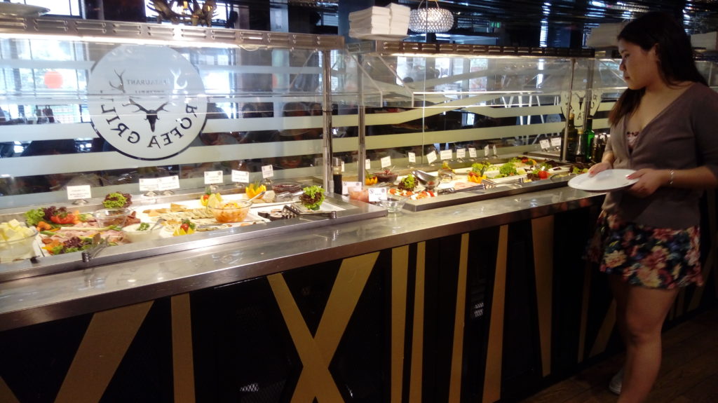On retourne dans l’impasse afin de trouver un restau c’est l’heure de manger!! Beaucoup de choix, et finalement on mange dans un buffet pour lequel on a eu la pub prospectus un peu plus loin que l’impasse le Trofea Grill, trop bien mangé j’ai vraiment bien aimé, tout à volonté, pour 16€ par personne avec boisson (soft, biere, champagne mousseux, vin, cafe cappucino… pizza, soupes, entrées, sushis, plats, grillades, fromages et dessert